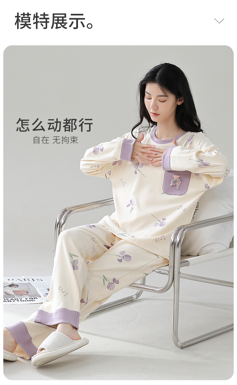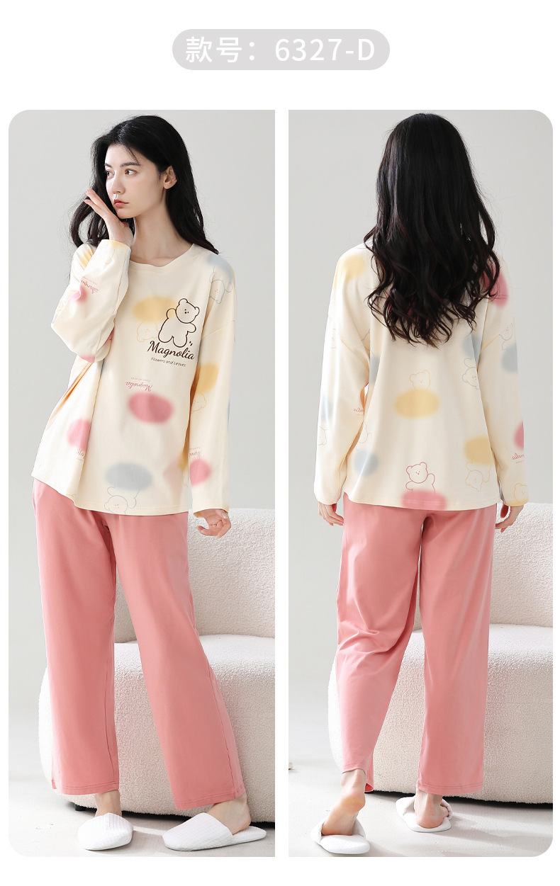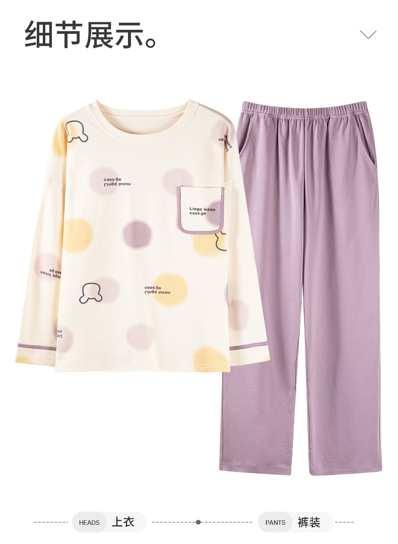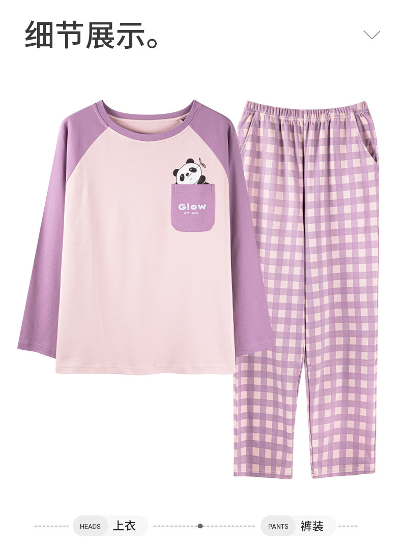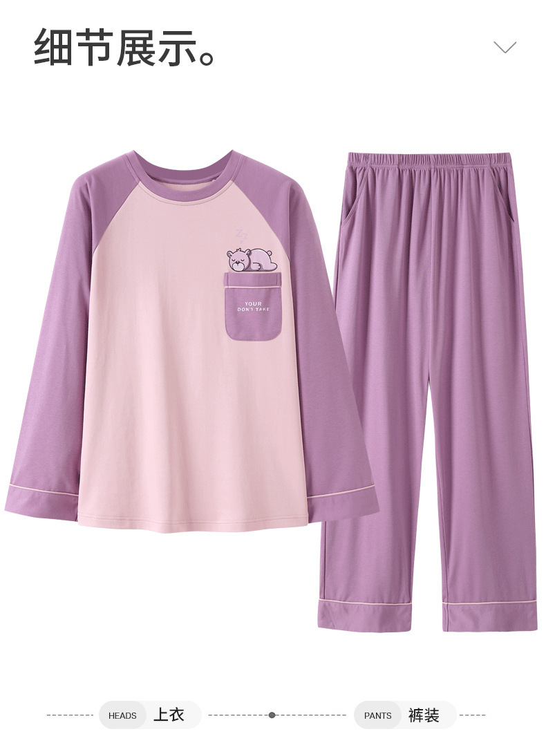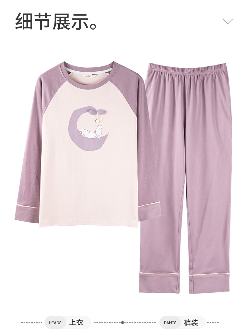 纯棉睡衣女秋季新款圆领长袖长裤甜美卡通带胸垫一体可外穿家居服
