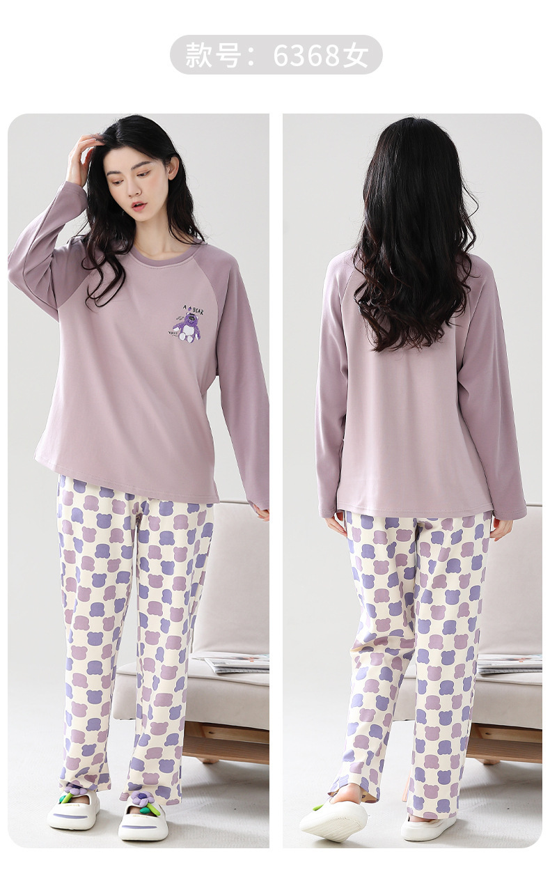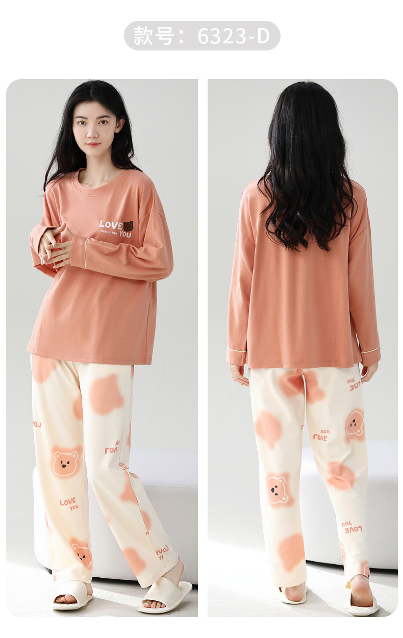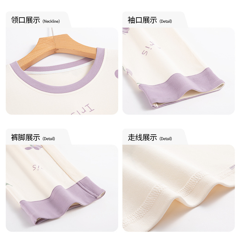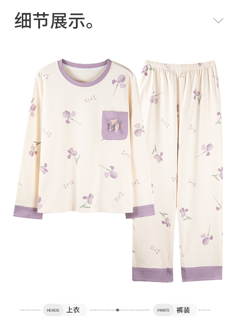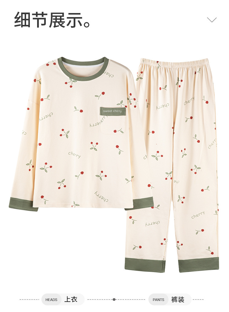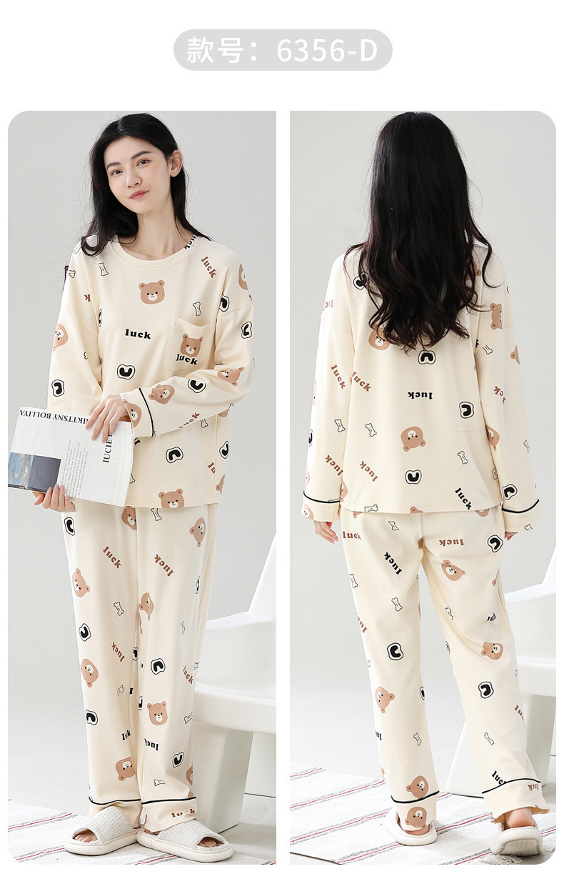 纯棉睡衣女秋季新款圆领长袖长裤甜美卡通带胸垫一体可外穿家居服
