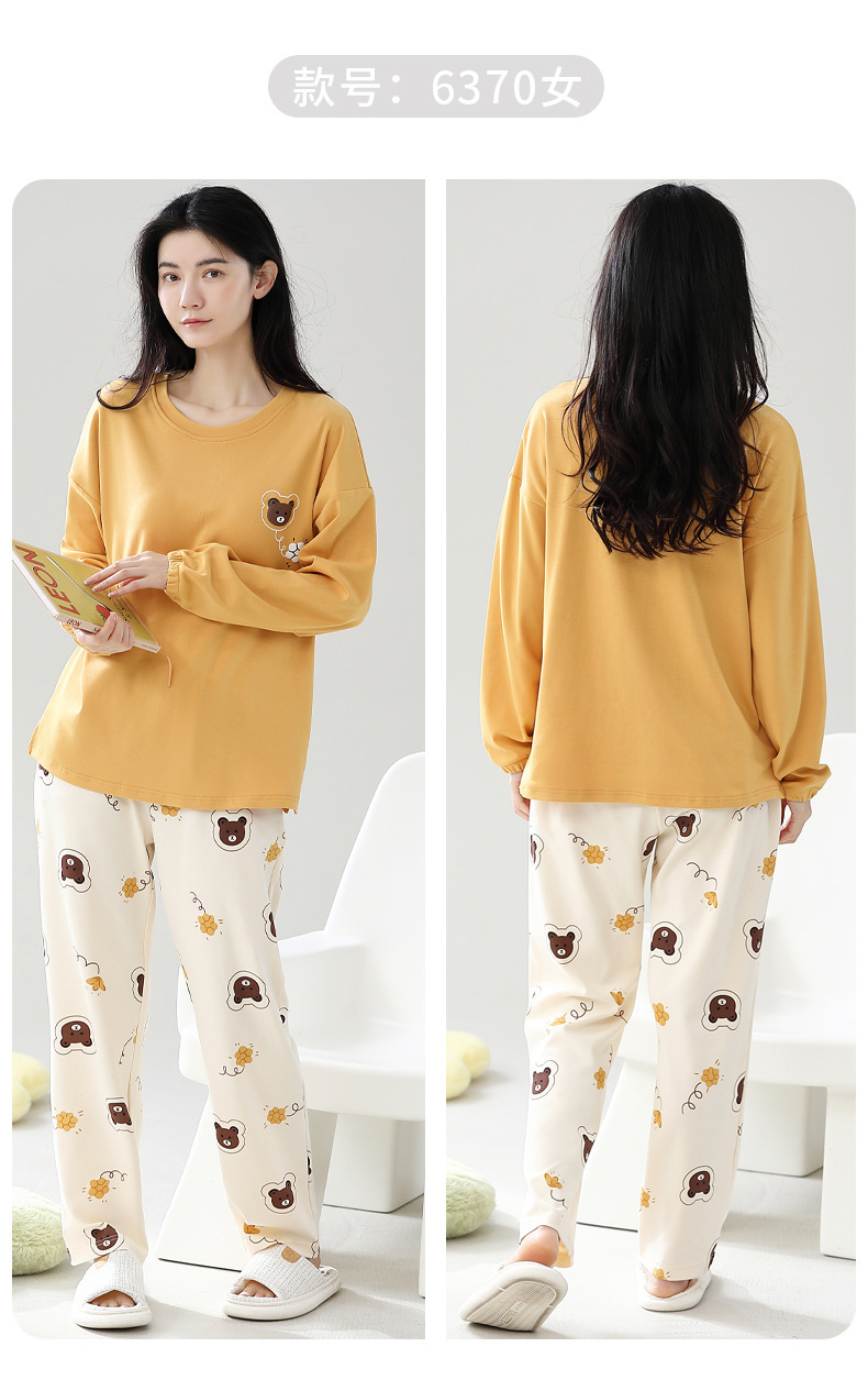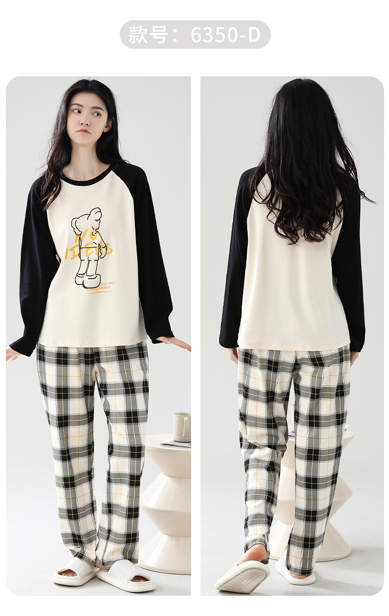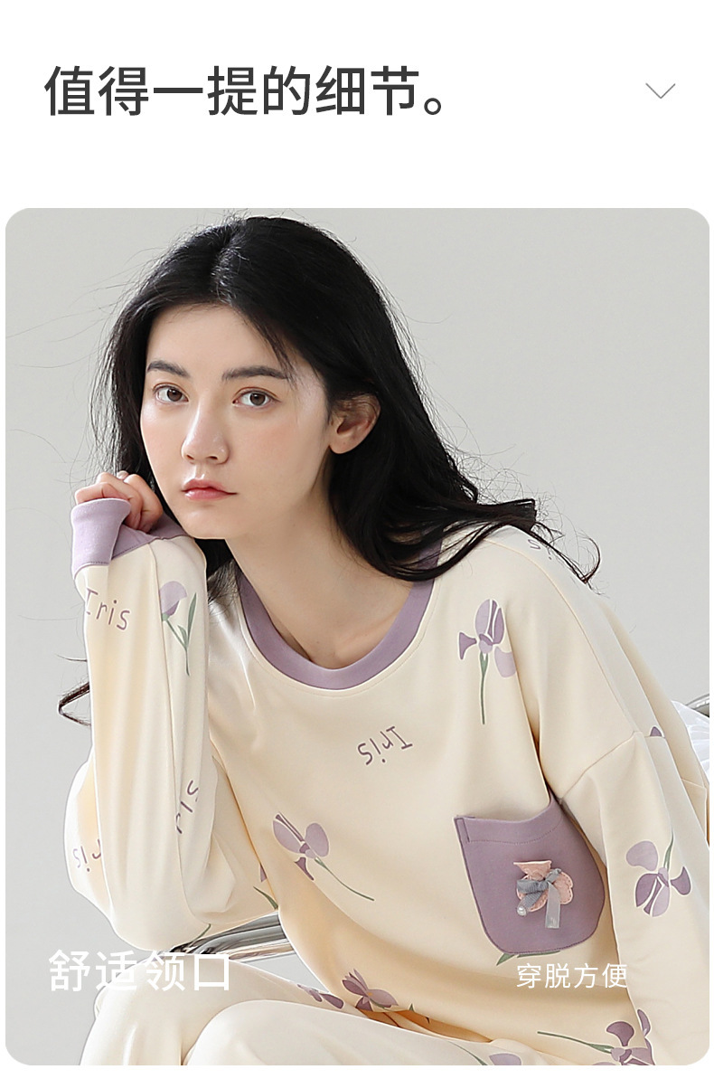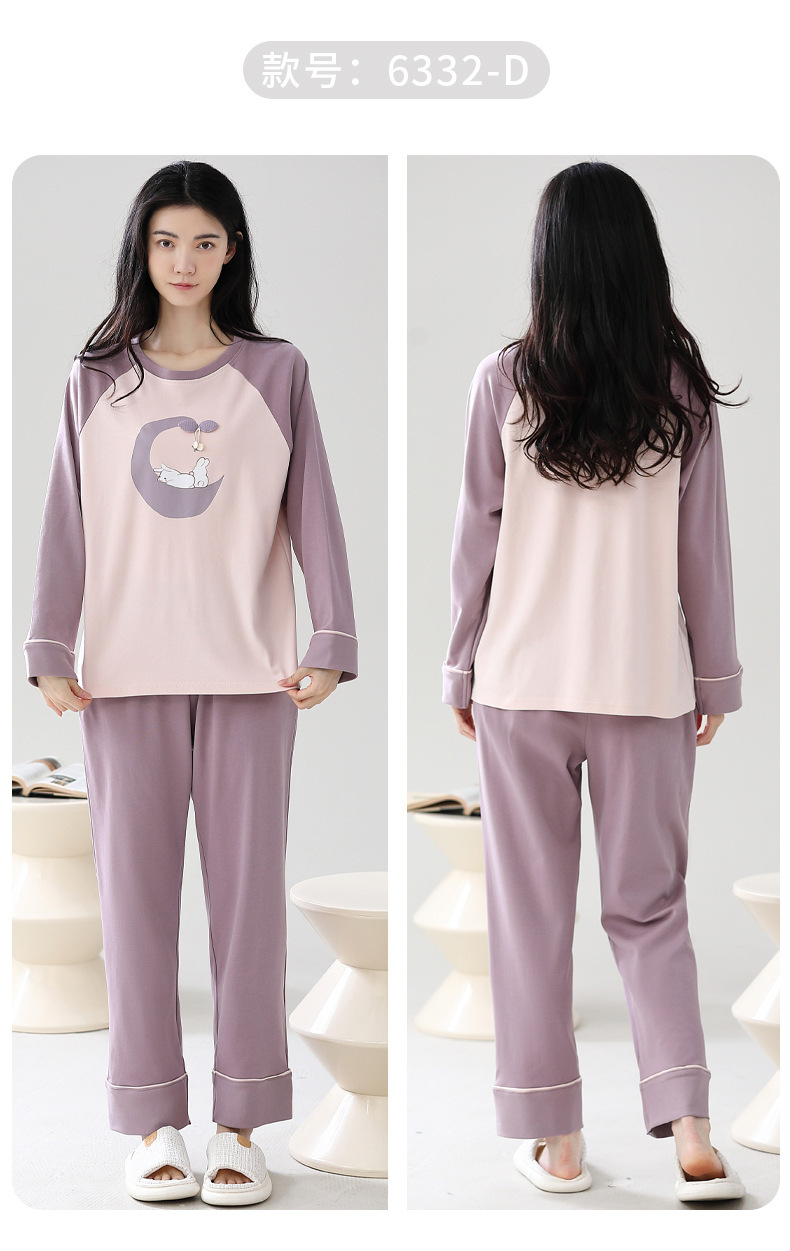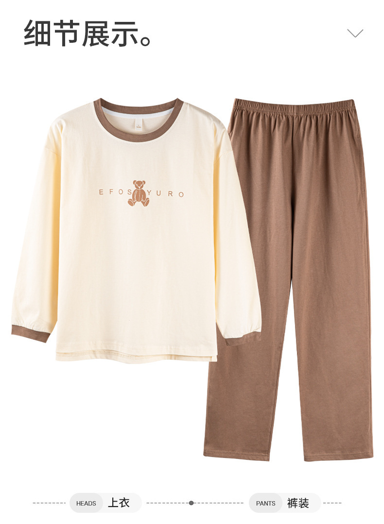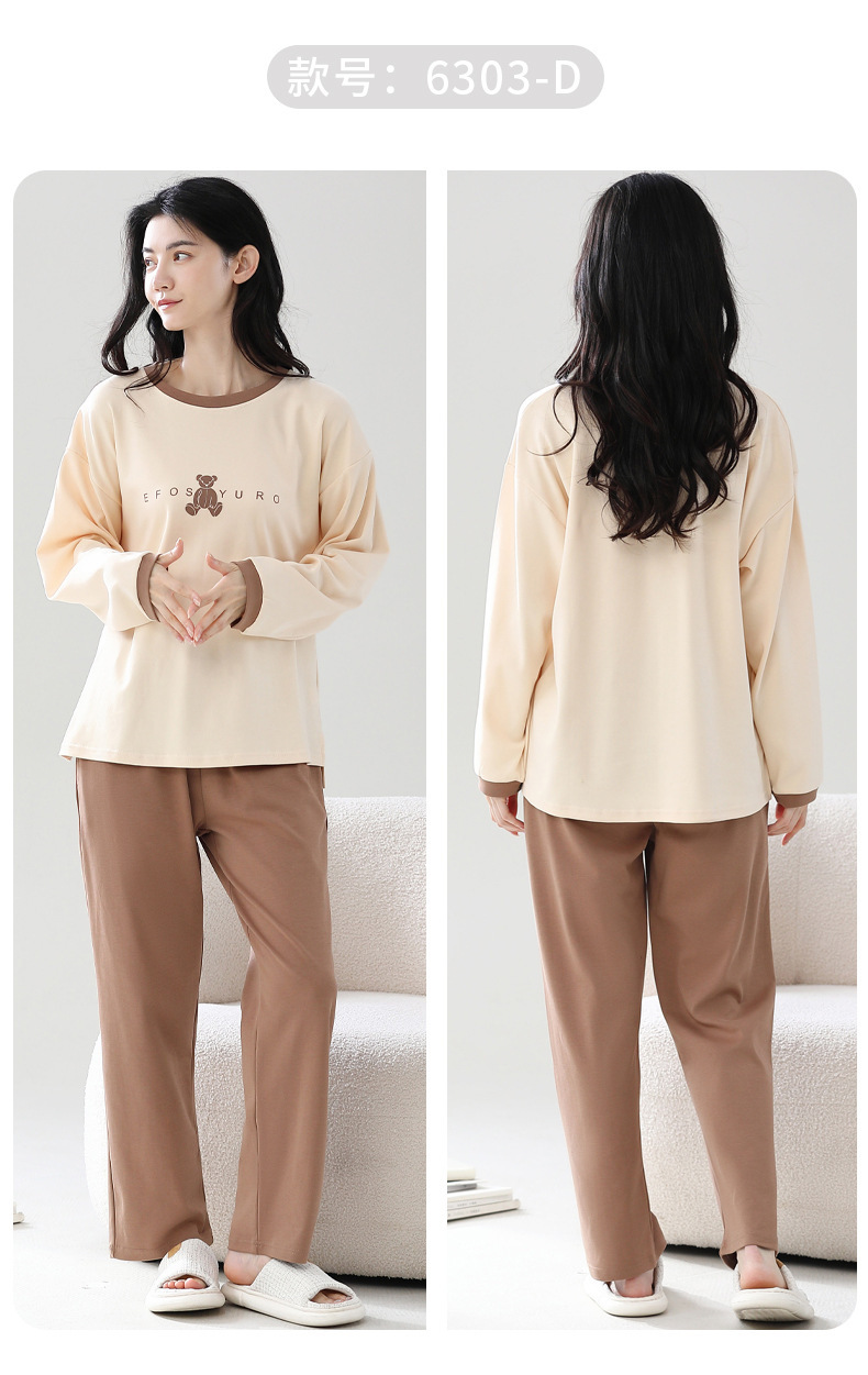 纯棉睡衣女秋季新款圆领长袖长裤甜美卡通带胸垫一体可外穿家居服