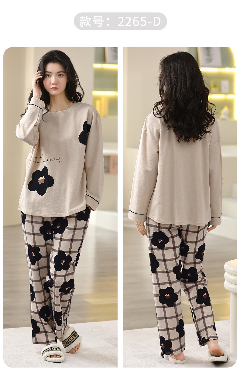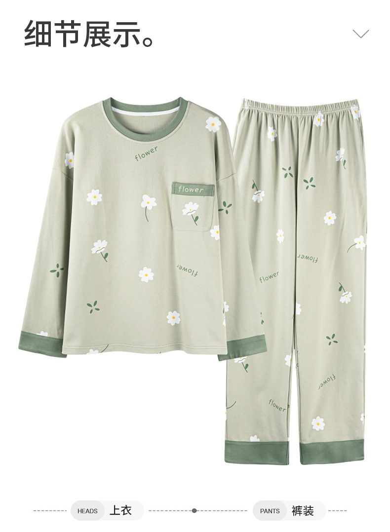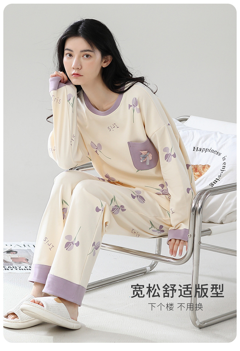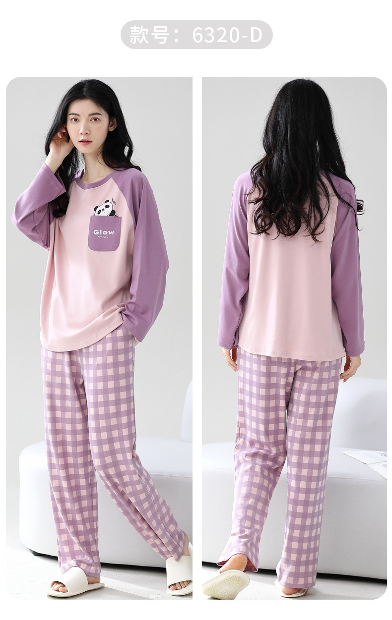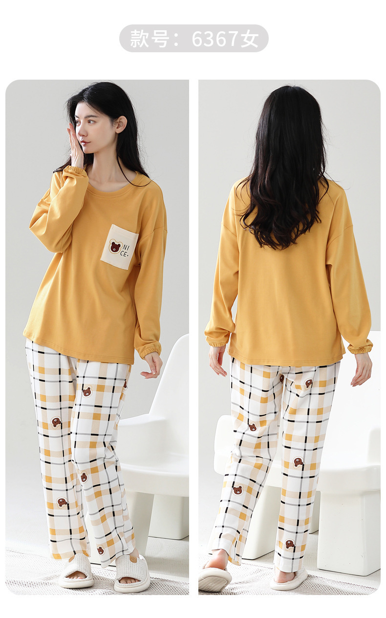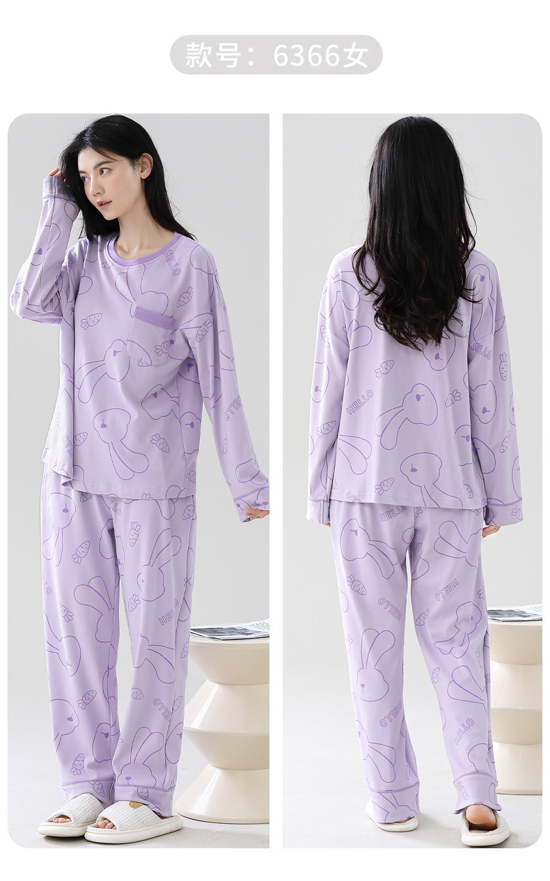 纯棉睡衣女秋季新款圆领长袖长裤甜美卡通带胸垫一体可外穿家居服