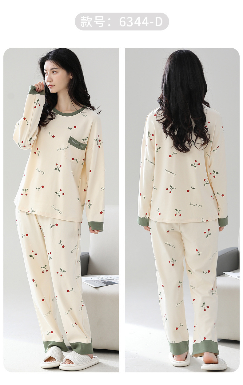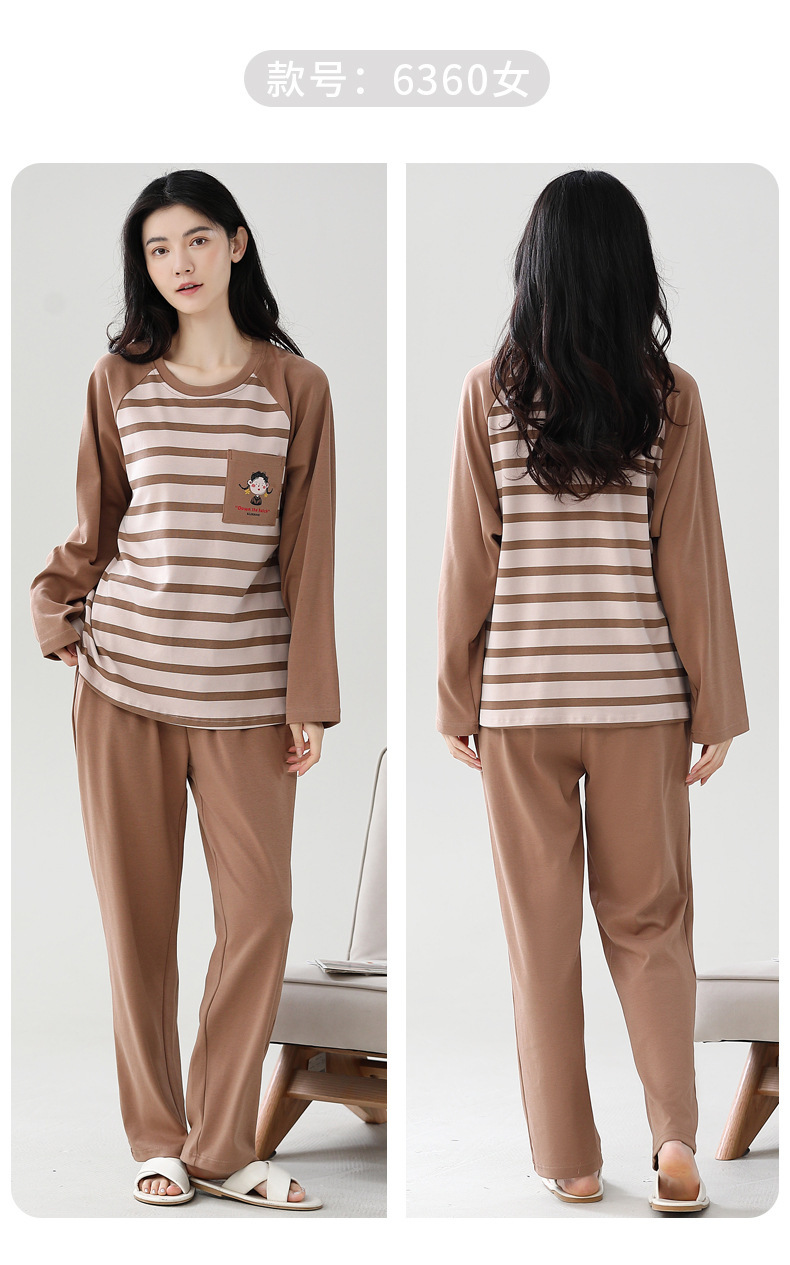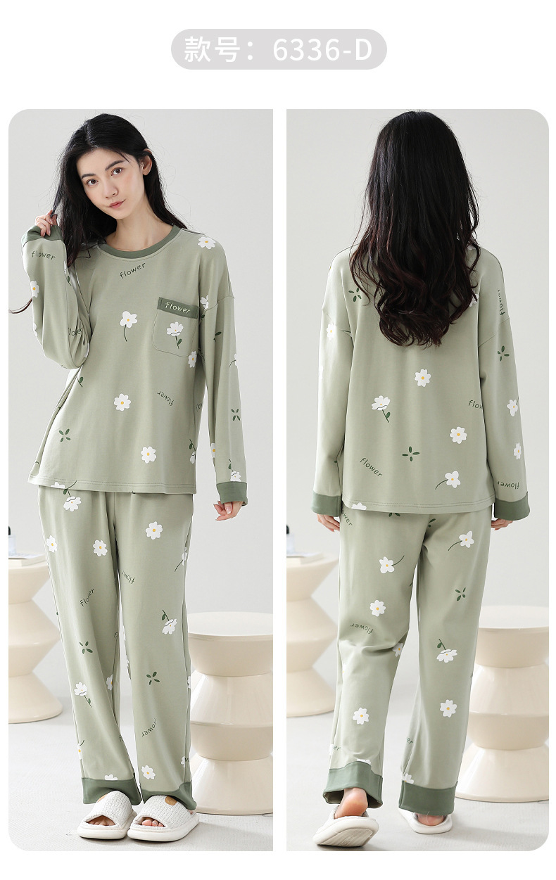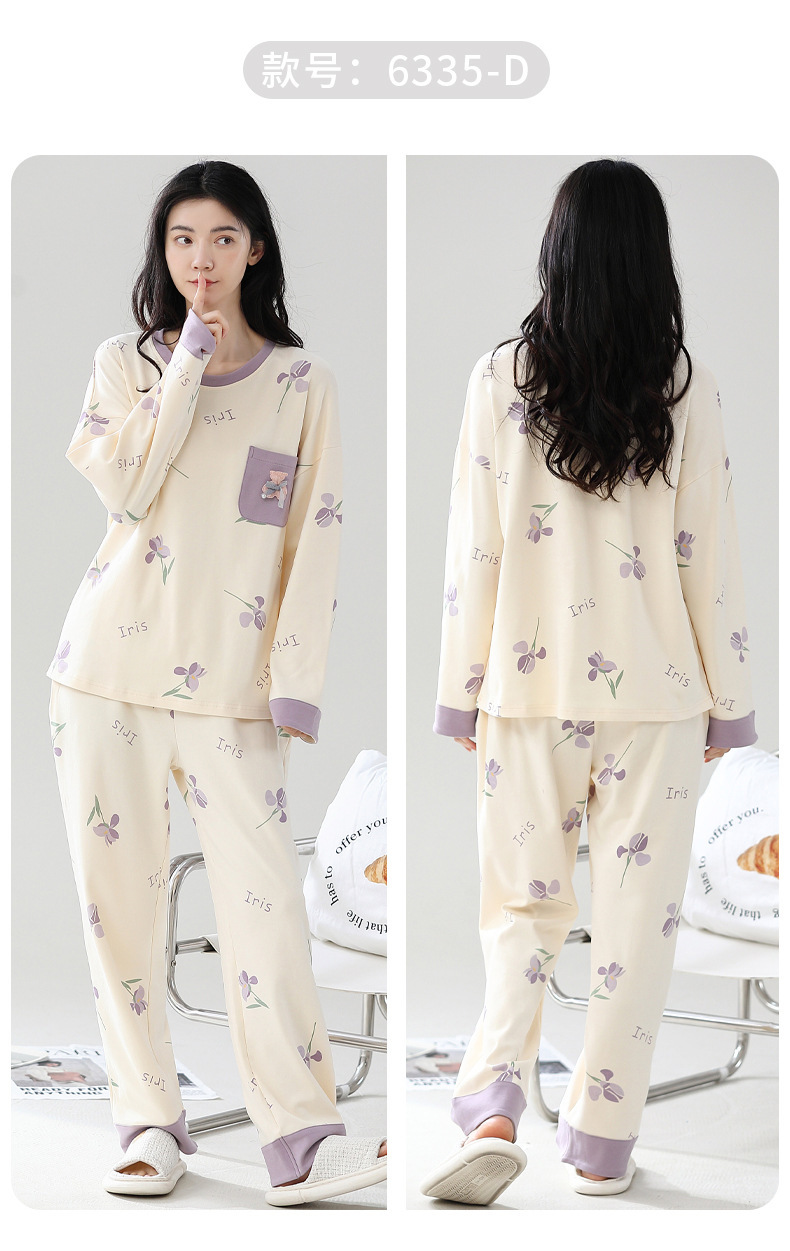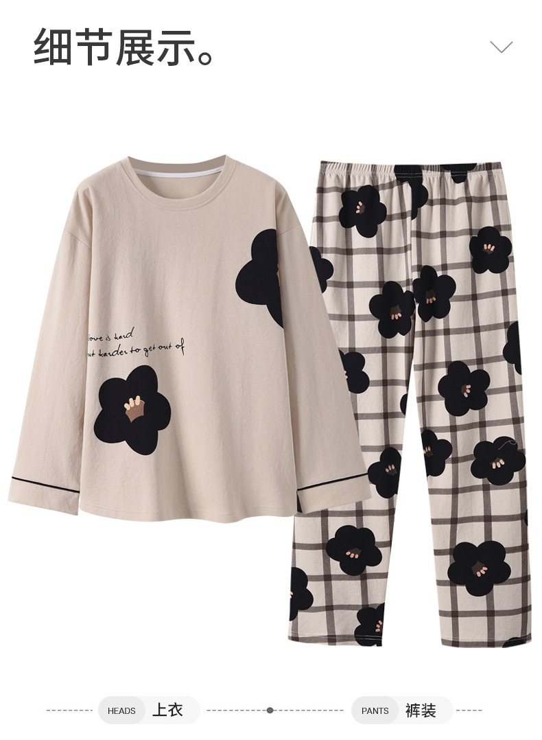 纯棉睡衣女秋季新款圆领长袖长裤甜美卡通带胸垫一体可外穿家居服
