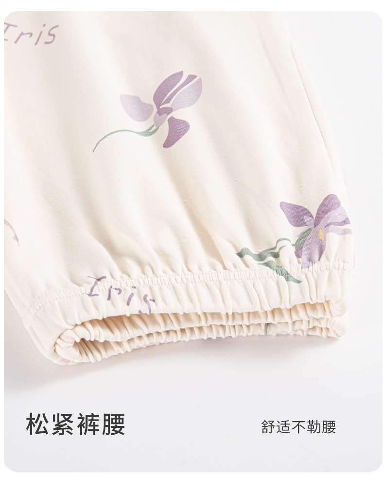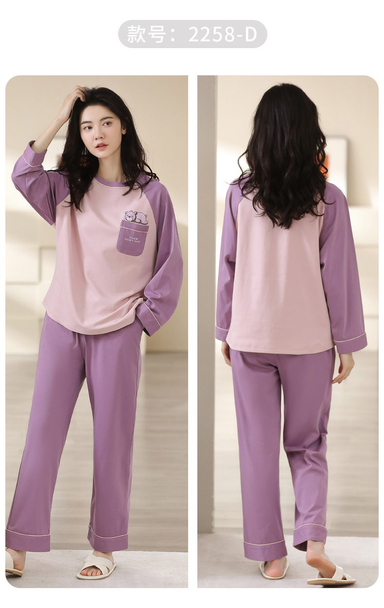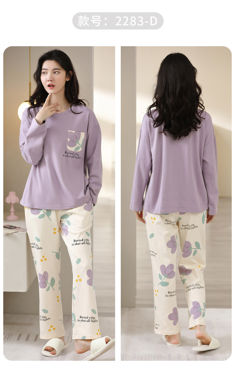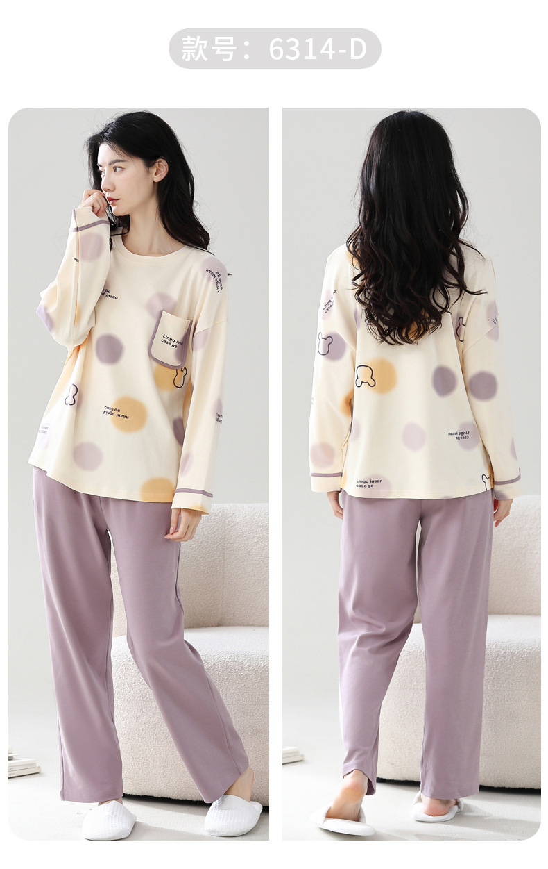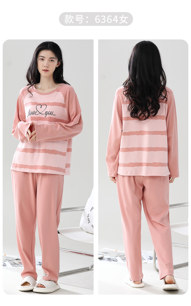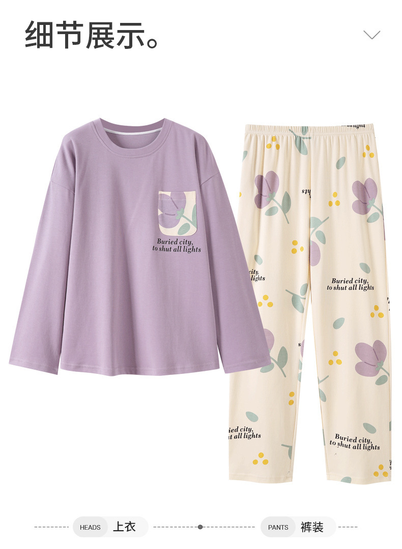 纯棉睡衣女秋季新款圆领长袖长裤甜美卡通带胸垫一体可外穿家居服