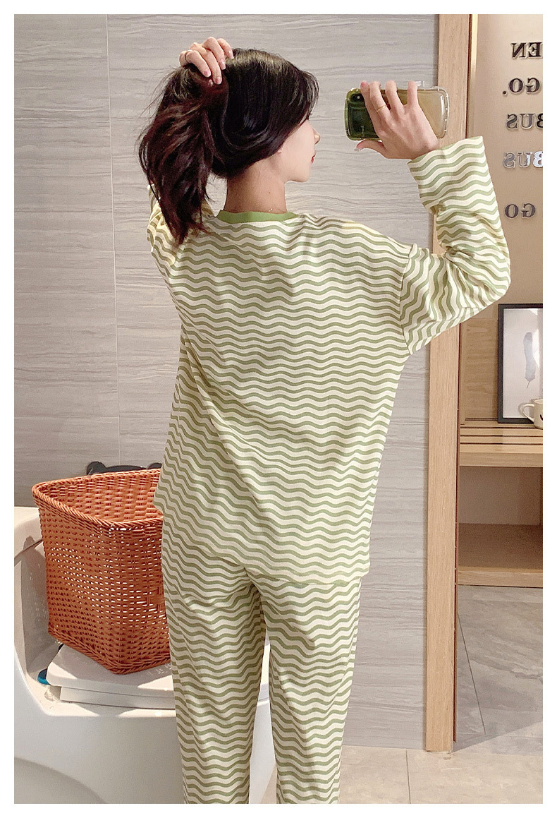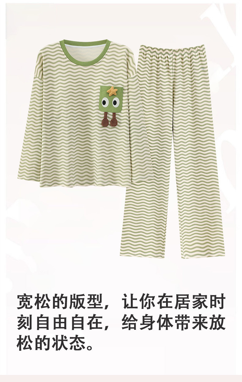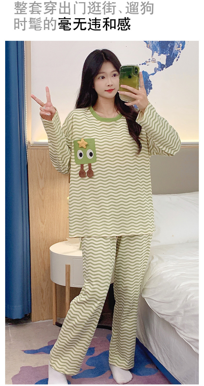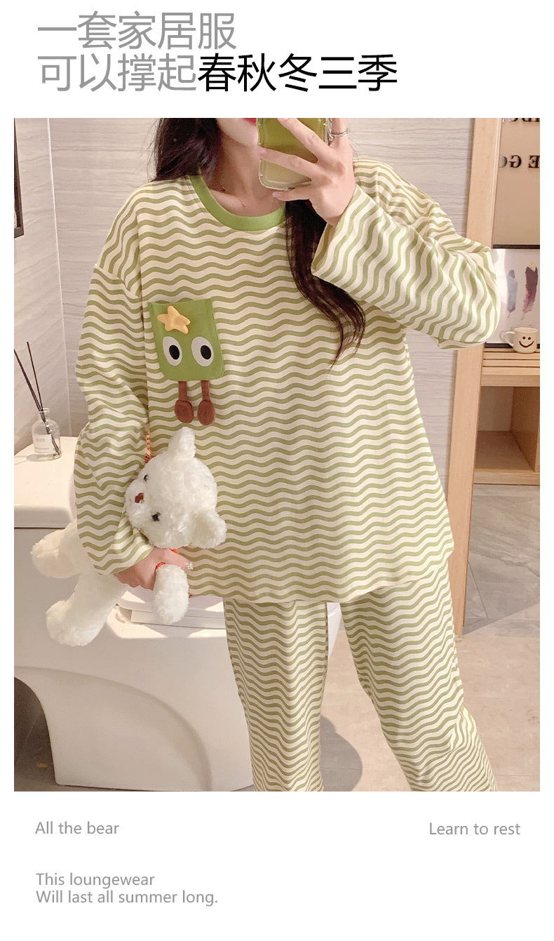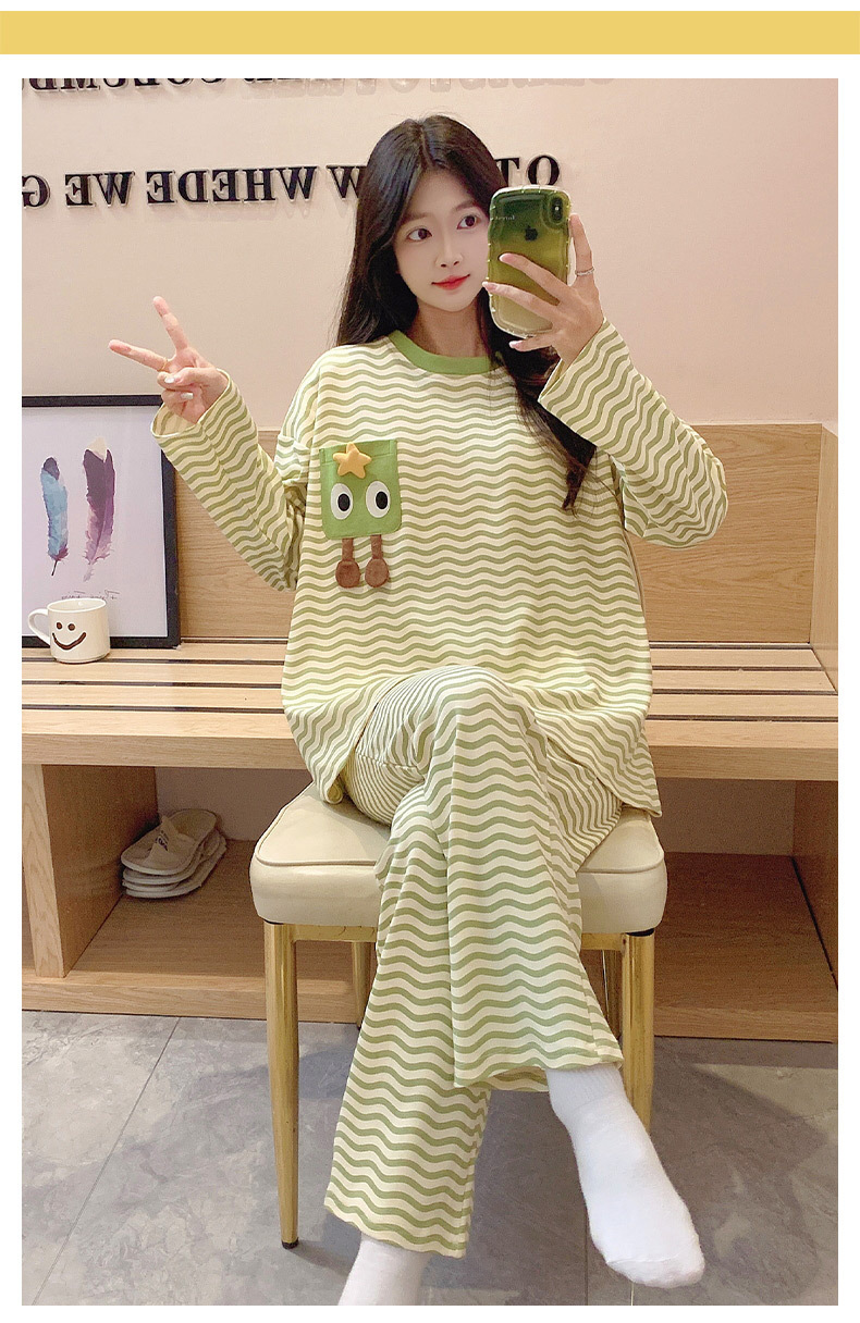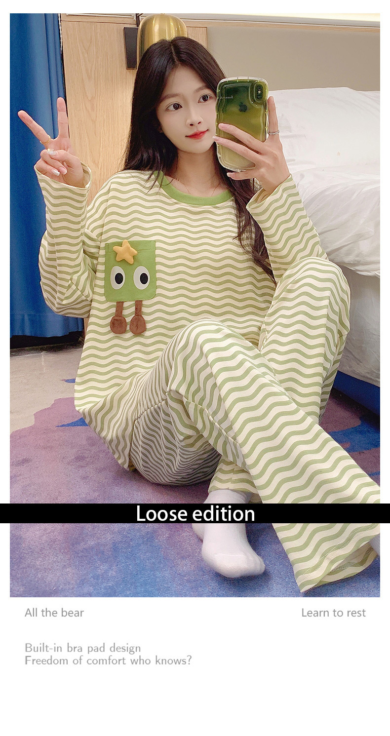 带胸垫睡衣女秋冬季长袖套头女学生卡通可爱家居服套装可外穿仿棉