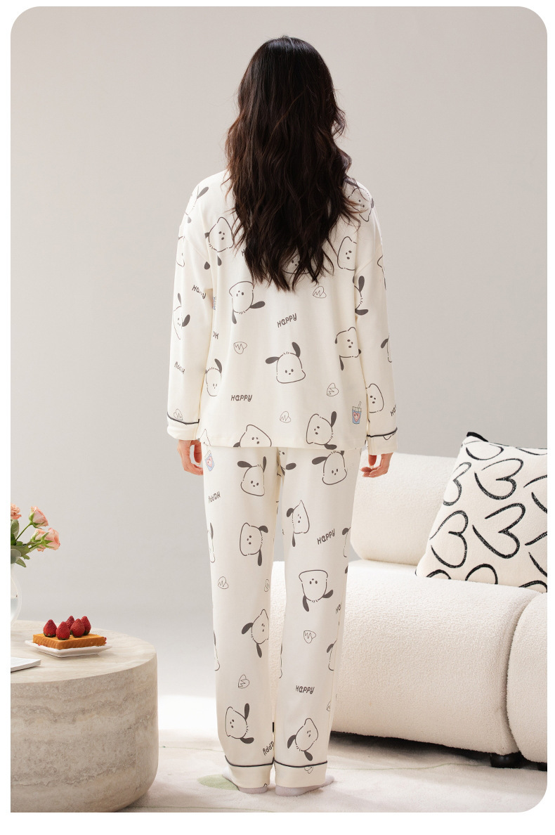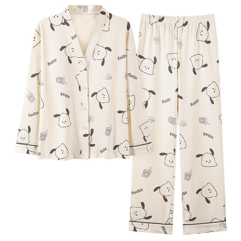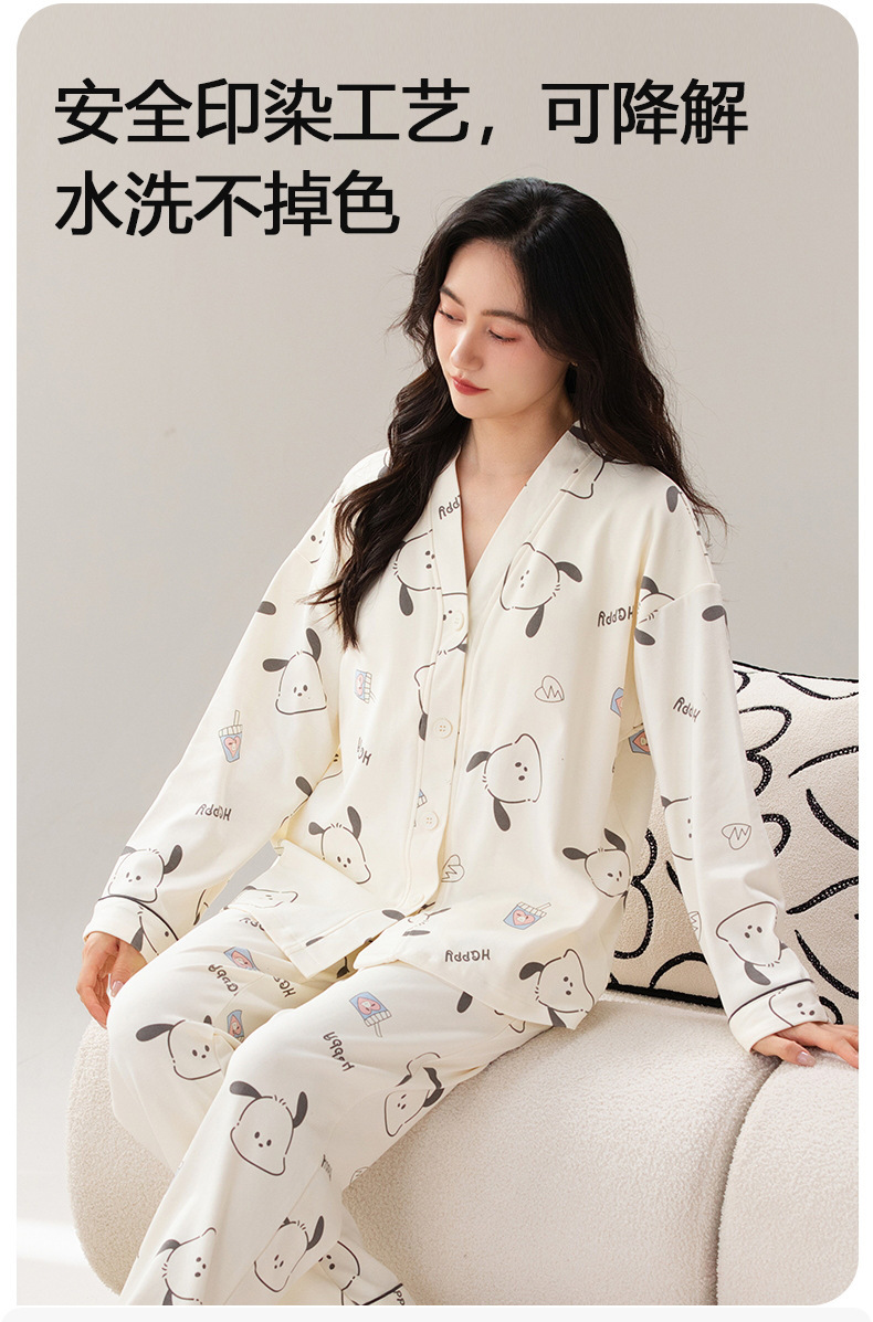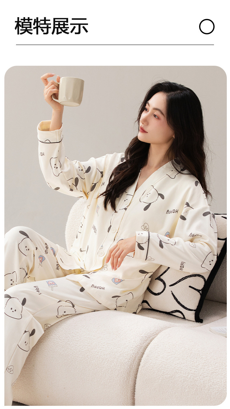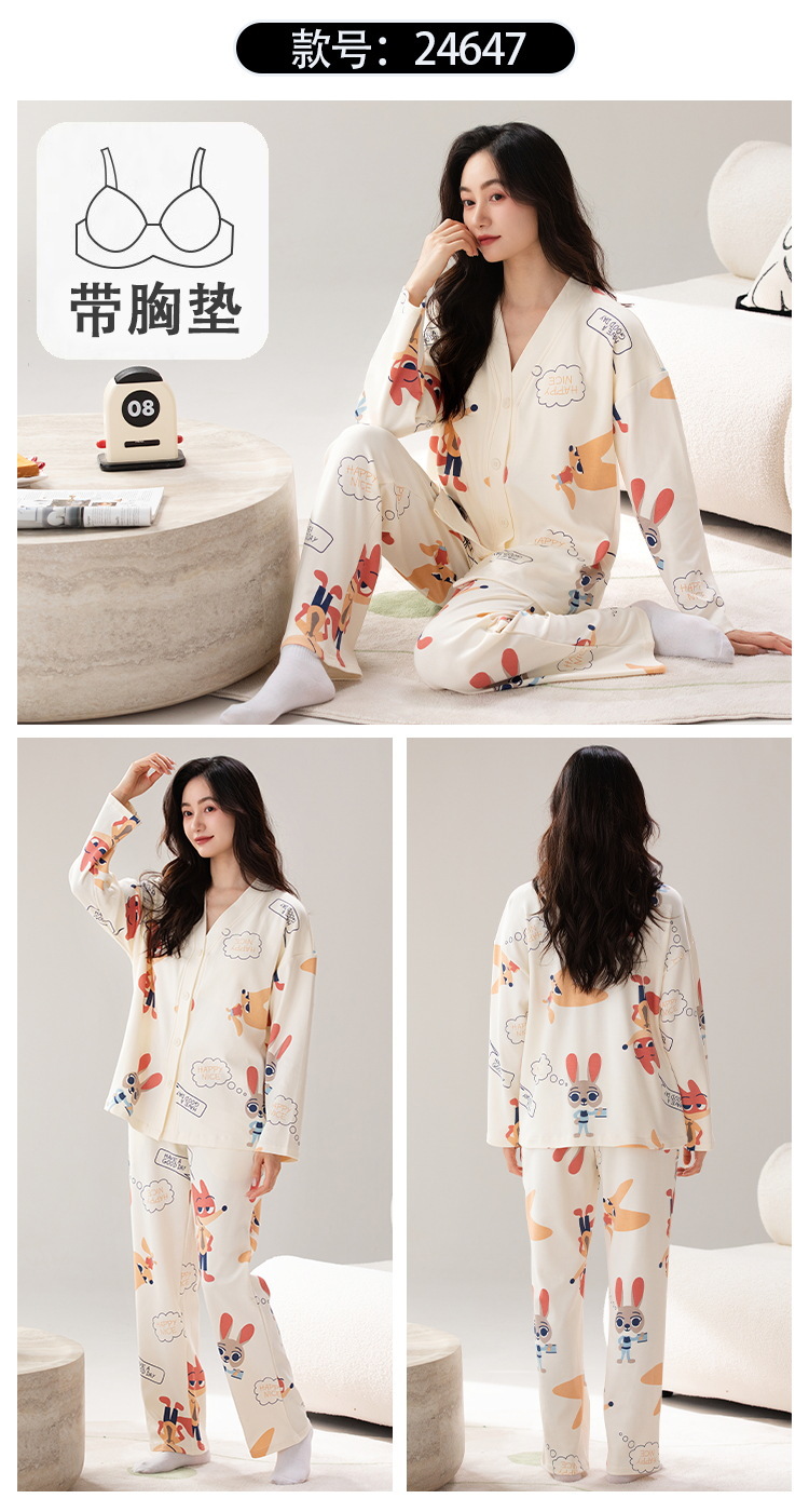 睡衣女带胸垫长袖长裤春秋季薄款和服领开衫可外穿女士家居服新款