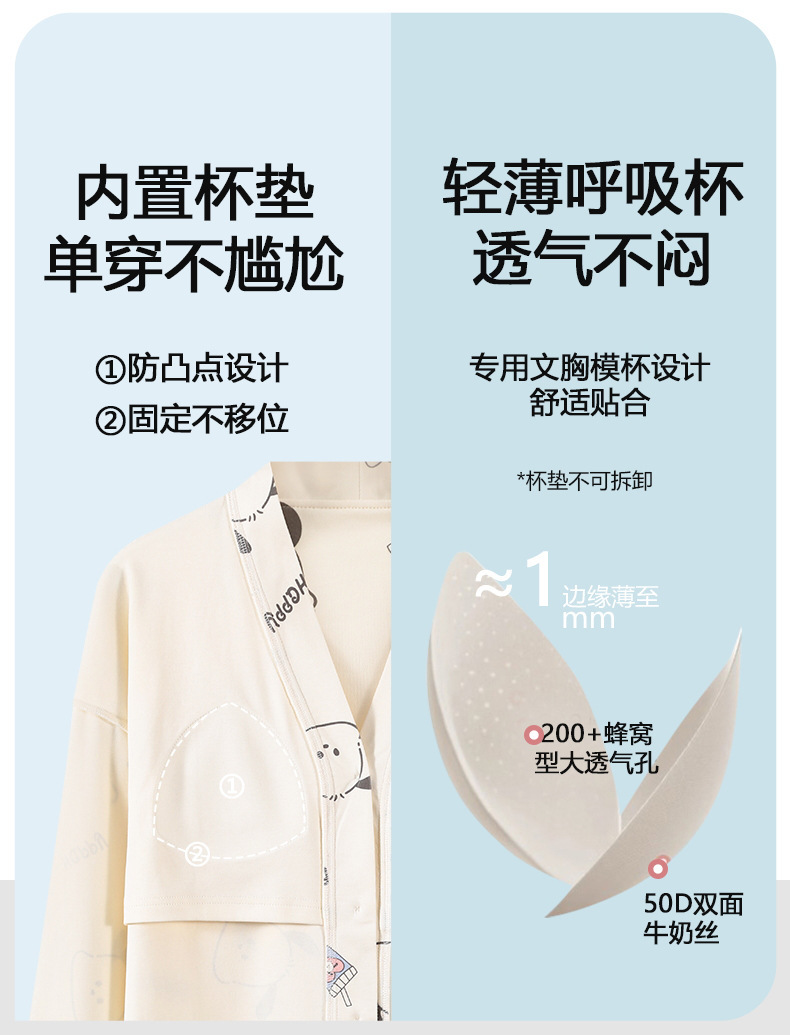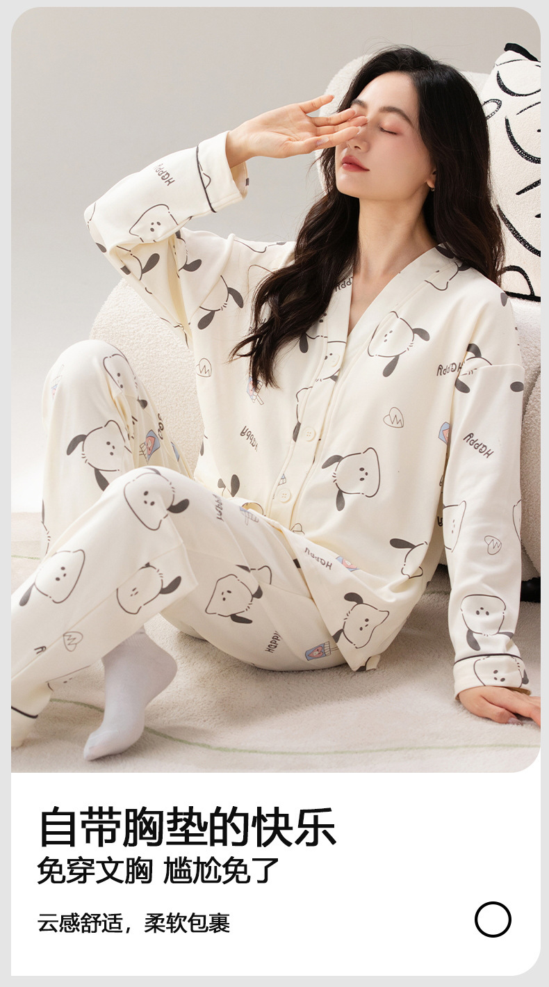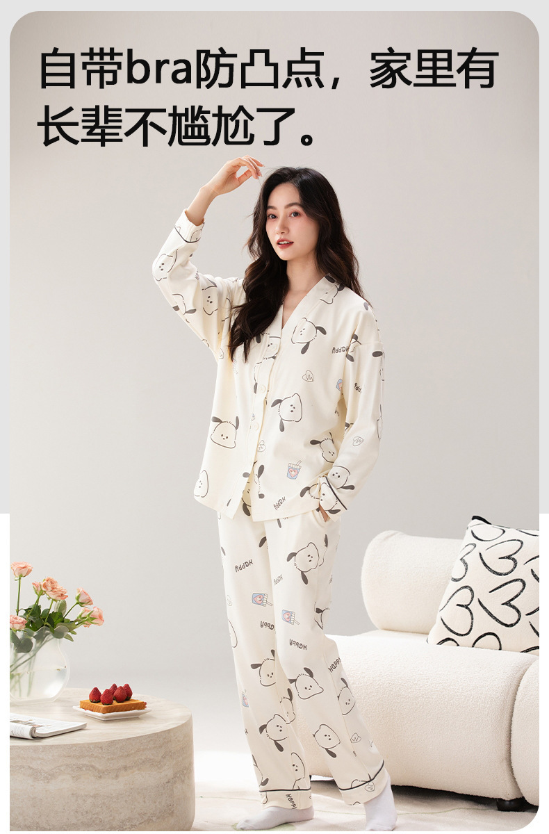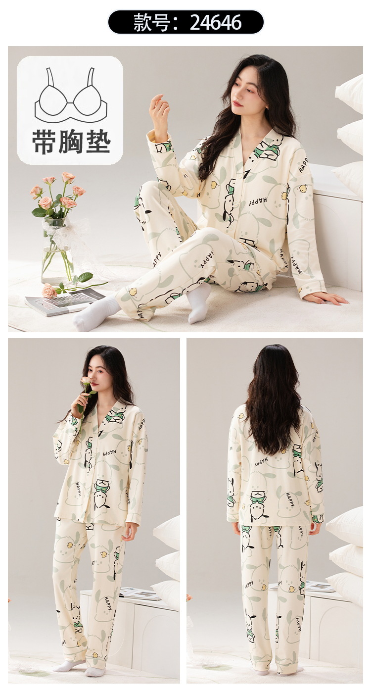 pajamas women‘s long-sleeved trousers with chest pad spring and autumn thin kimono collar cardigan can be worn outside ladies‘ homewear new