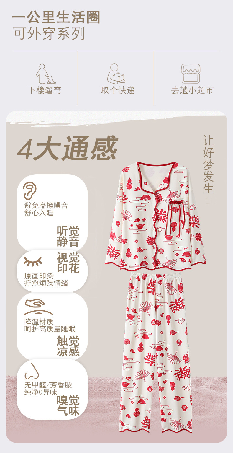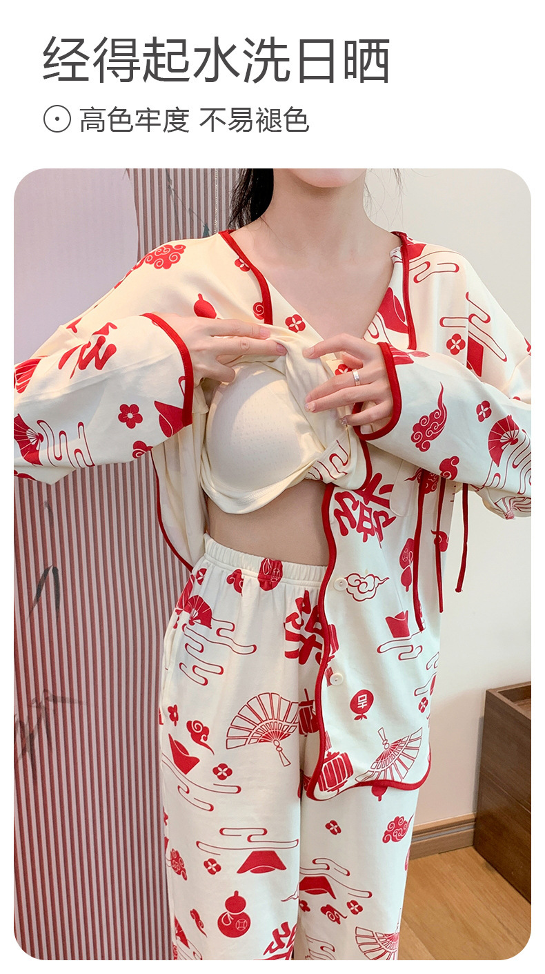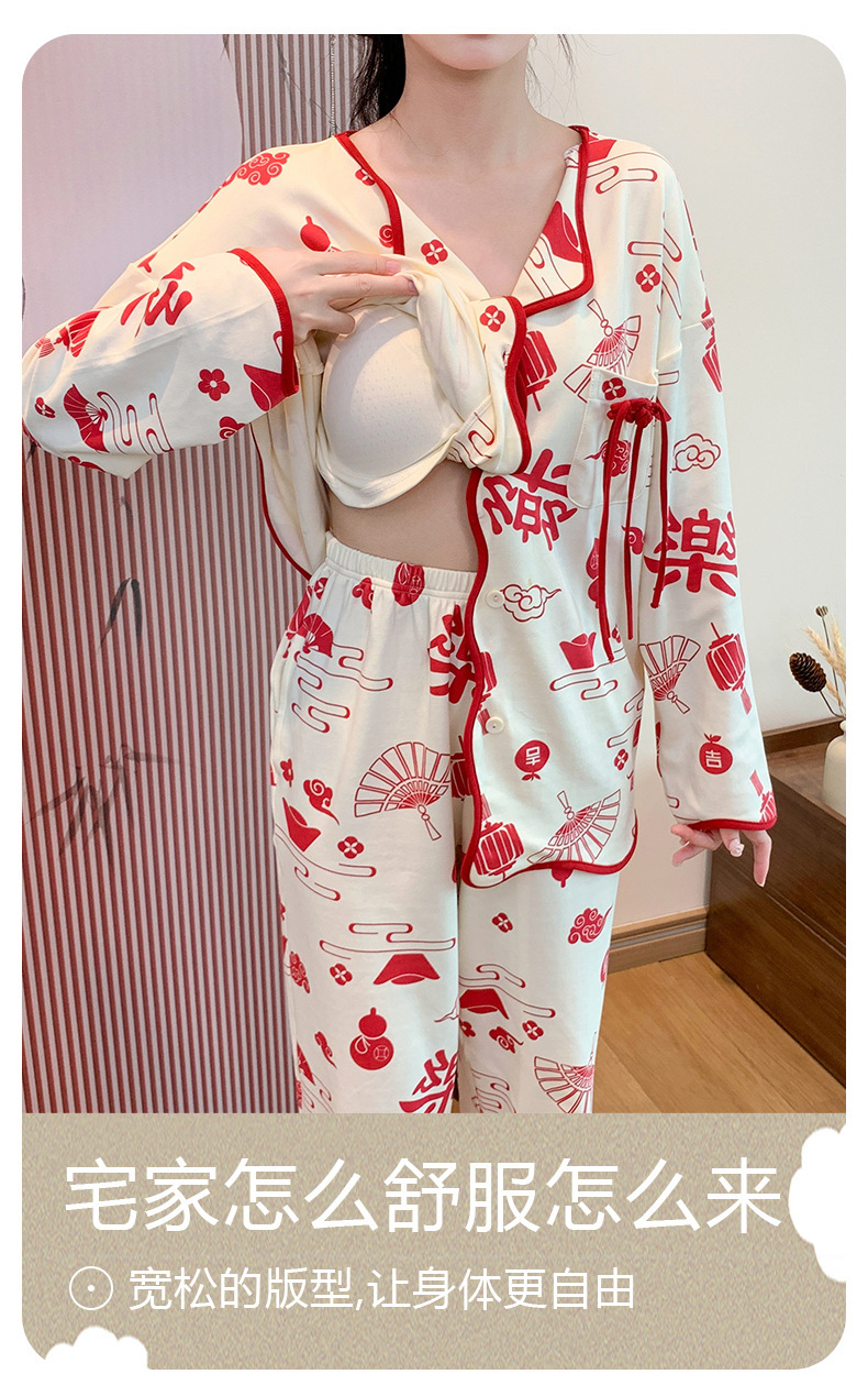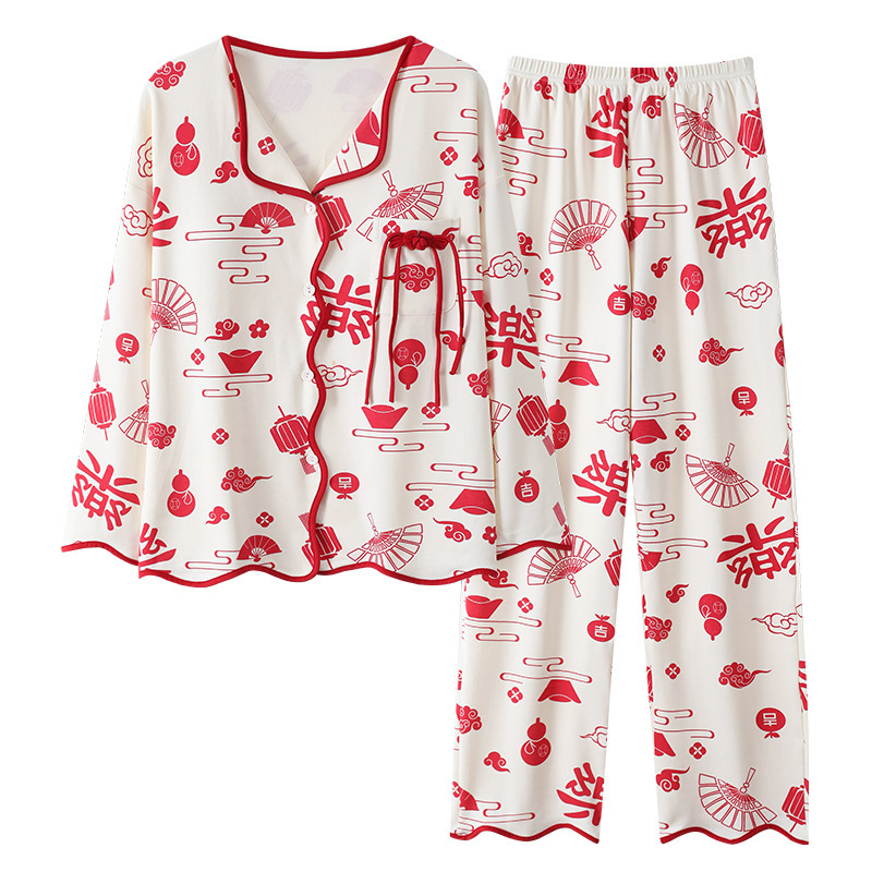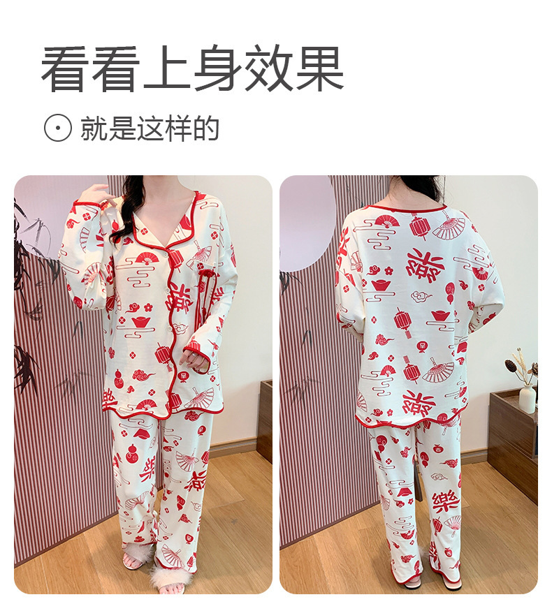 新款睡衣女士春秋款秋季休闲简约宽松开衫棉质长袖家居服套装批发