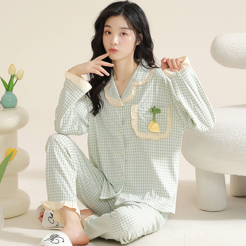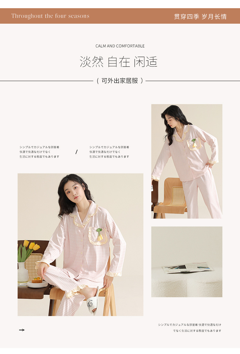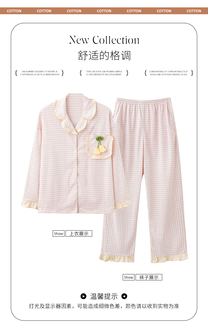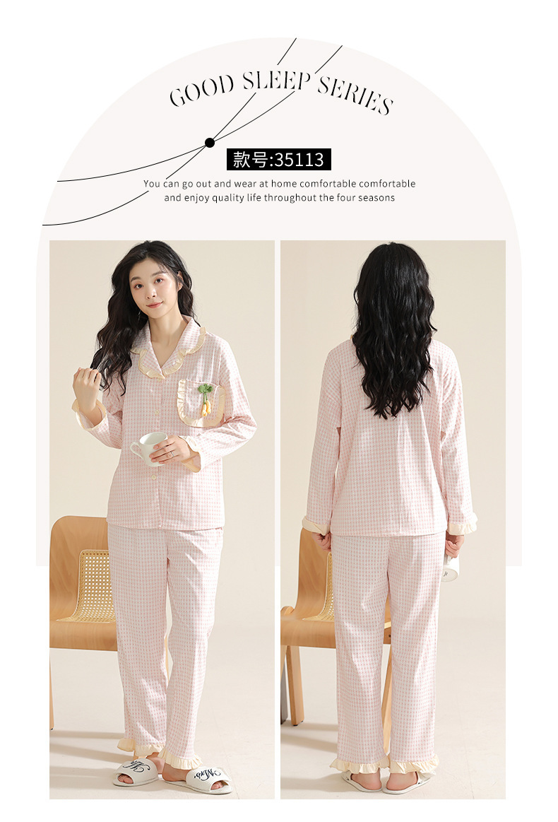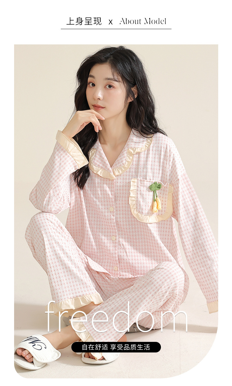 新款睡衣女秋季拉架仿棉长袖女士大码田园风开衫家居服套装可外穿