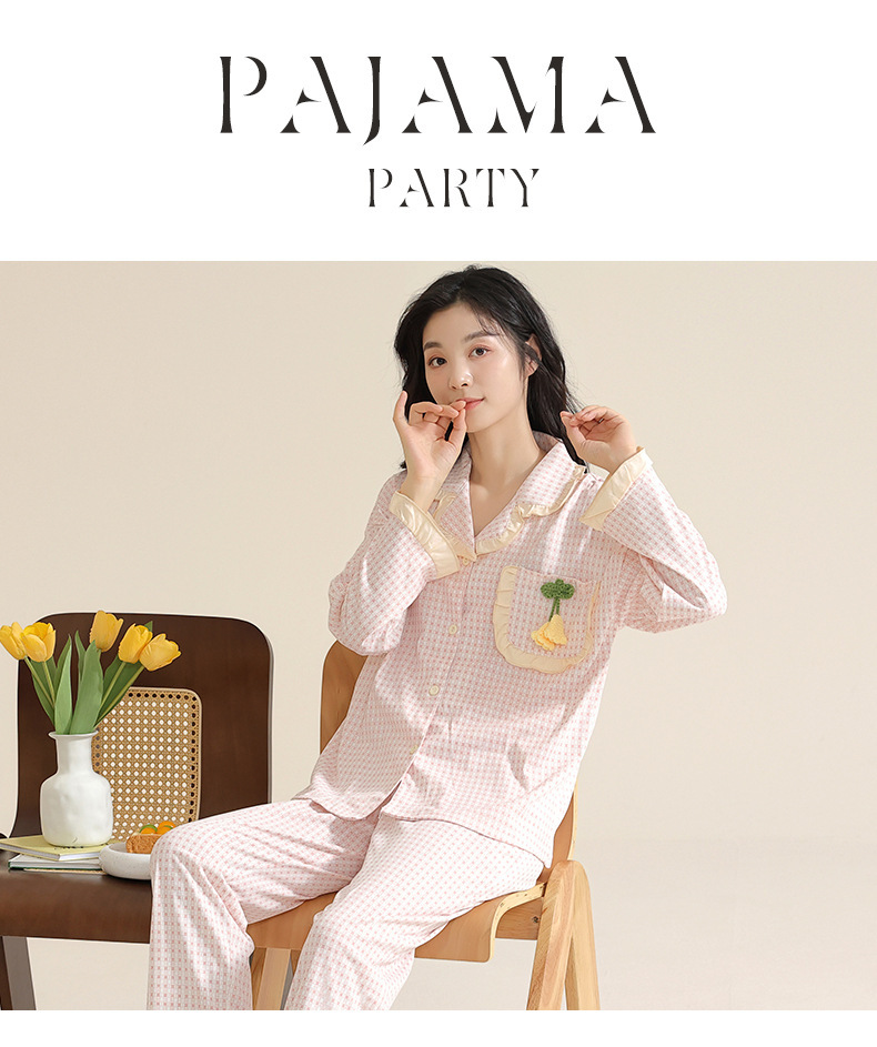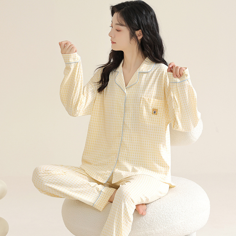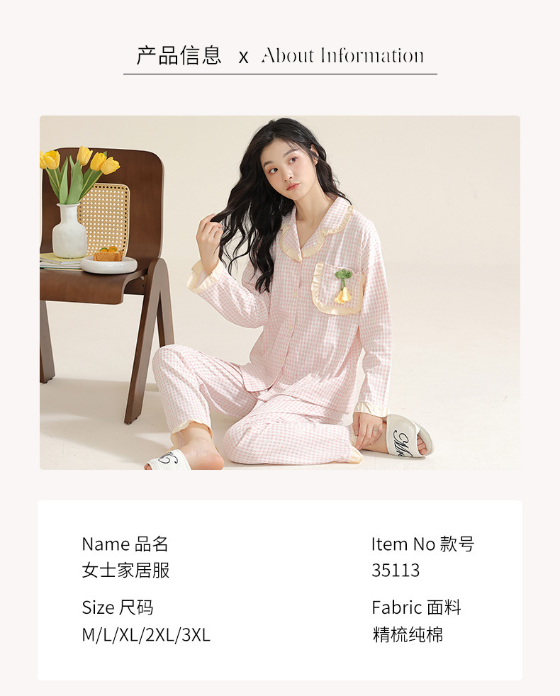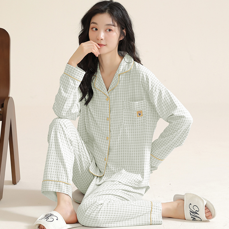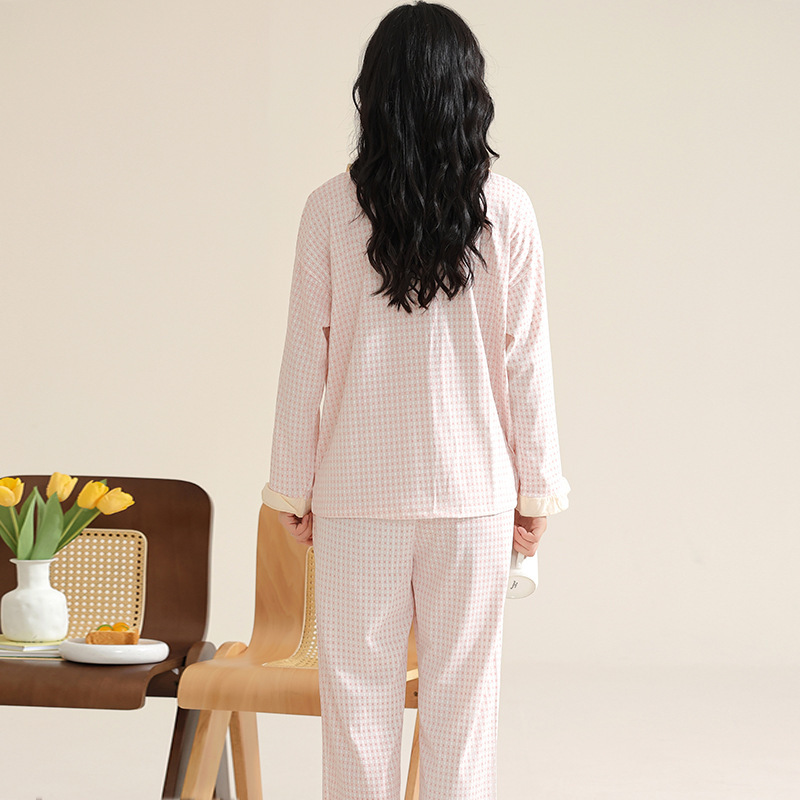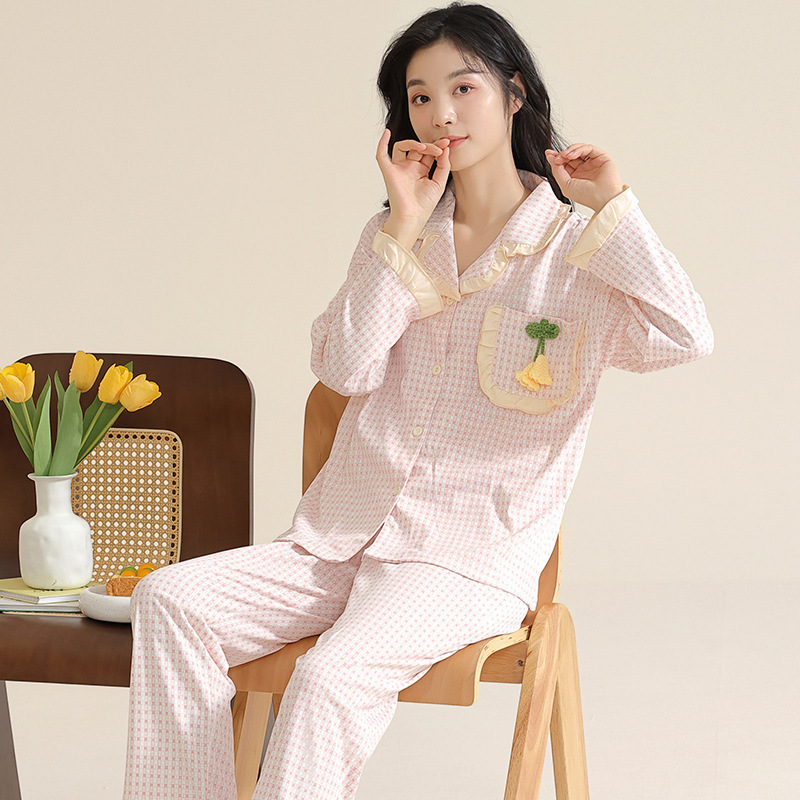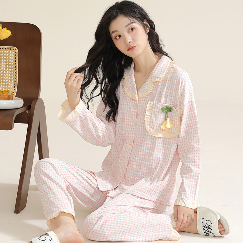 新款睡衣女秋季拉架仿棉长袖女士大码田园风开衫家居服套装可外穿
