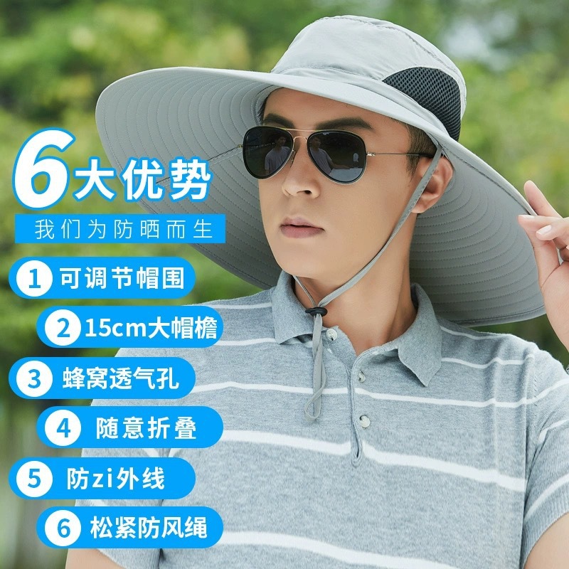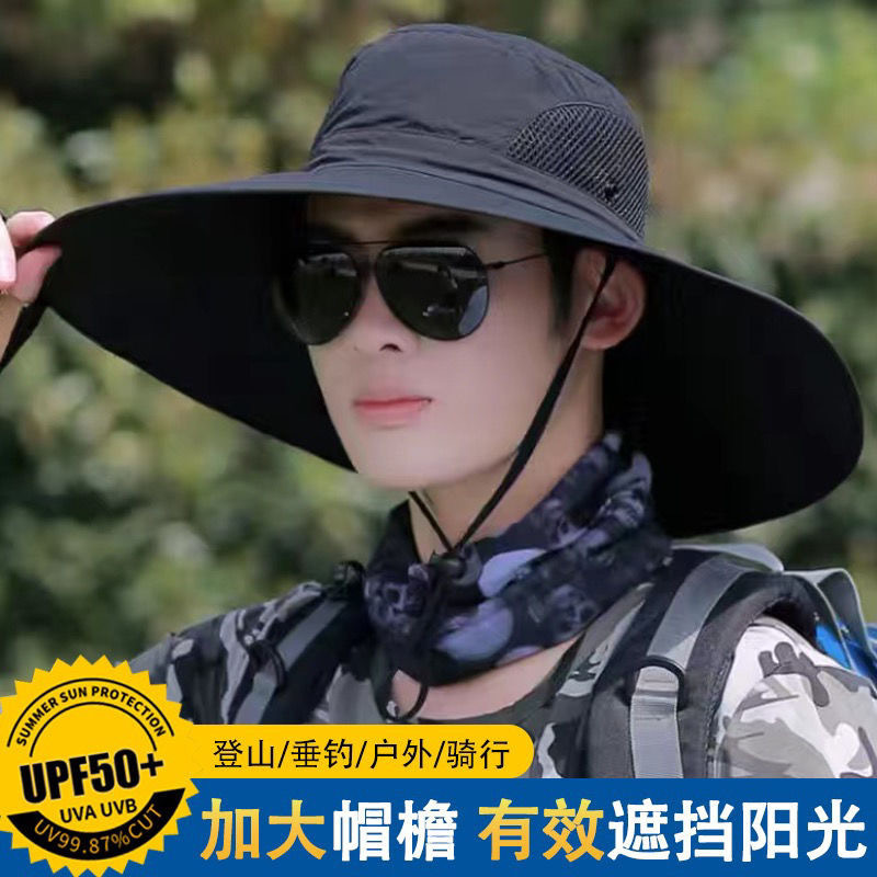 男士钓鱼帽可折叠迷彩帽户外工作大檐帽子大檐夏季防晒休闲太阳帽