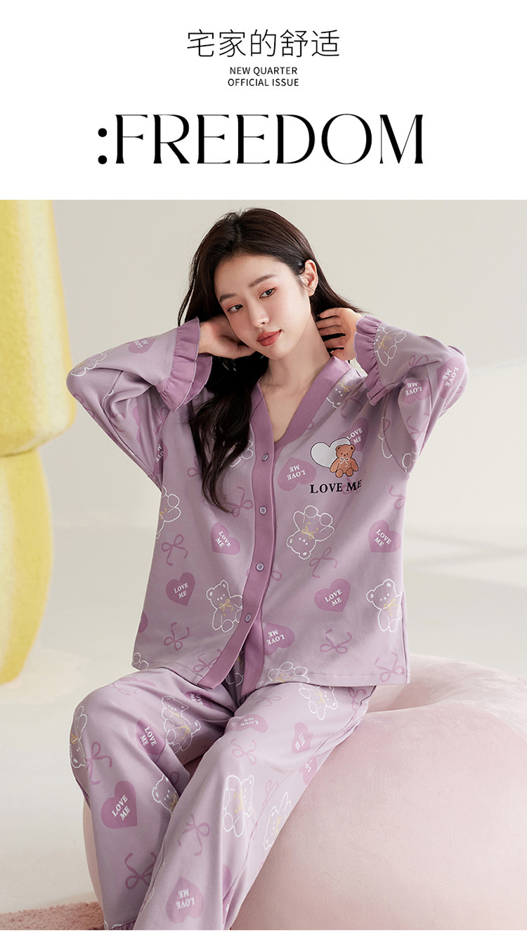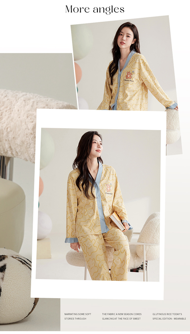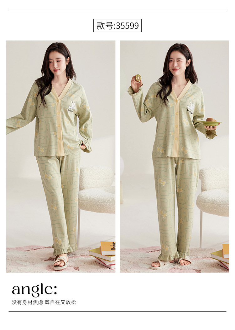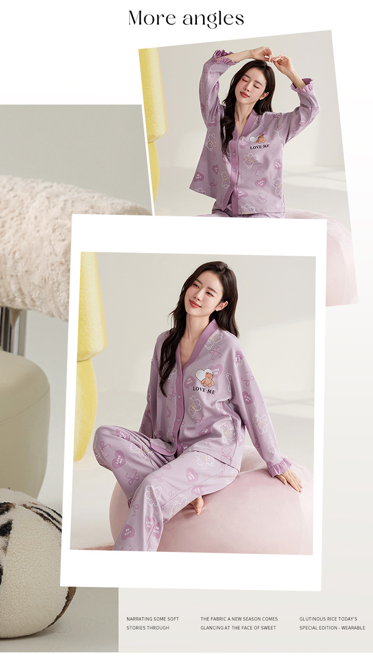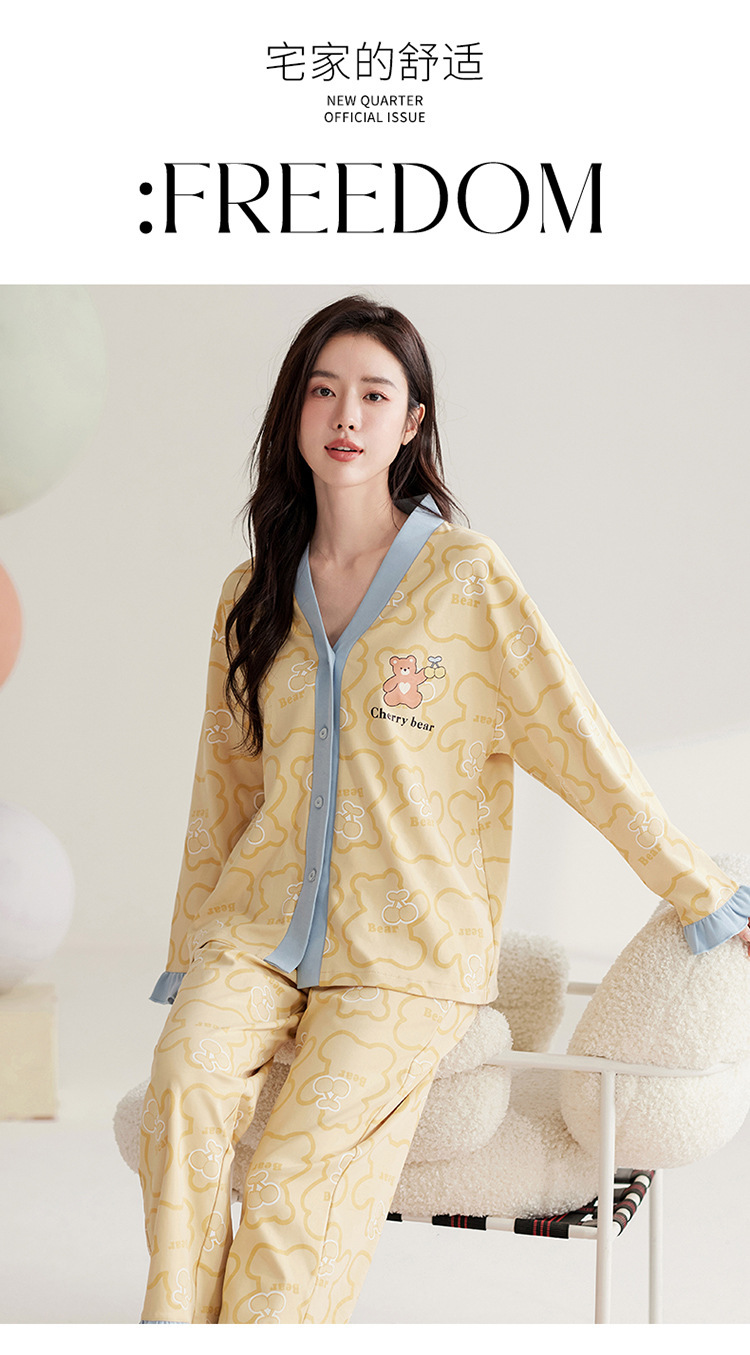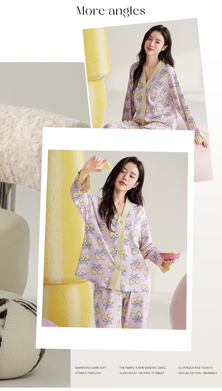 仿棉高档睡衣女新品春秋季开衫棉质长袖长裤ins可外穿家居服套装