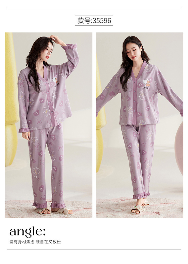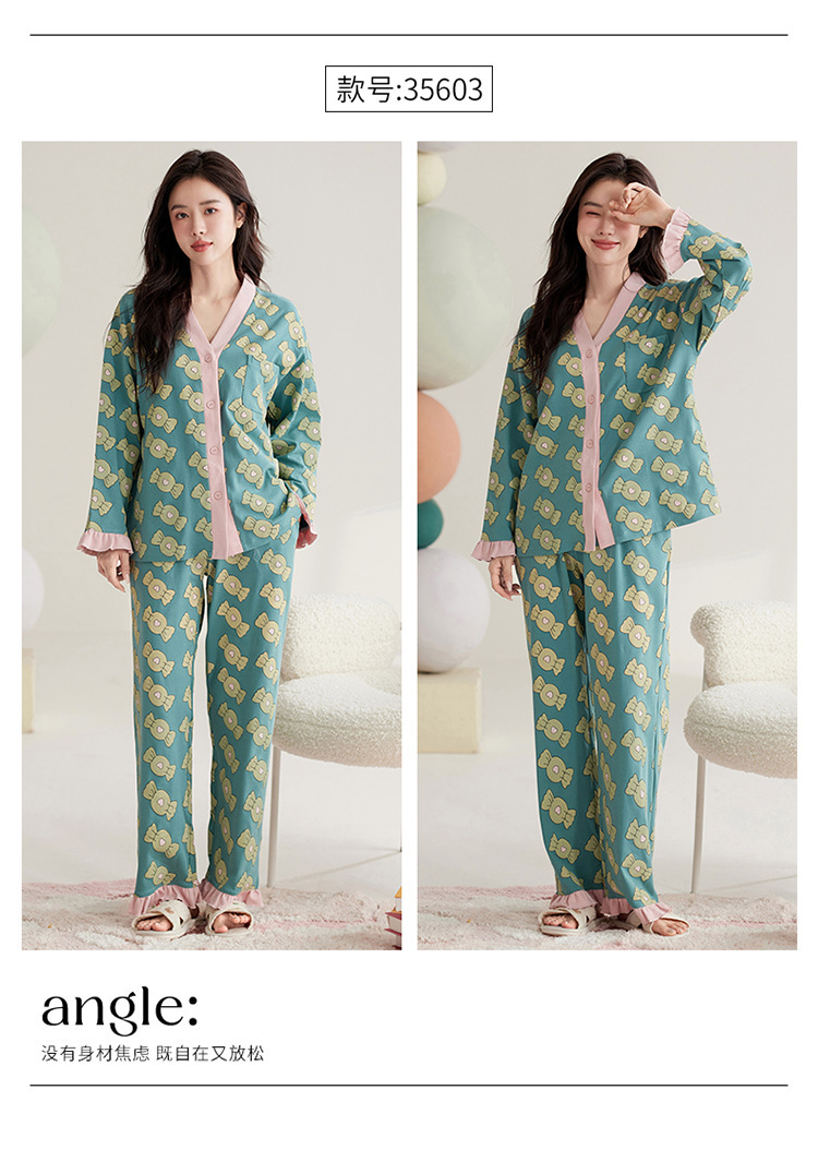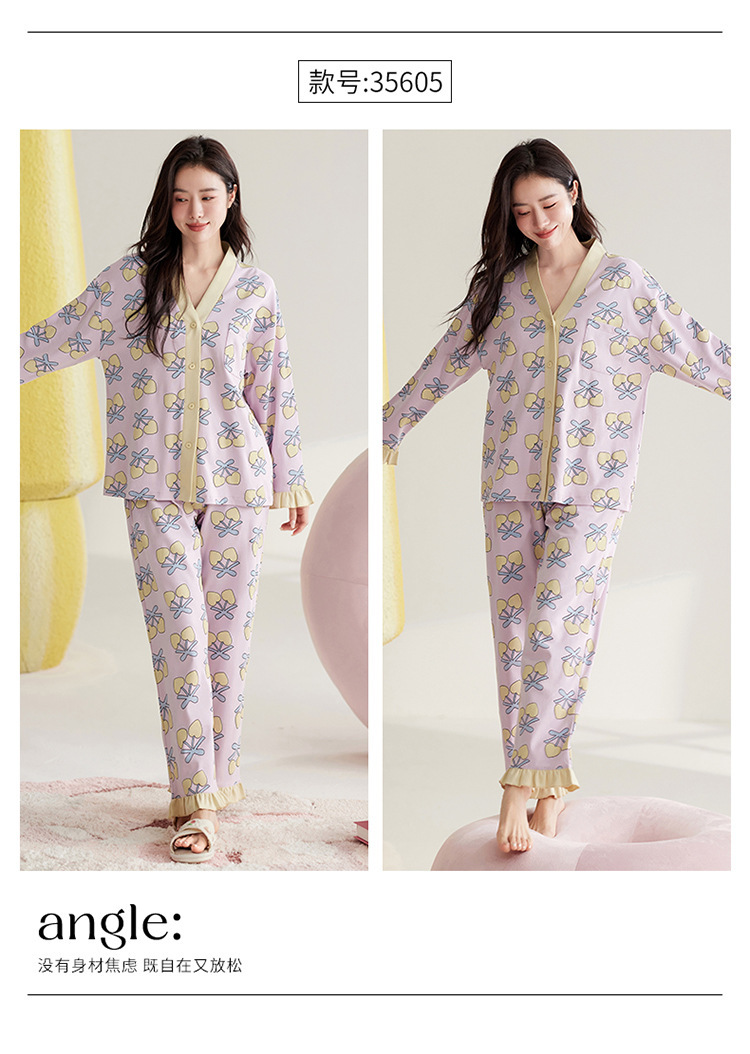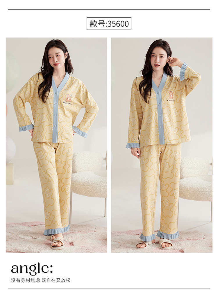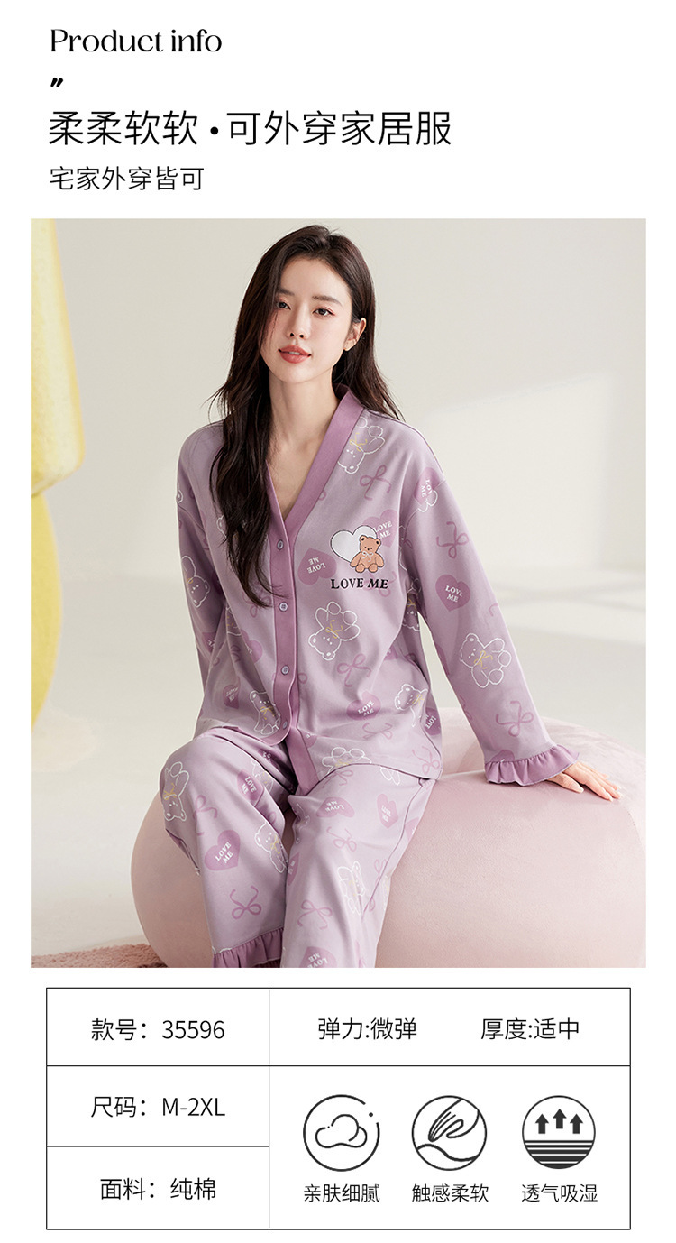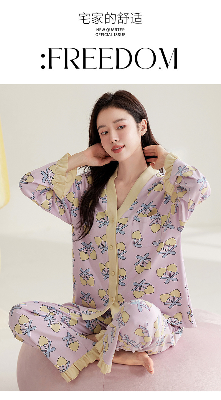 仿棉高档睡衣女新品春秋季开衫棉质长袖长裤ins可外穿家居服套装