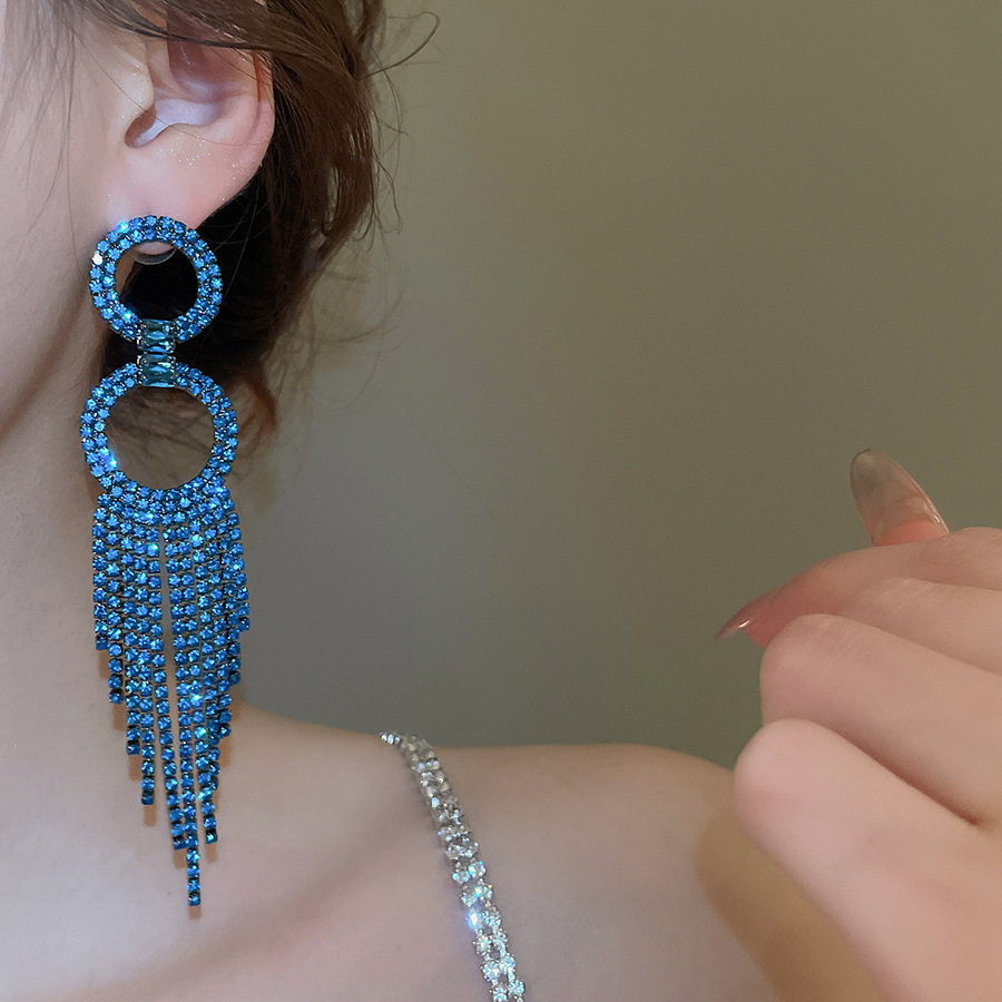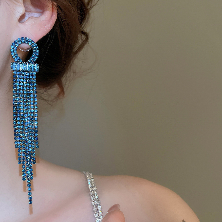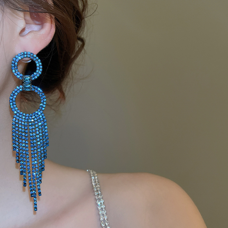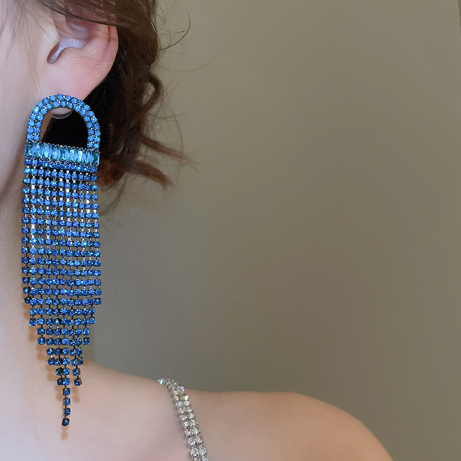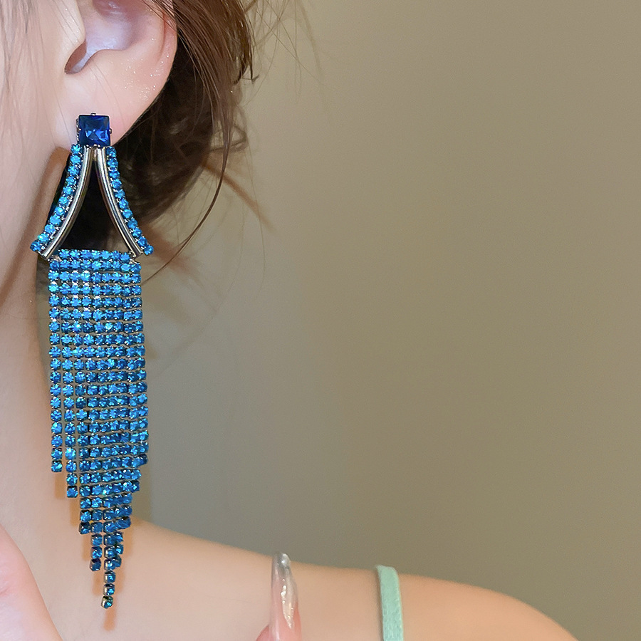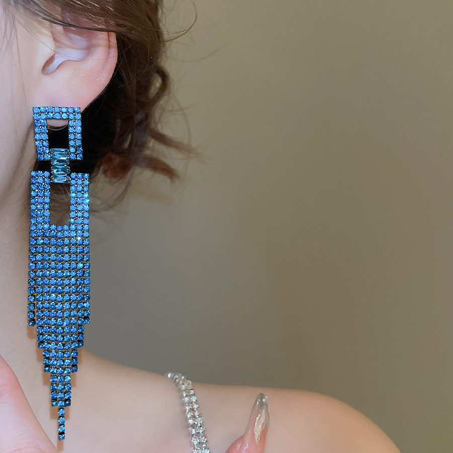 欧美跨境镶钻几何流苏耳环轻奢高级感耳钉时尚个性耳饰设计感小众