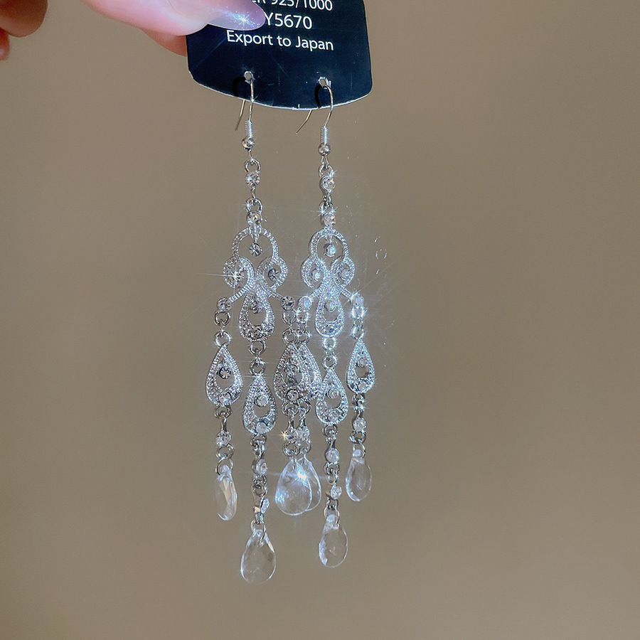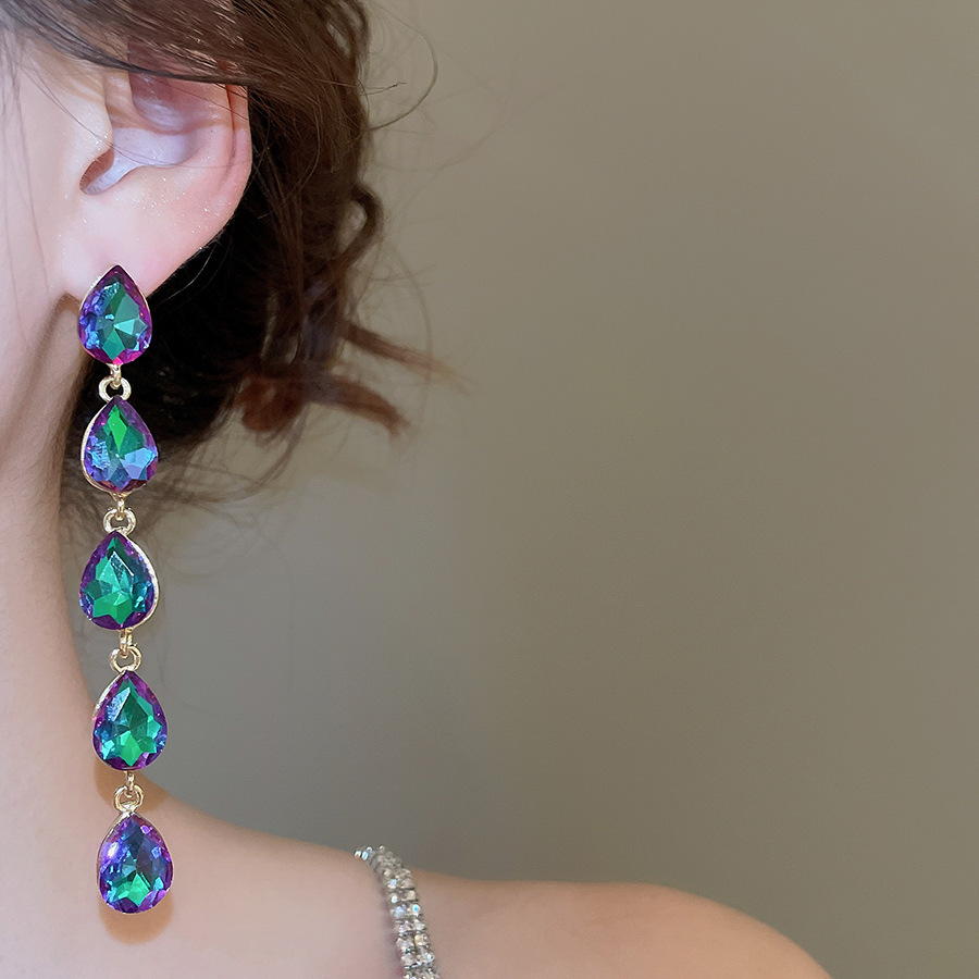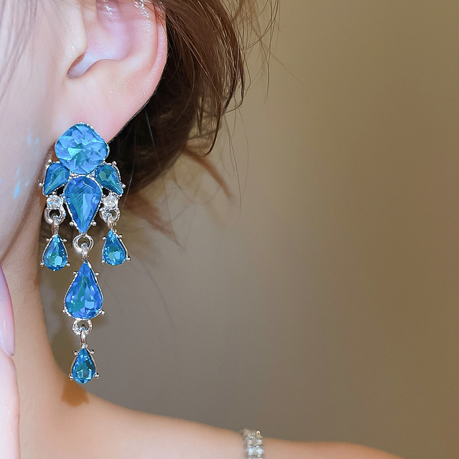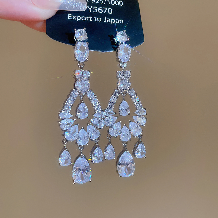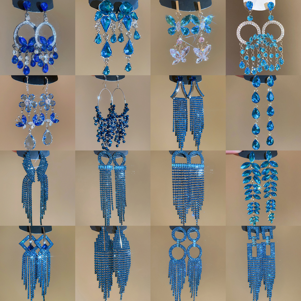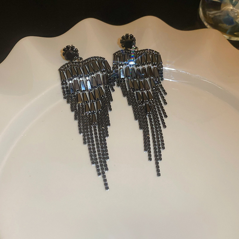 欧美跨境镶钻几何流苏耳环轻奢高级感耳钉时尚个性耳饰设计感小众