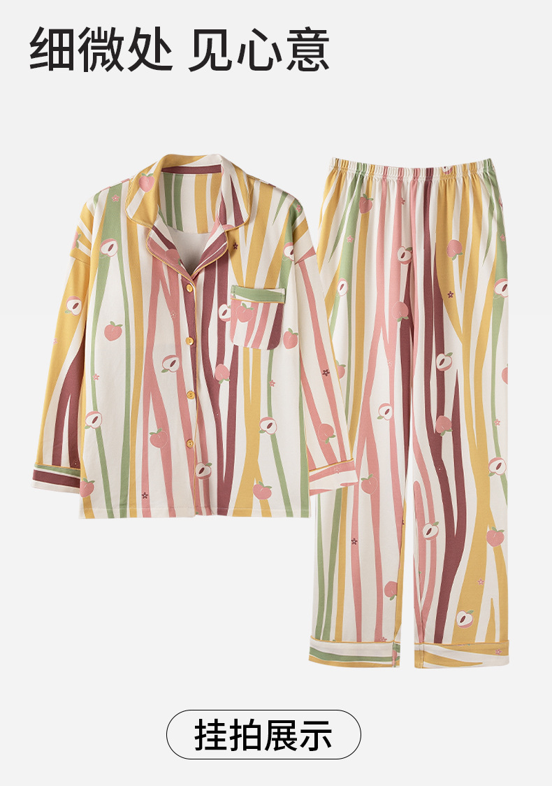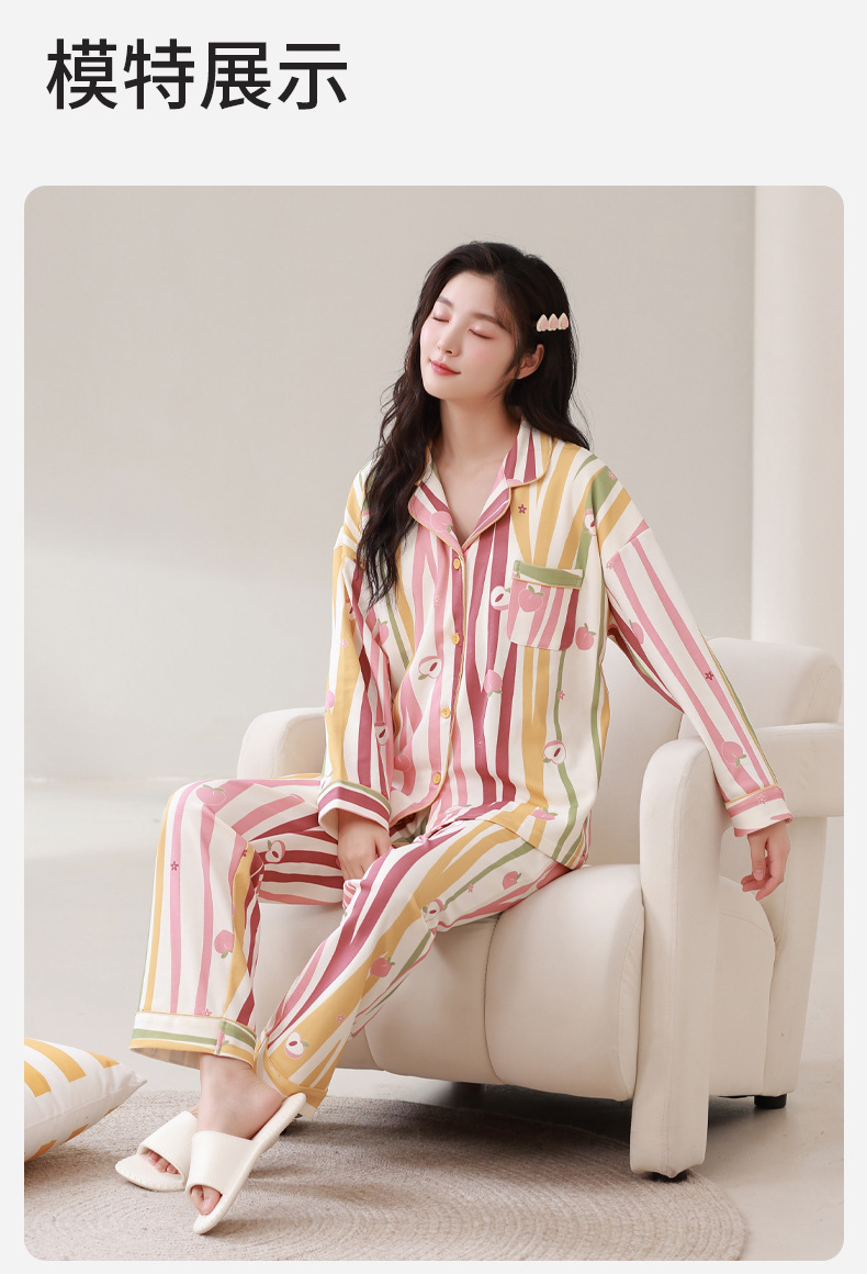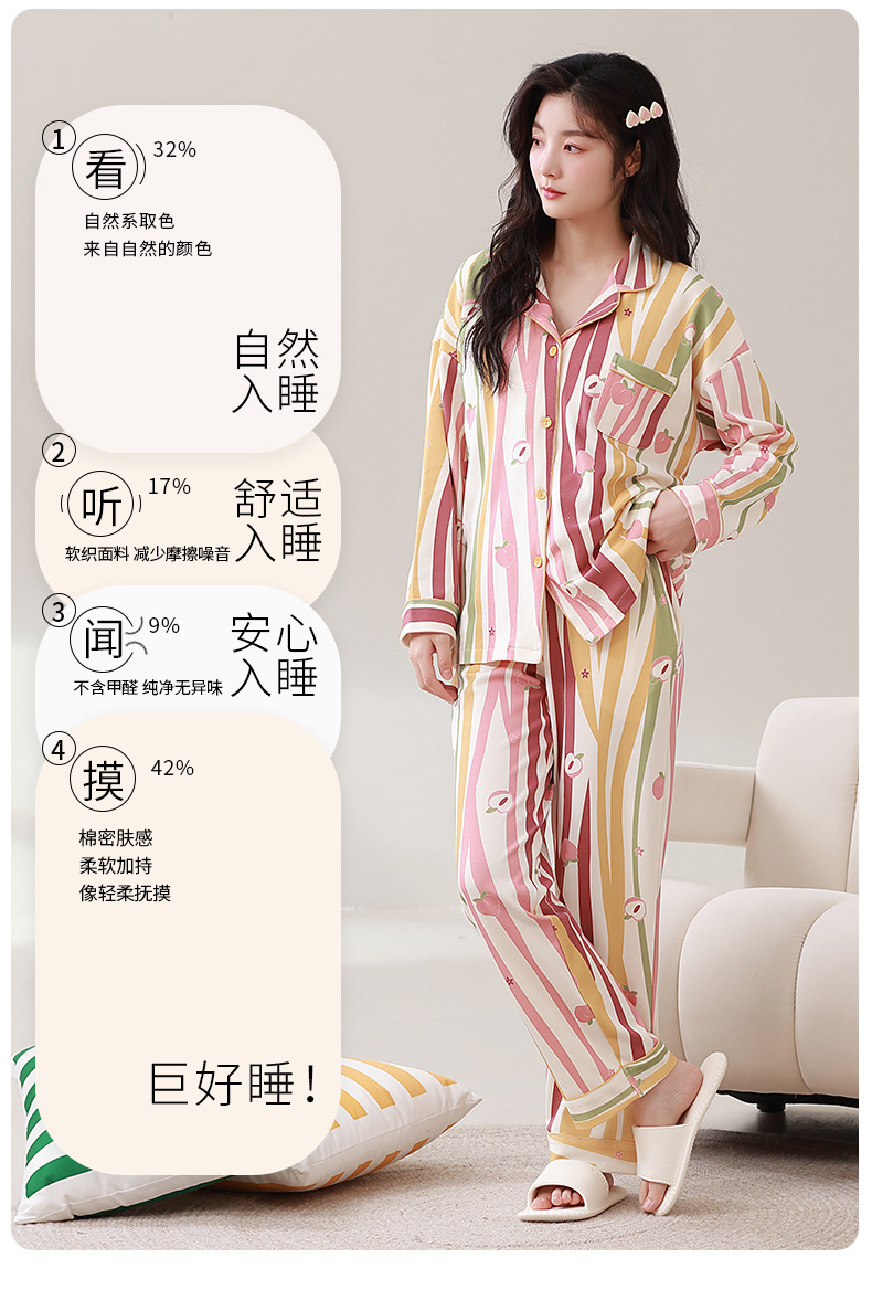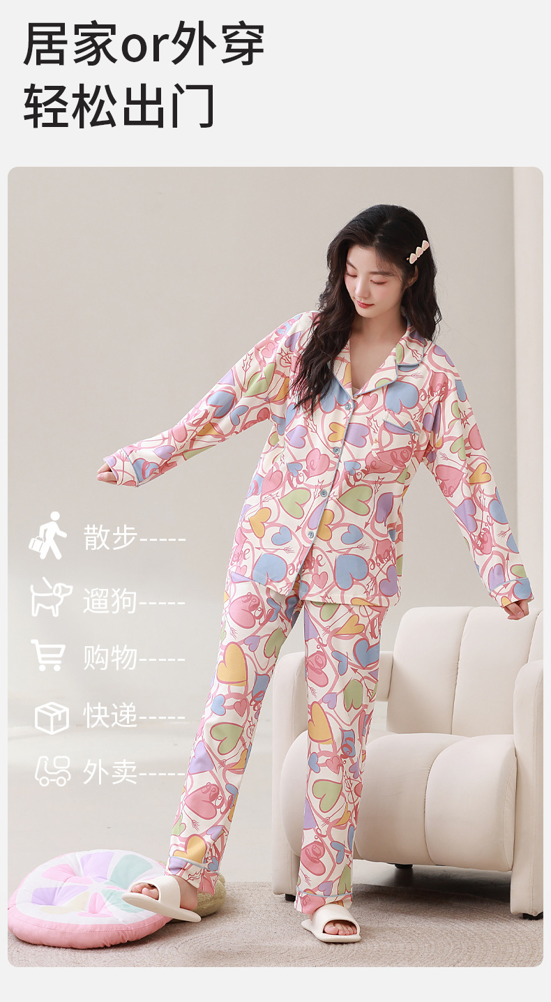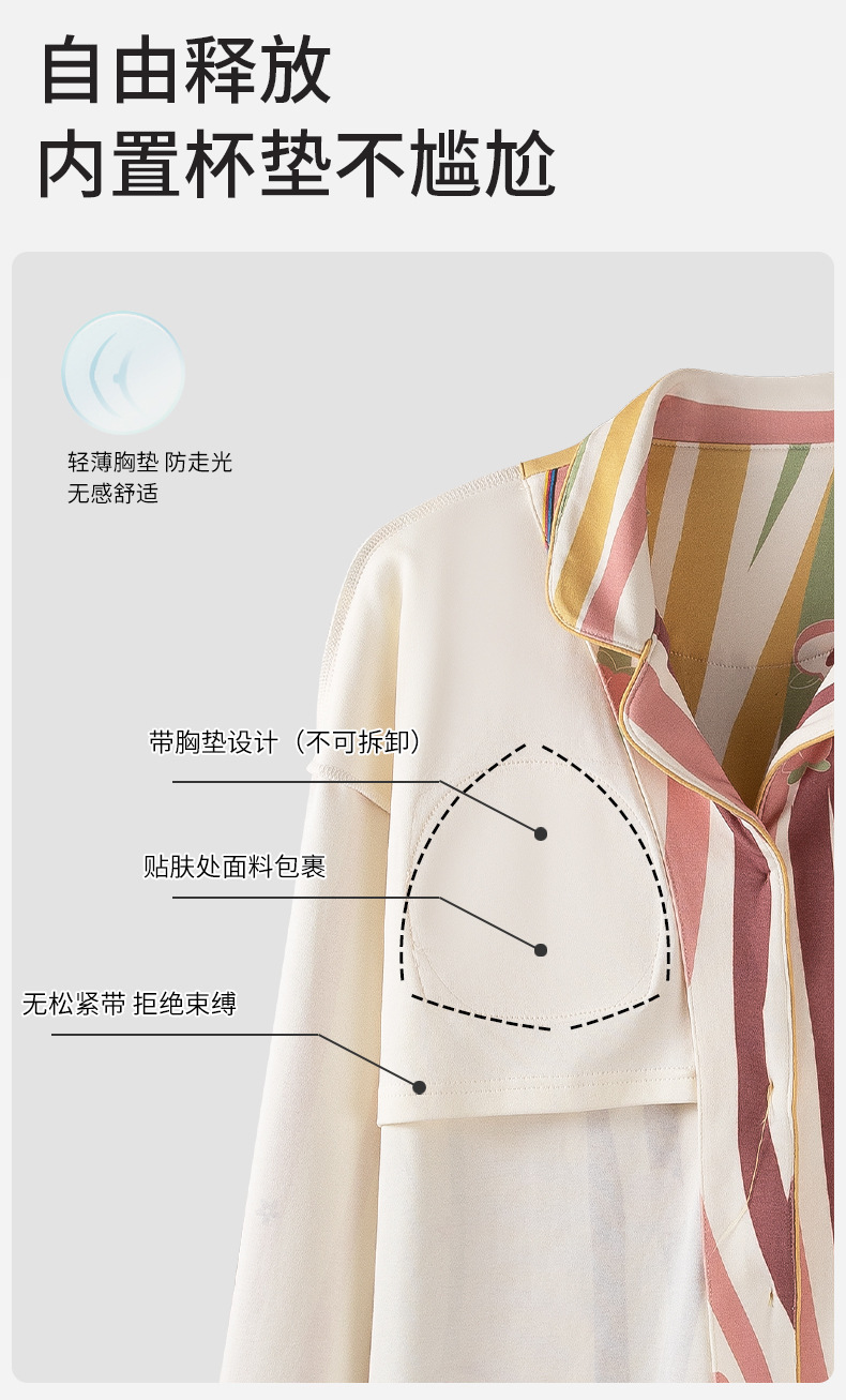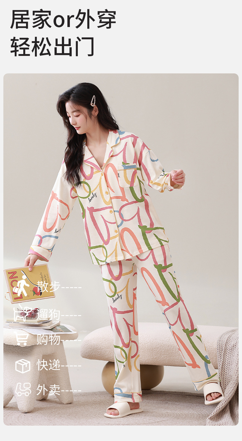 带胸垫一体纯棉睡衣女春秋季长袖开衫前扣全棉大码家居服套装秋冬
