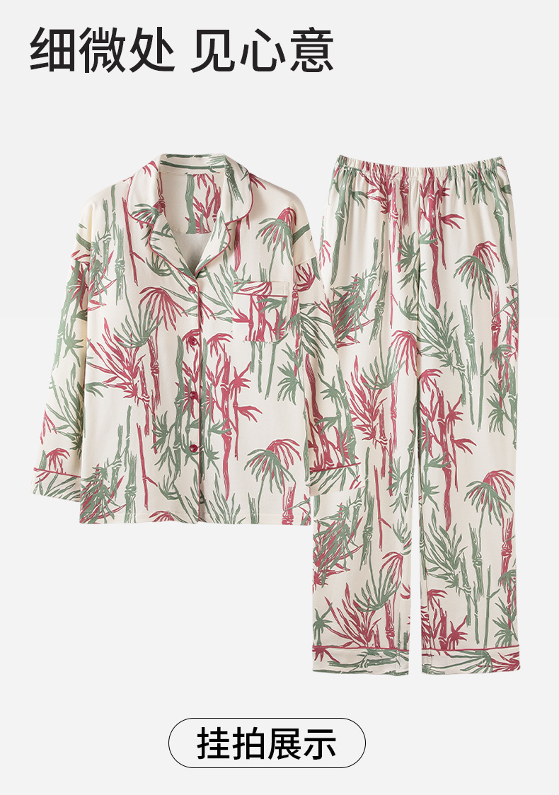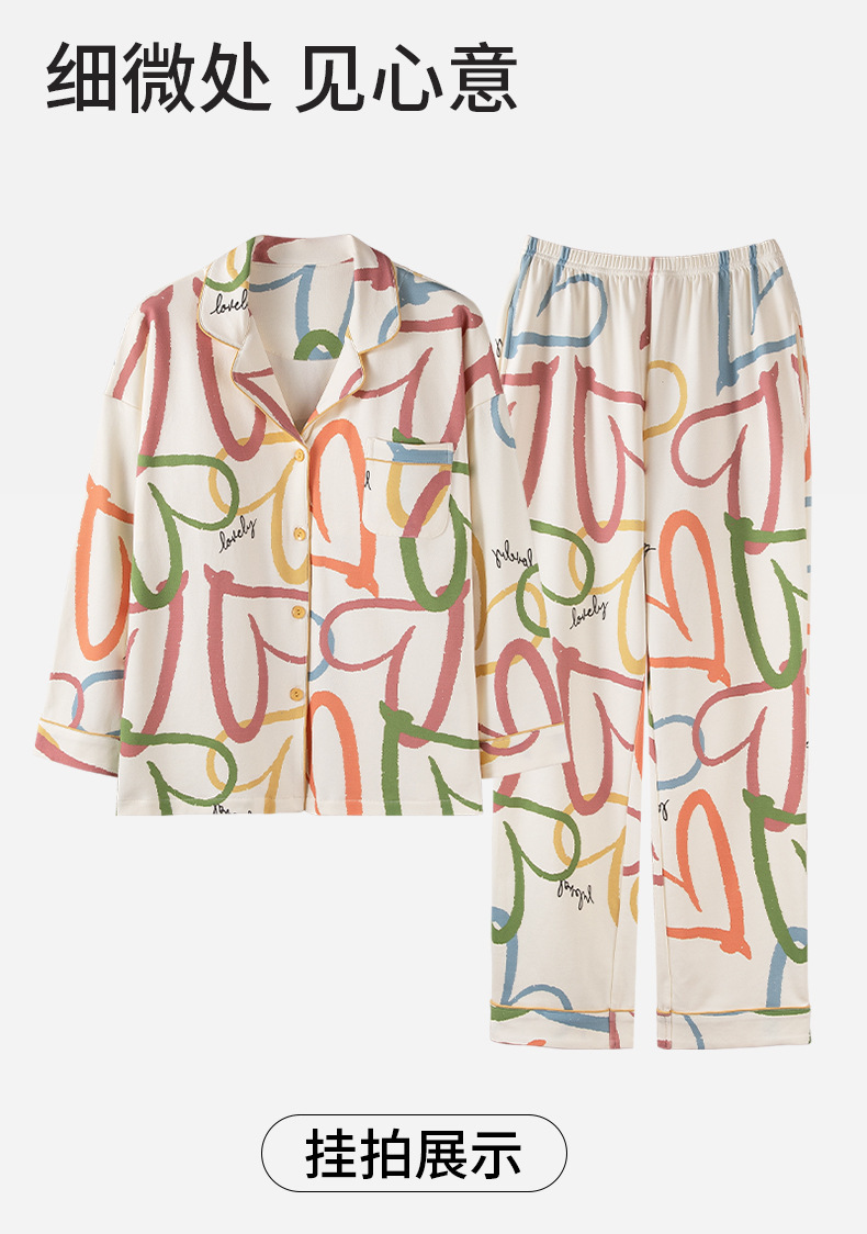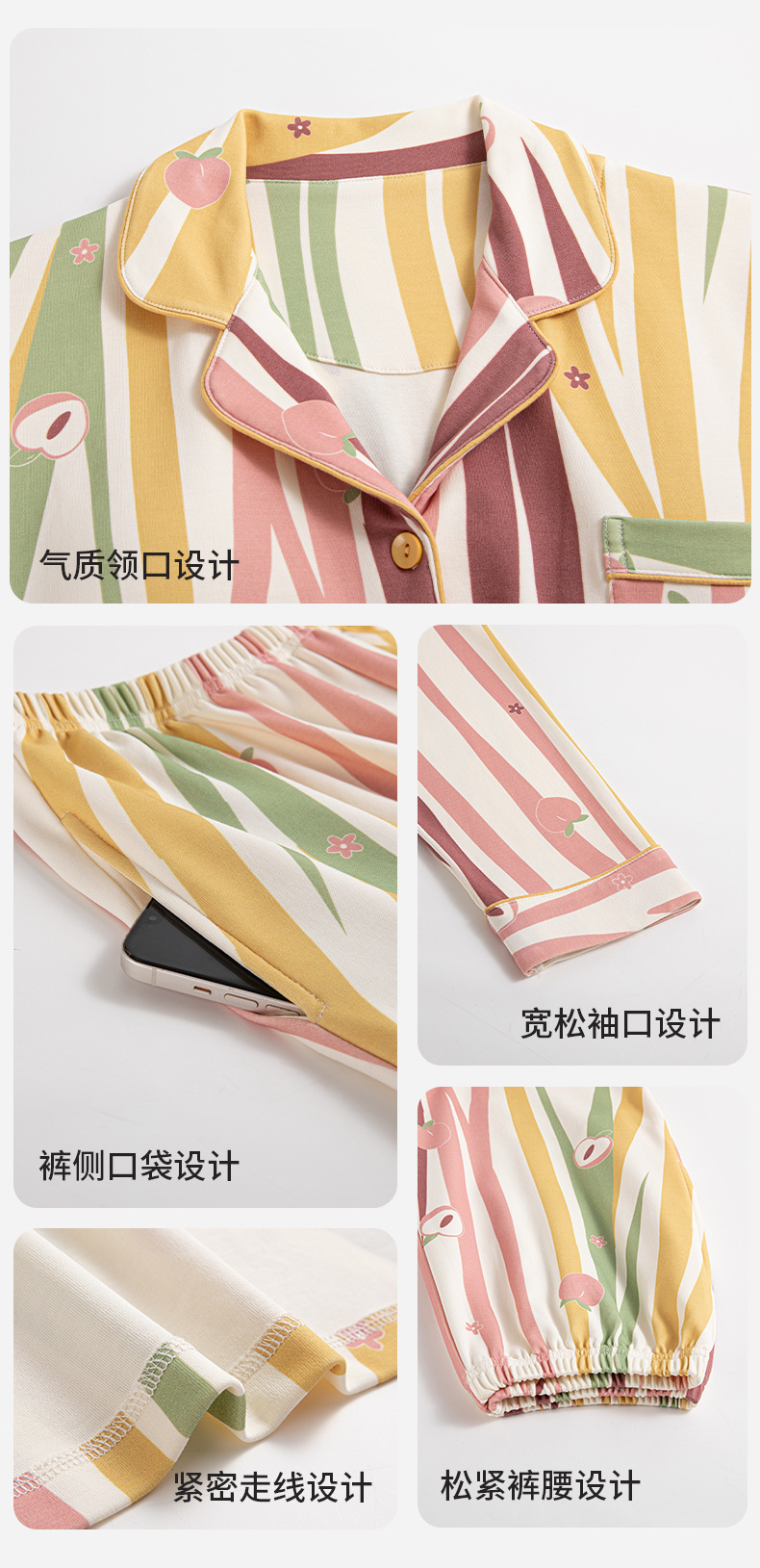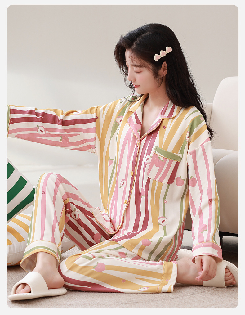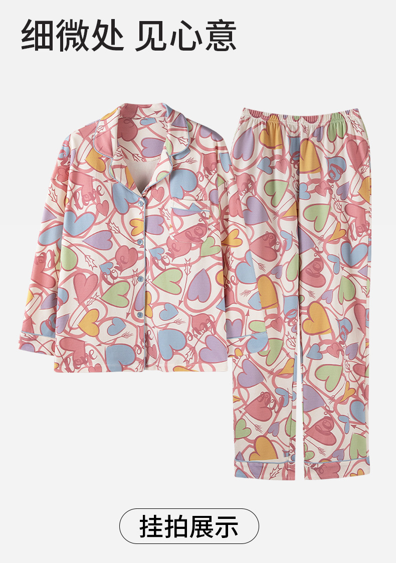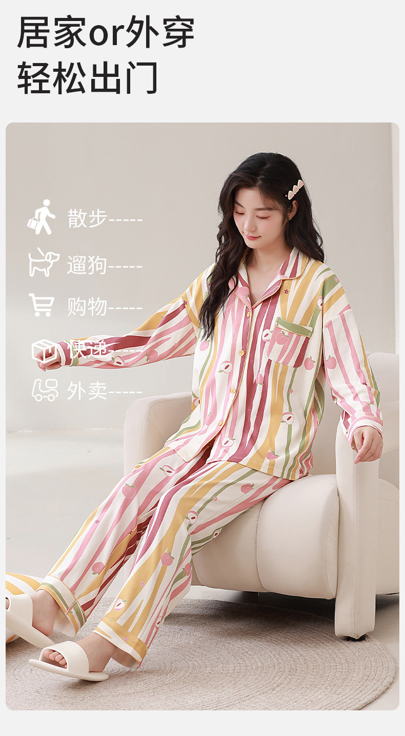 带胸垫一体纯棉睡衣女春秋季长袖开衫前扣全棉大码家居服套装秋冬