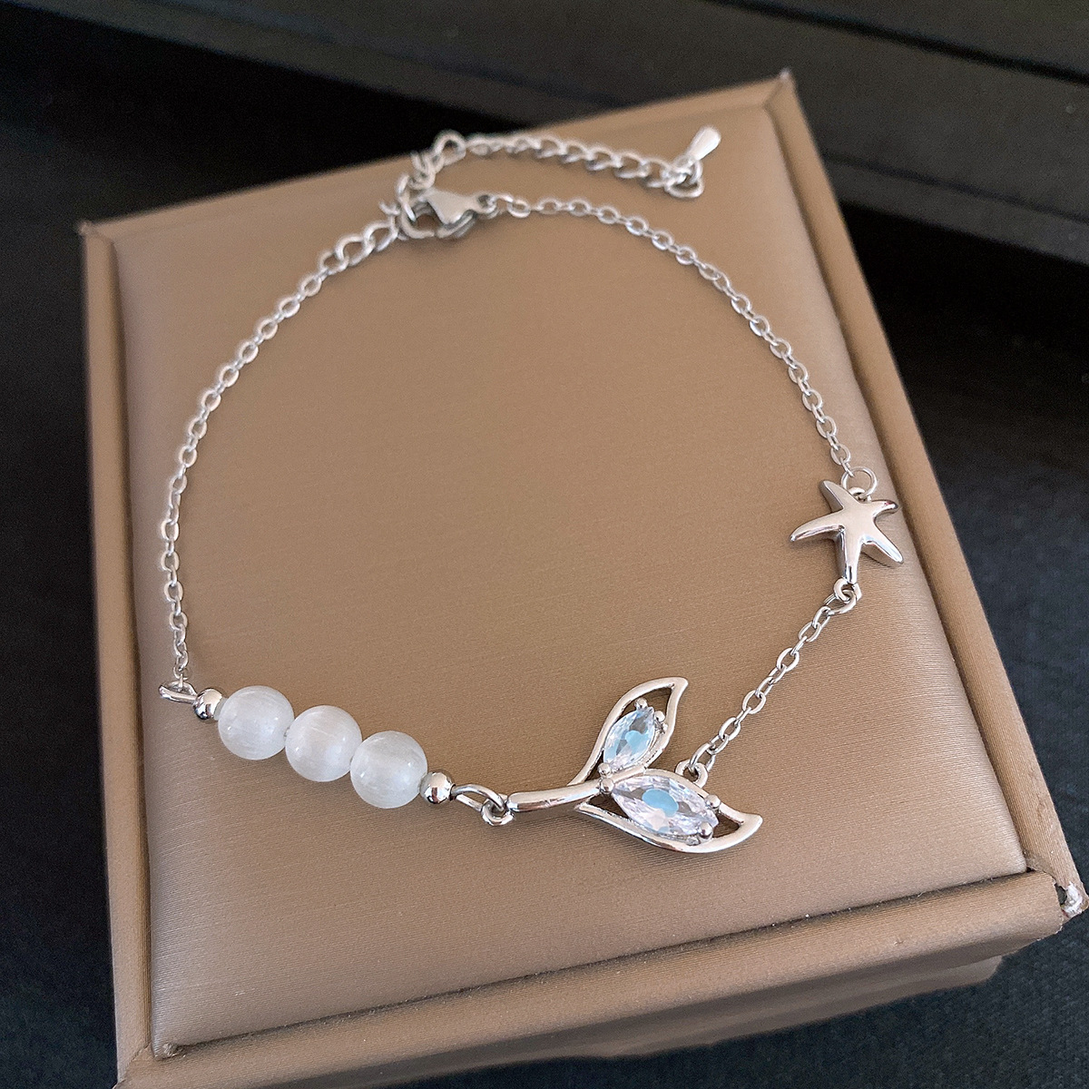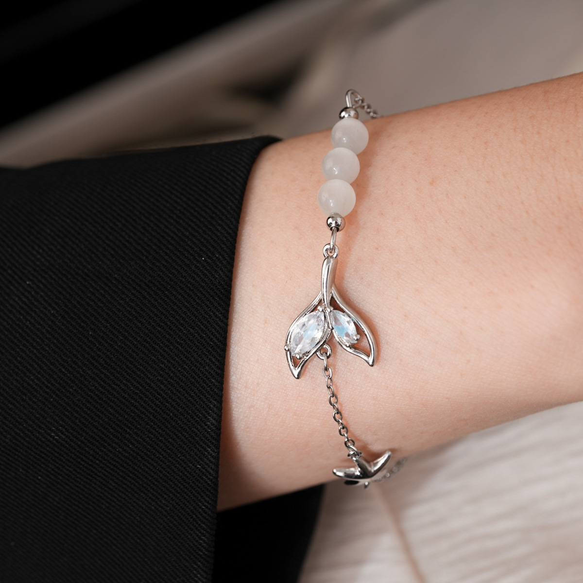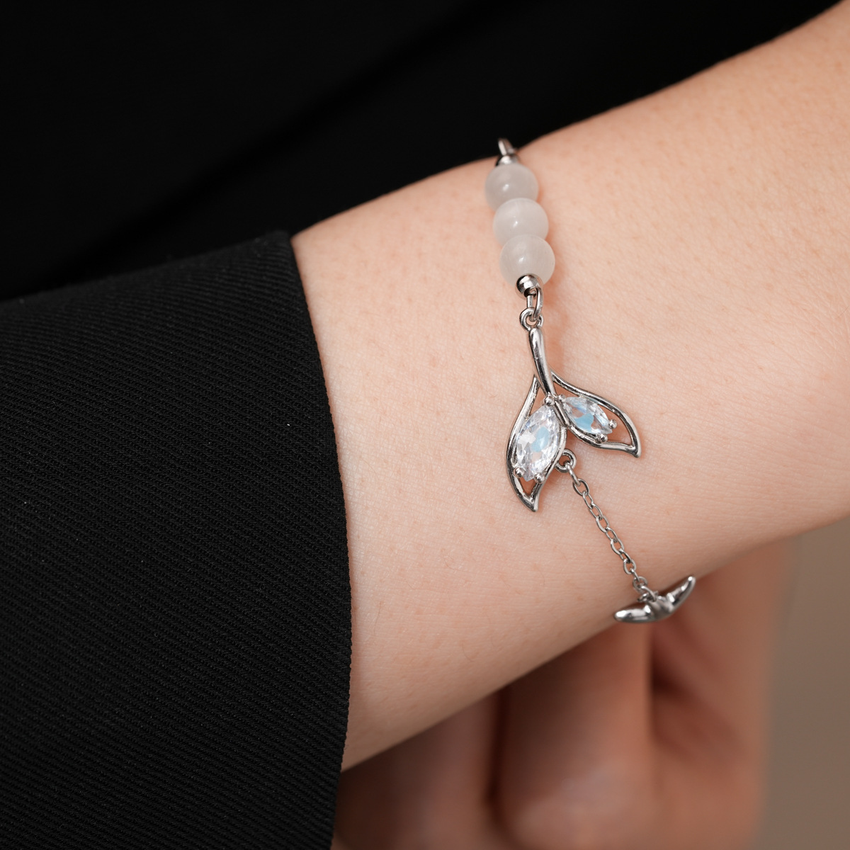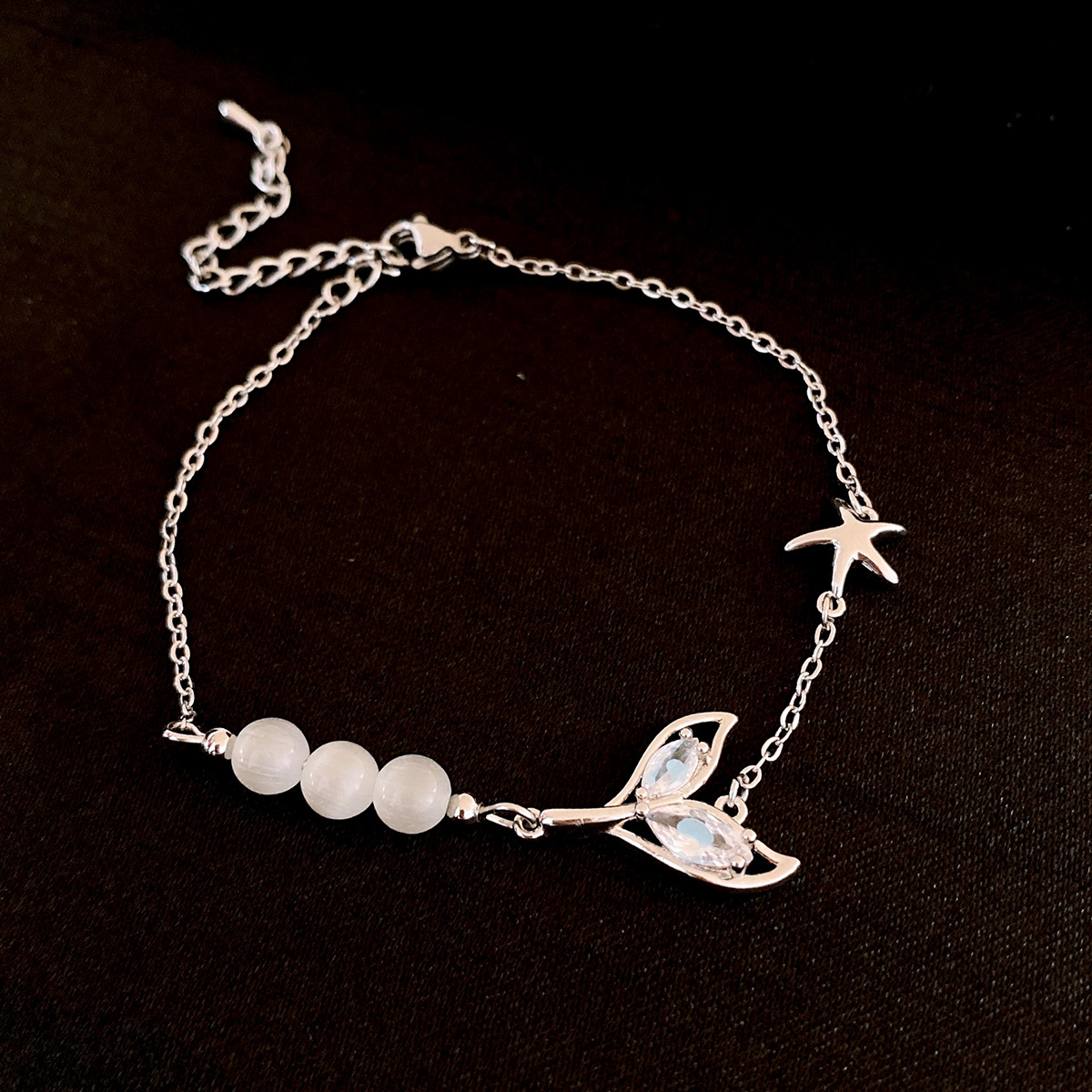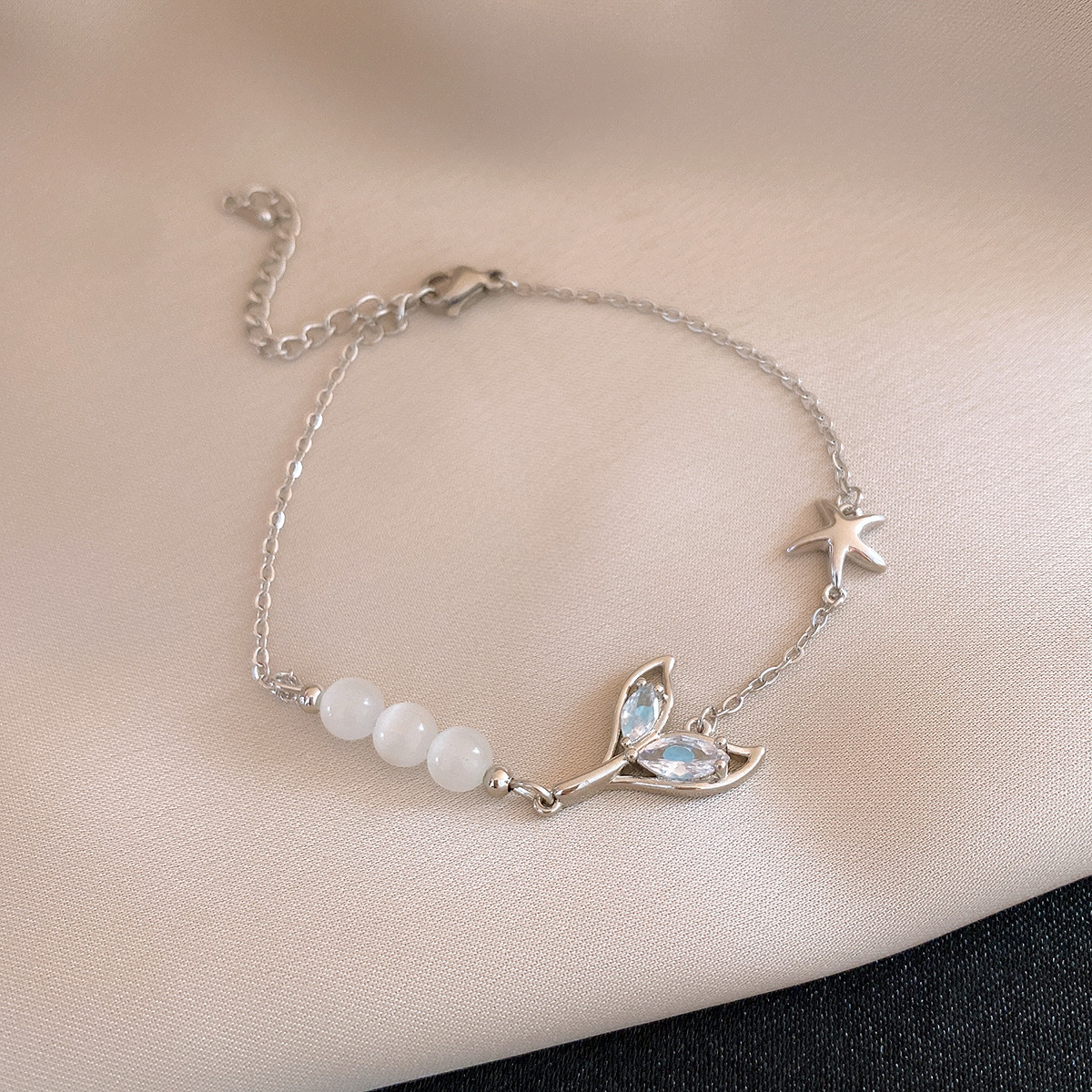 清新甜美玻璃串珠鱼尾吊坠手链轻奢高级感手串精致设计感小众手饰