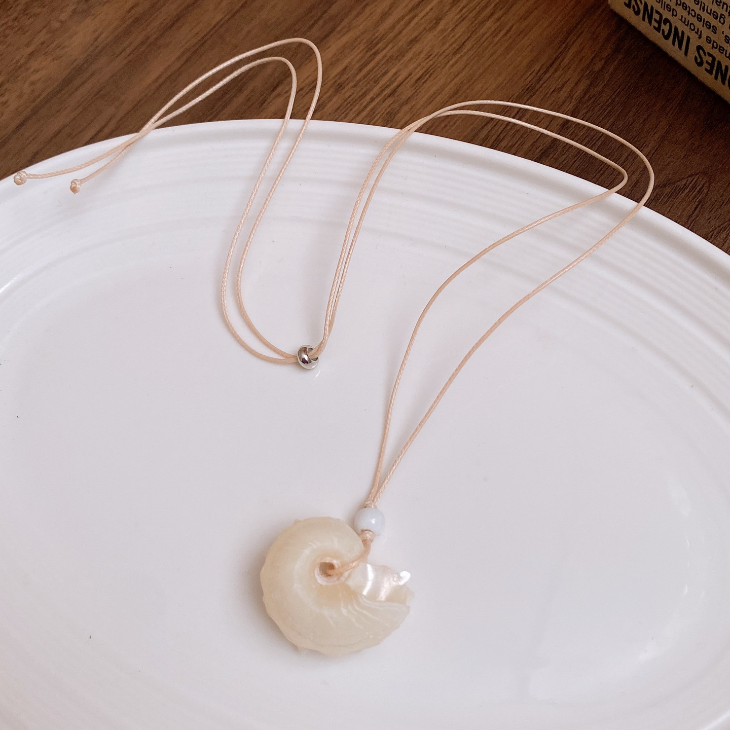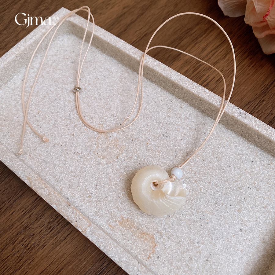 度假风蜡绳贝壳海螺抽拉式项链小众设计锁骨链时尚通勤百搭项饰女