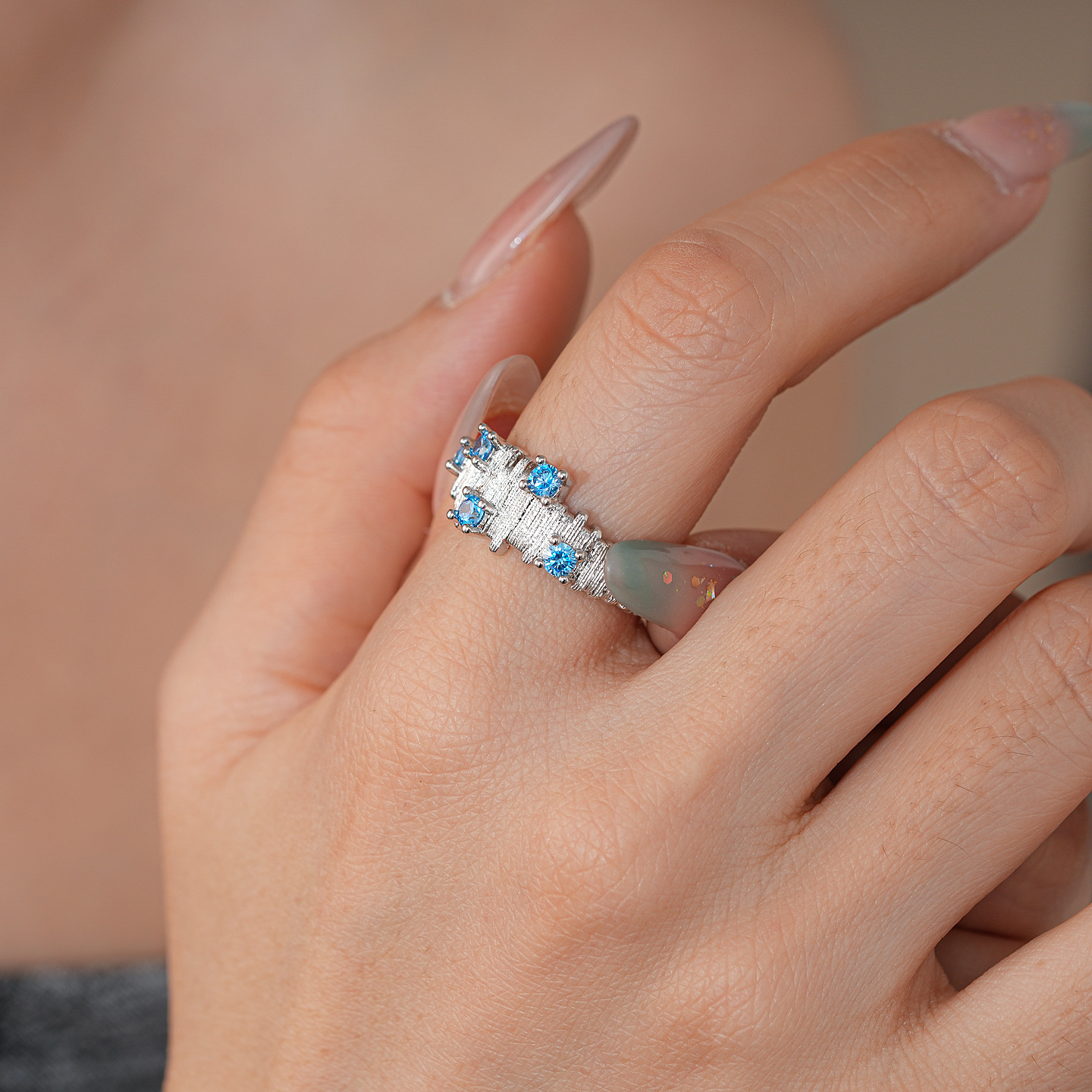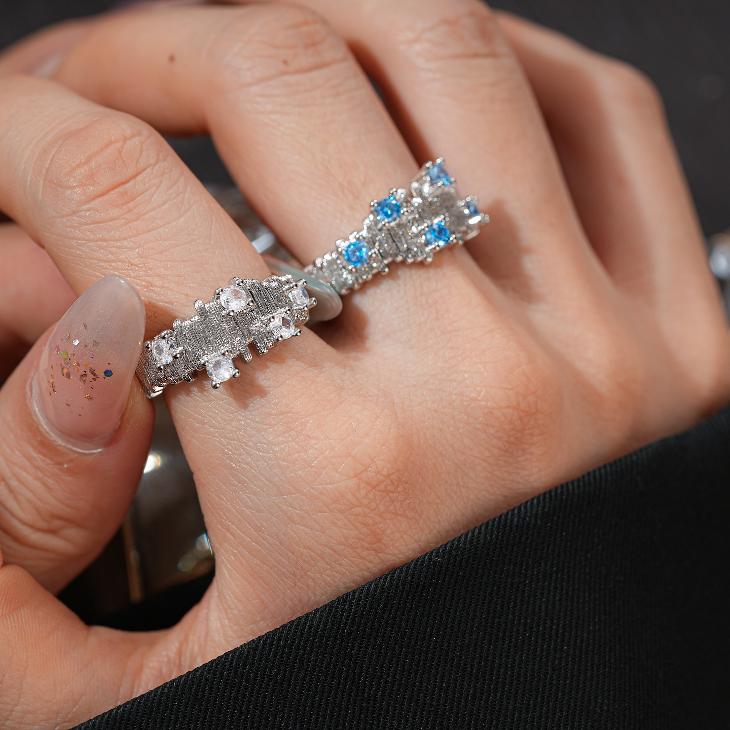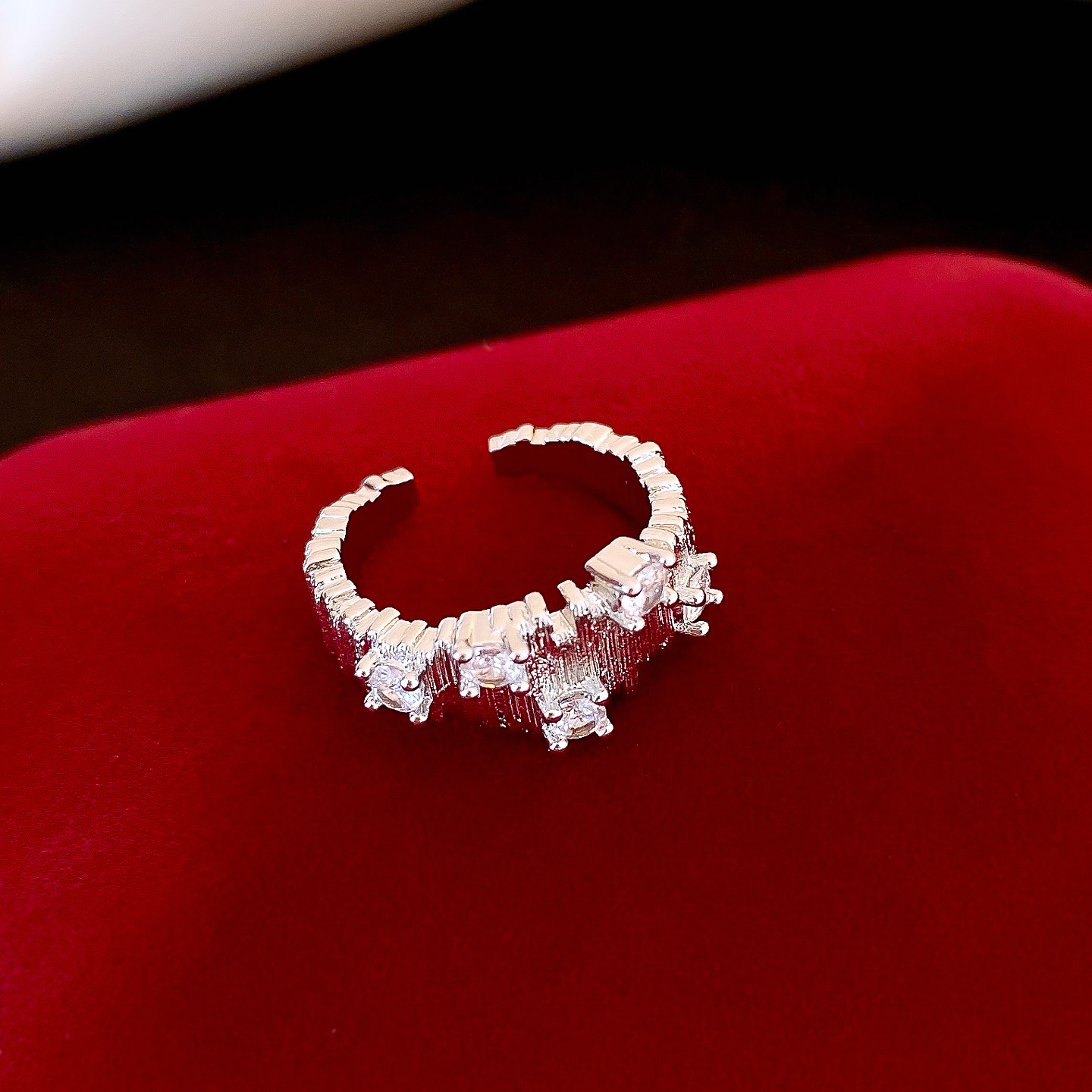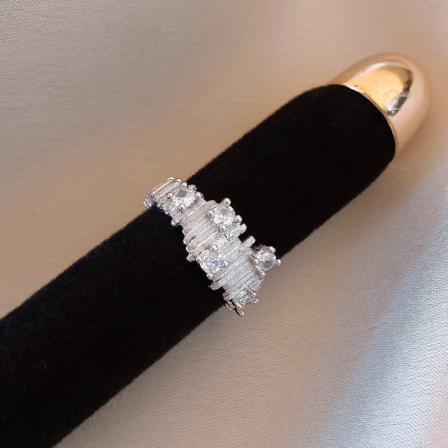 欧美夸张不规则纹路锆石开口戒指轻奢高级感食指戒设计感小众手饰
