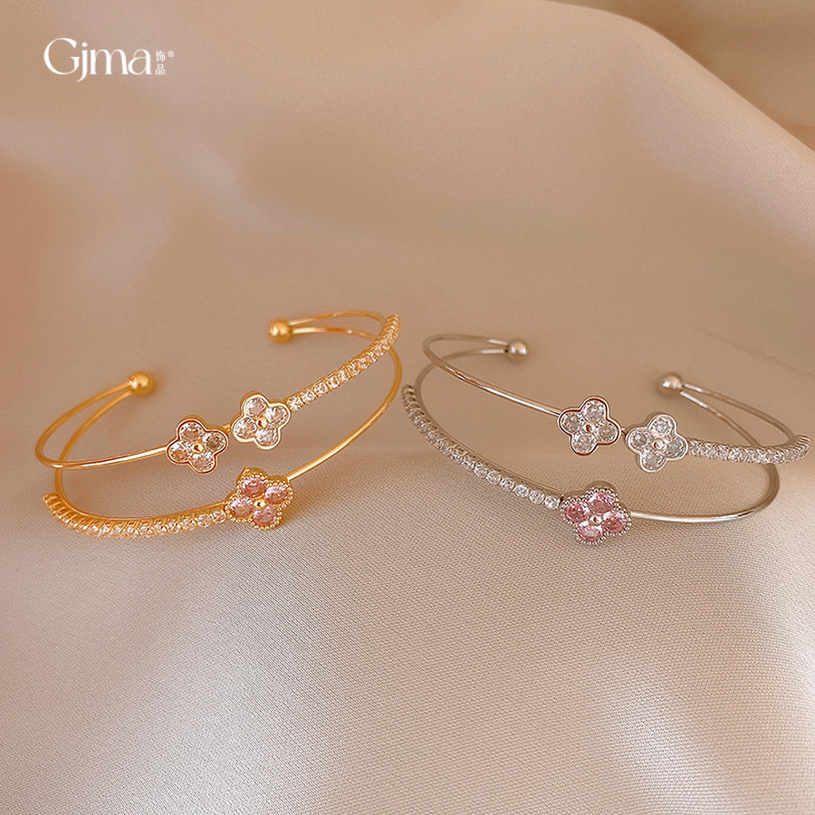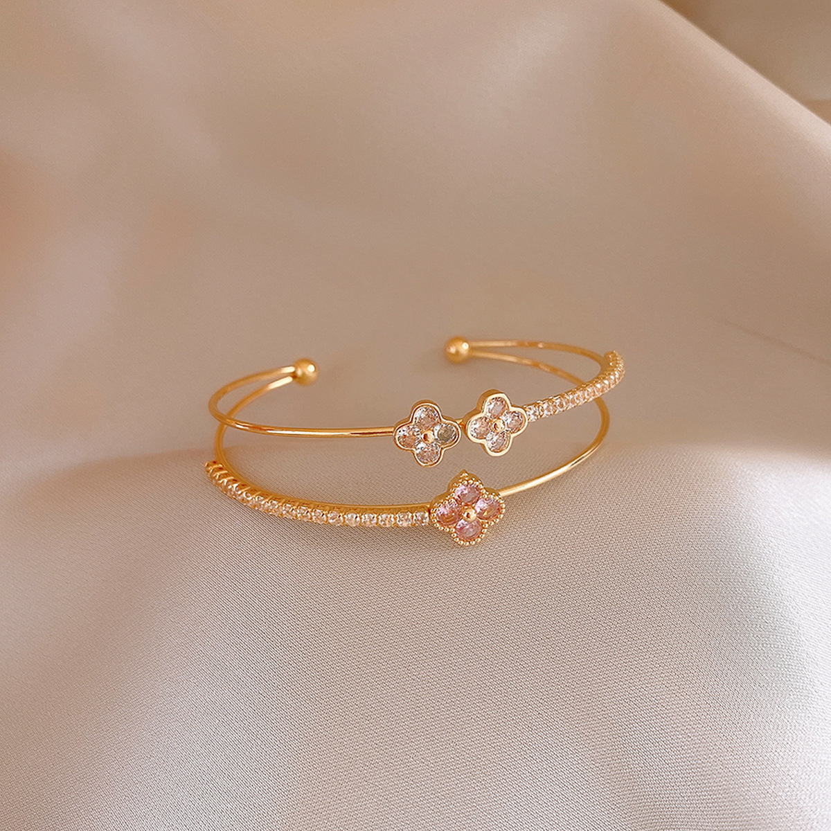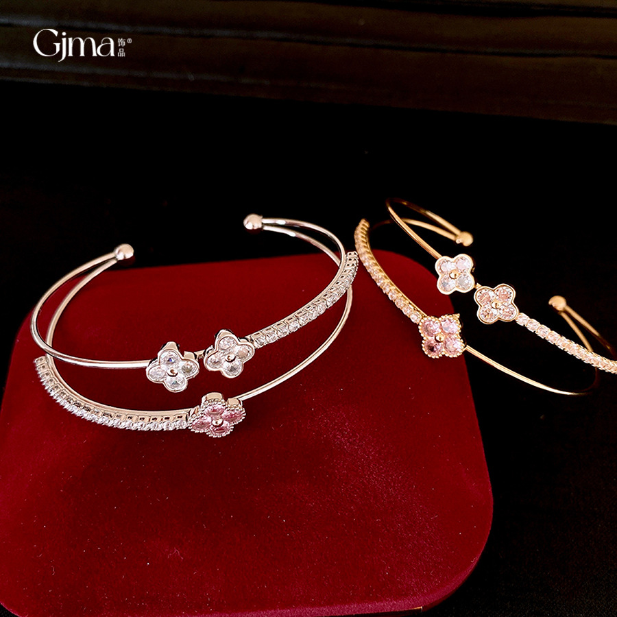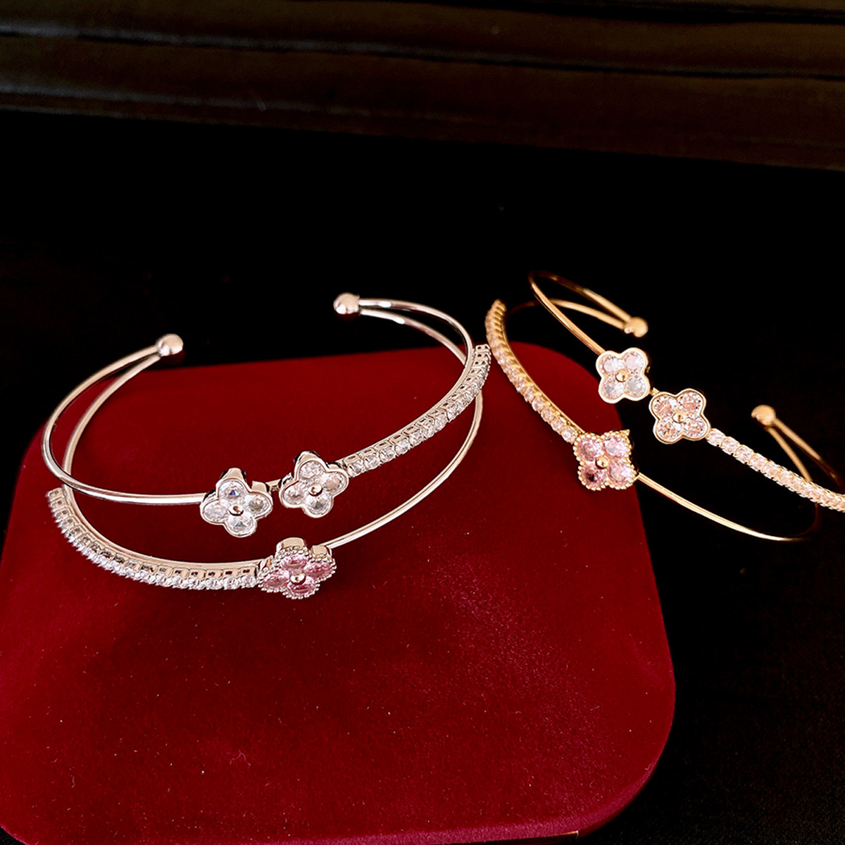 south korea zircon double-layer flowers openings bracelet fashionable exquisite bracelet light luxury high-grade bracelet design sense niche