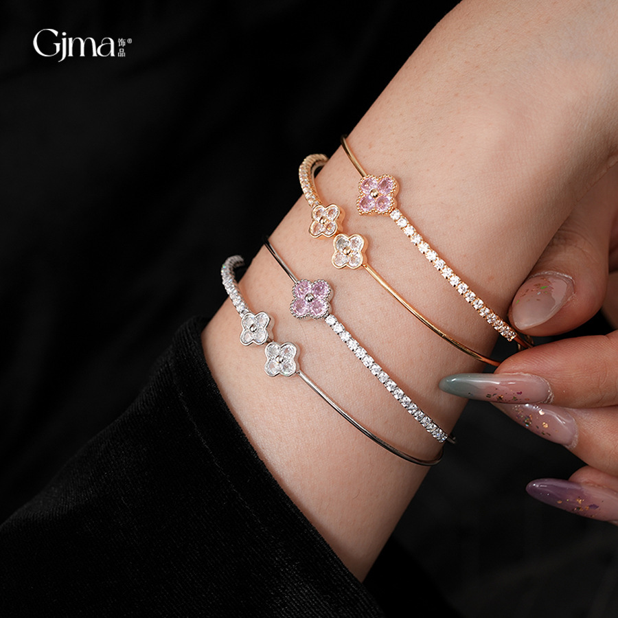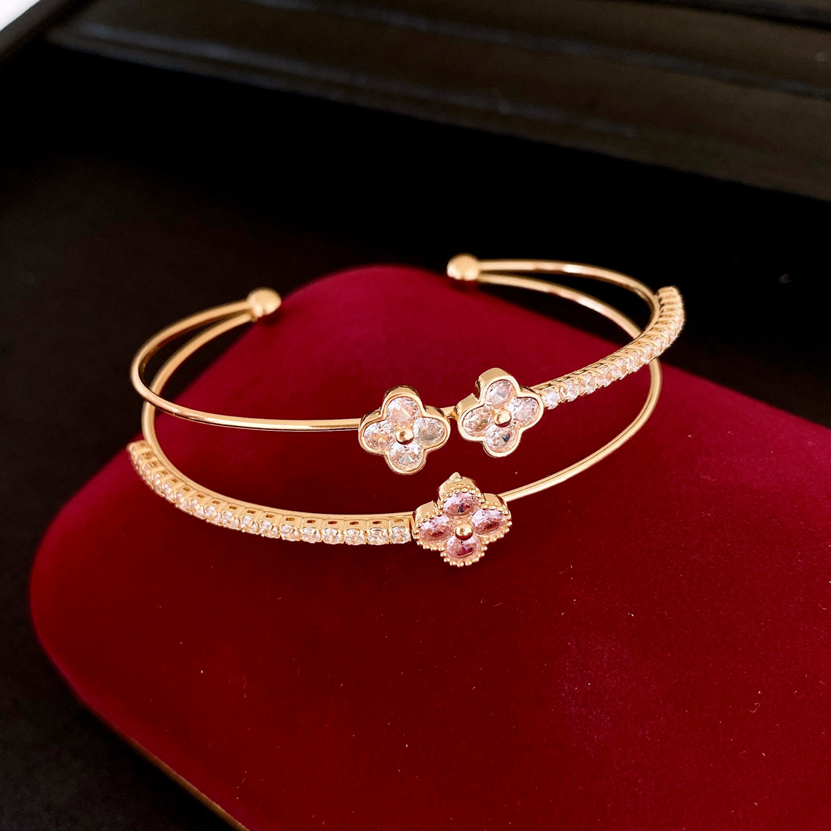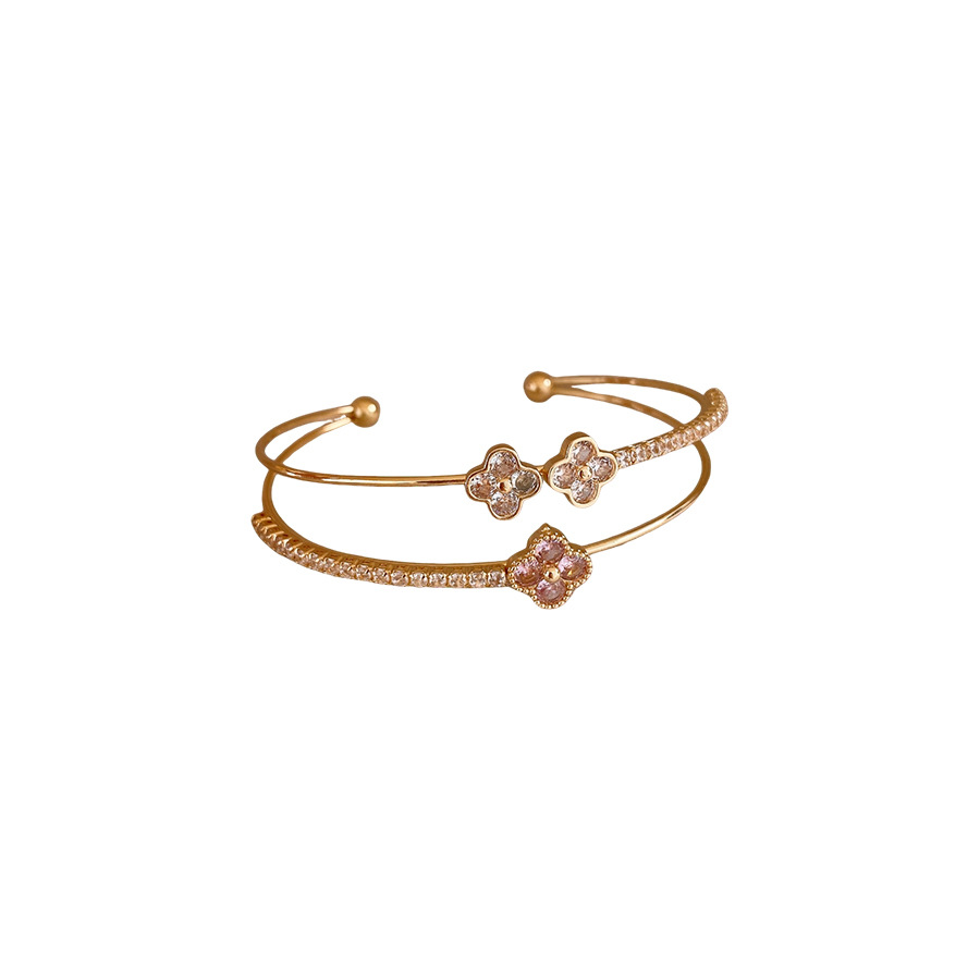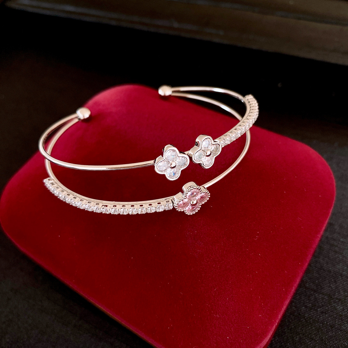 south korea zircon double-layer flowers openings bracelet fashionable exquisite bracelet light luxury high-grade bracelet design sense niche