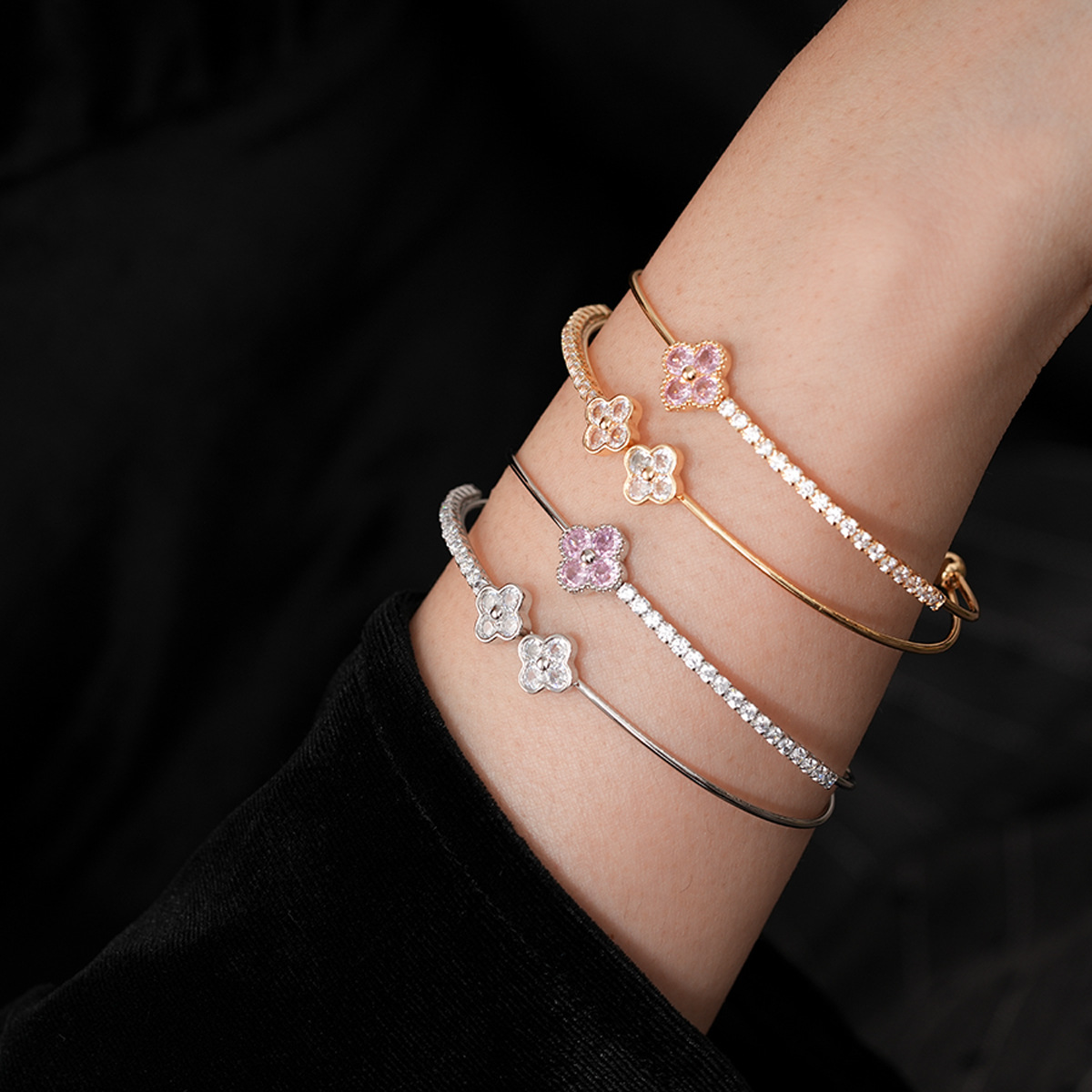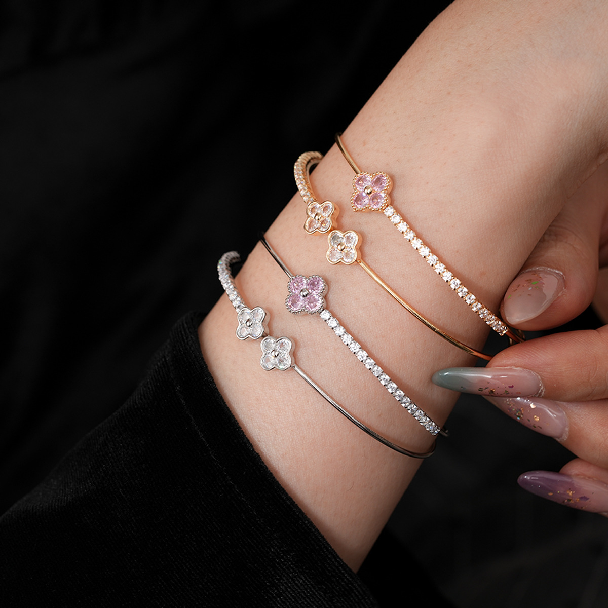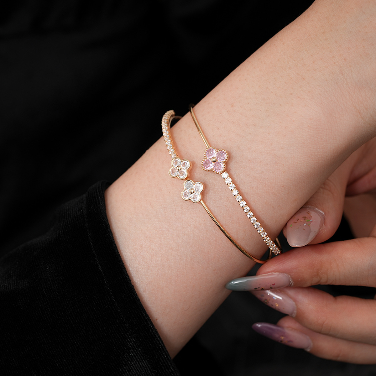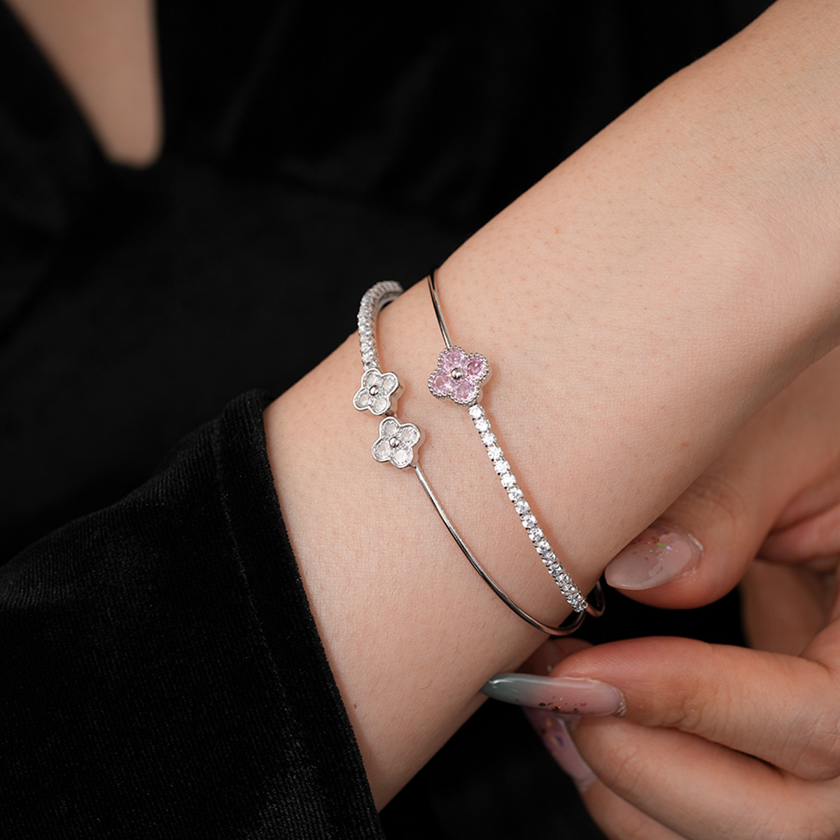 south korea zircon double-layer flowers openings bracelet fashionable exquisite bracelet light luxury high-grade bracelet design sense niche