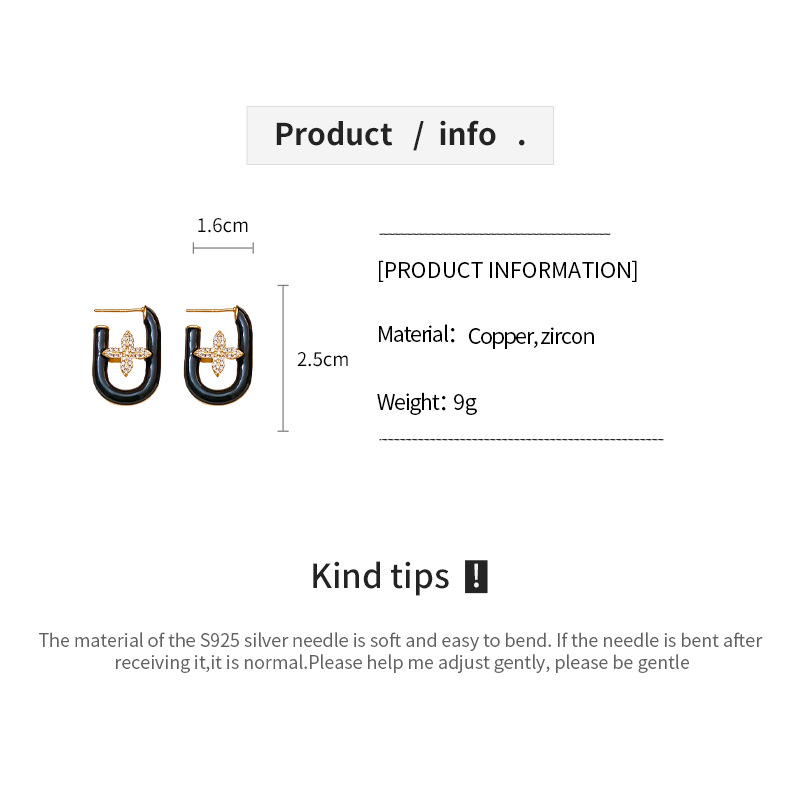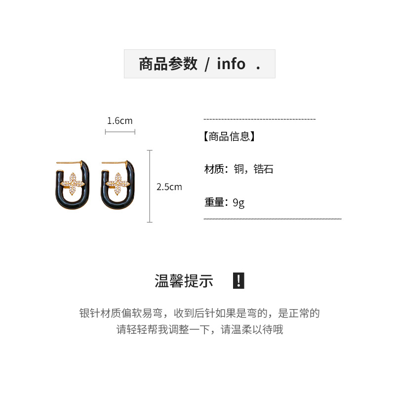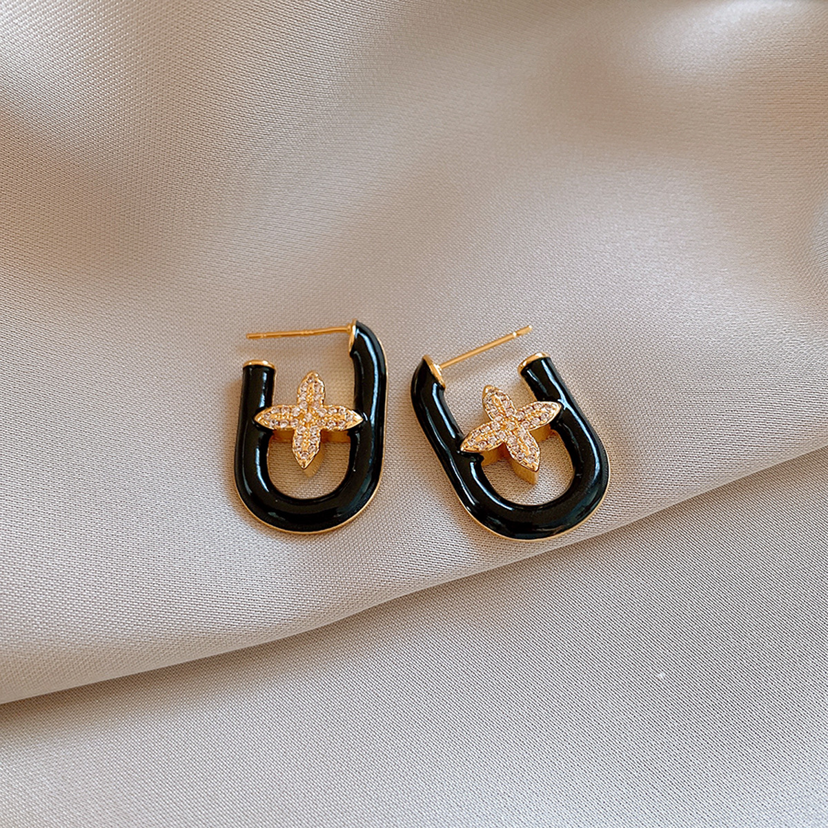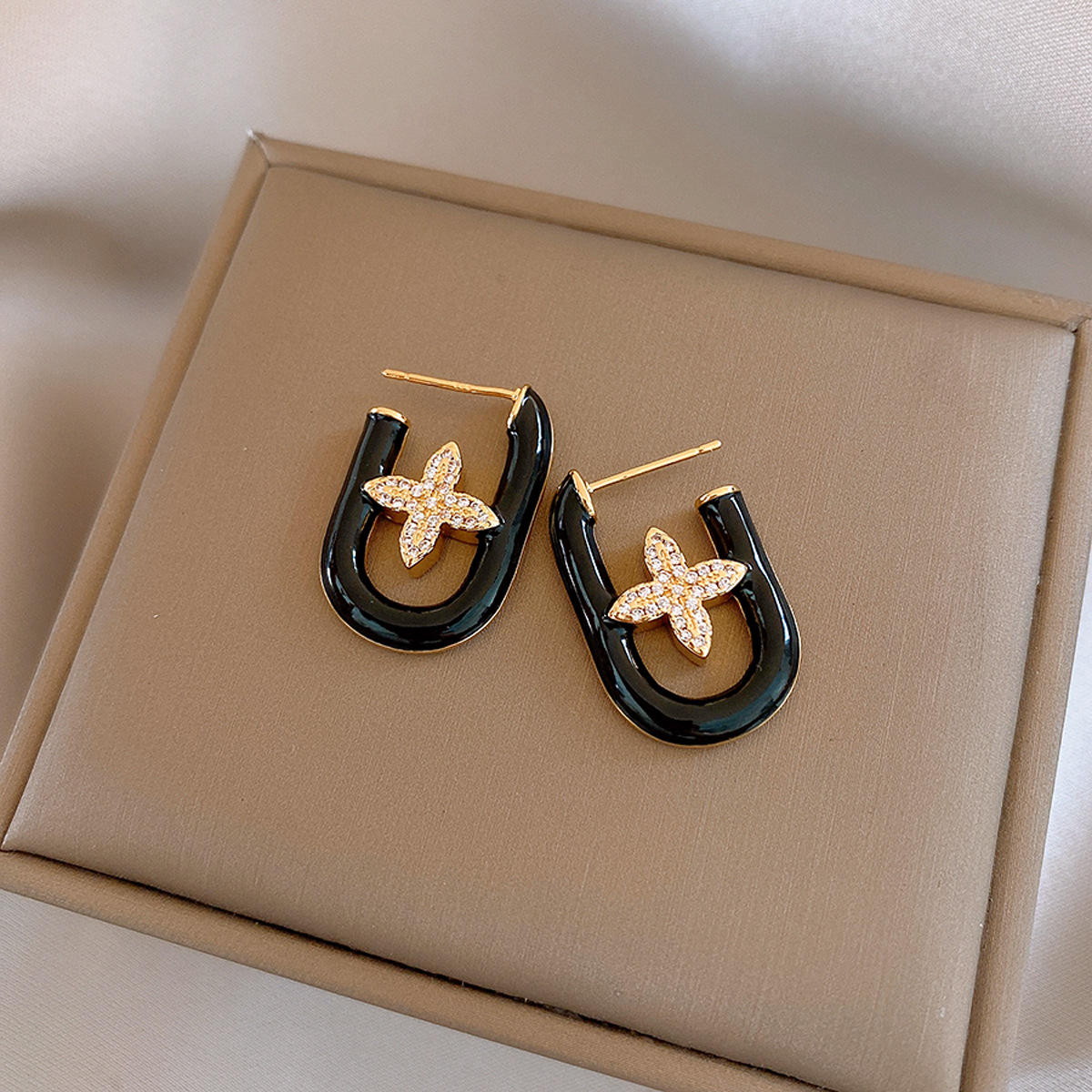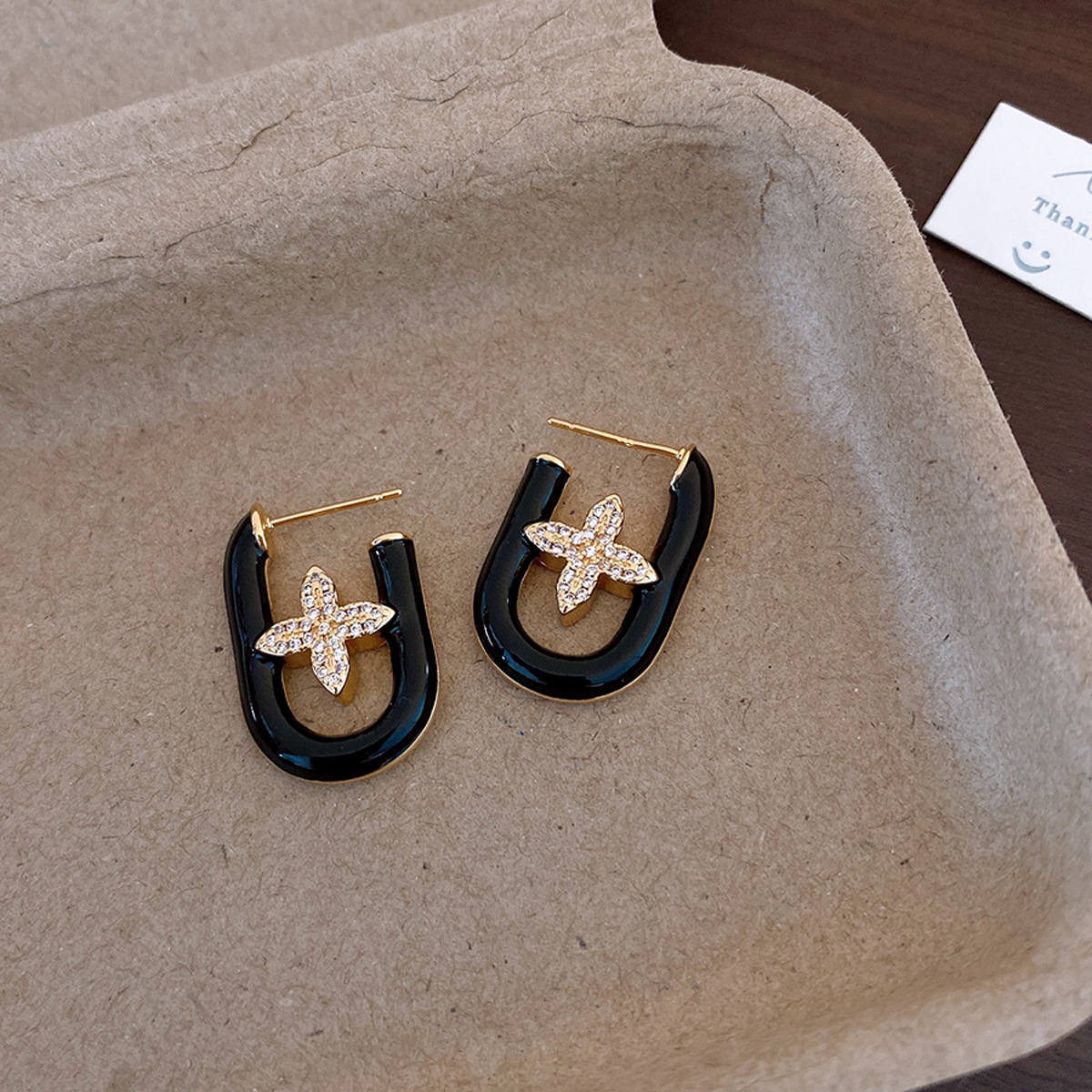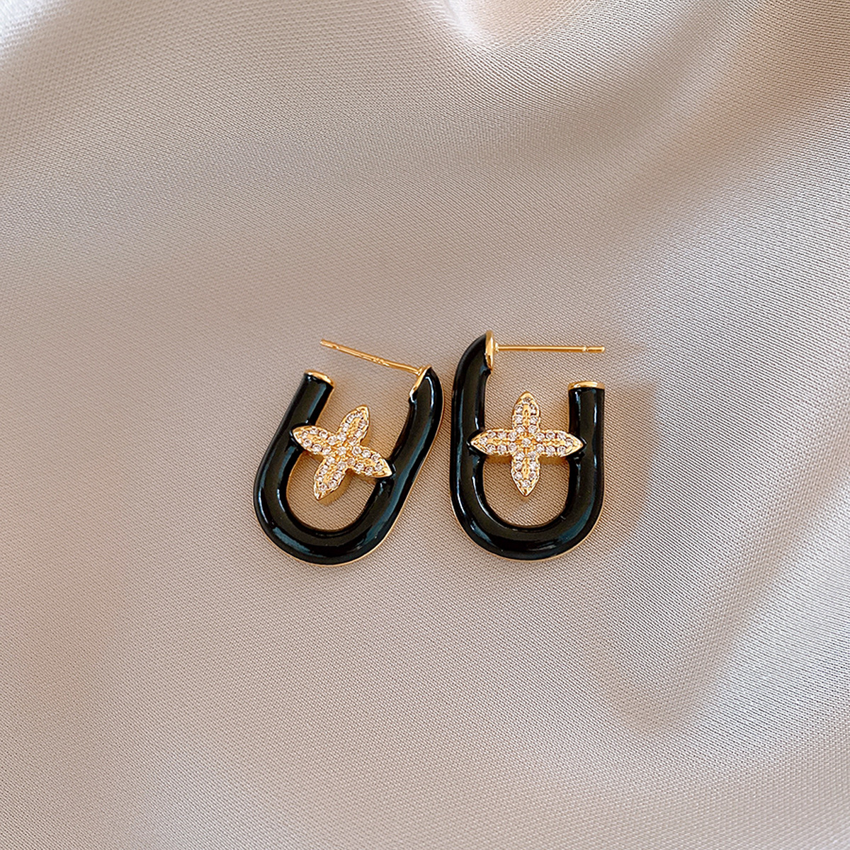 银针法式复古U形锆石花朵耳环轻奢高级感耳钉时尚设计感小众耳饰