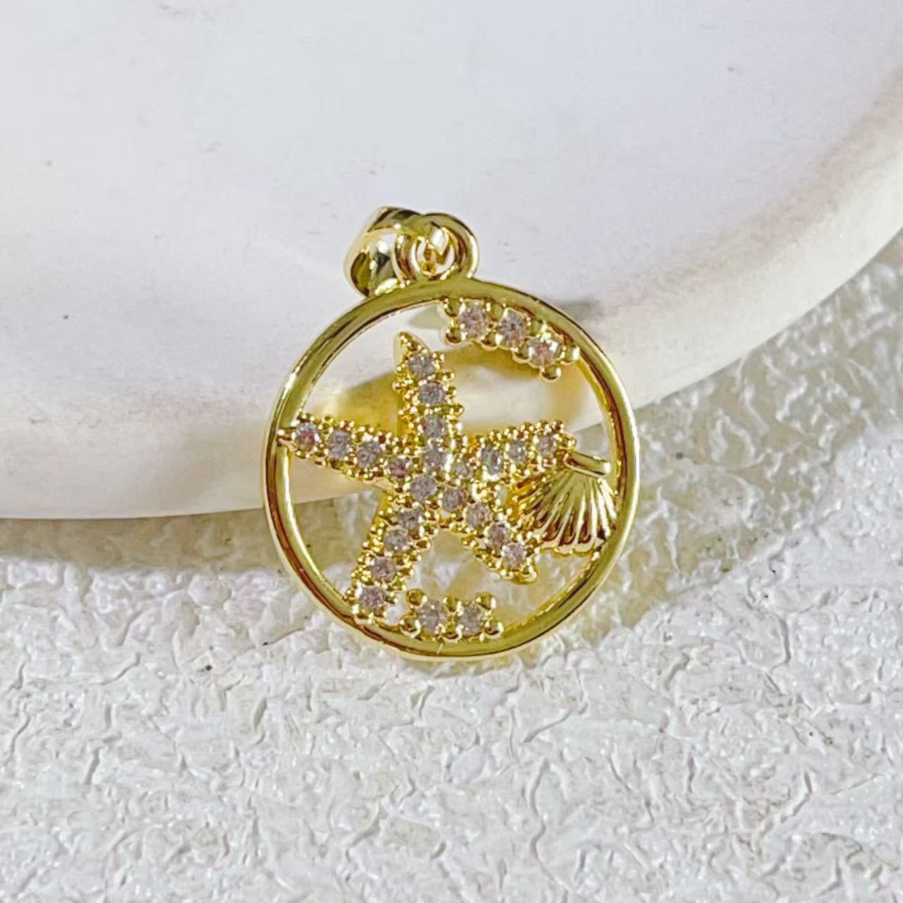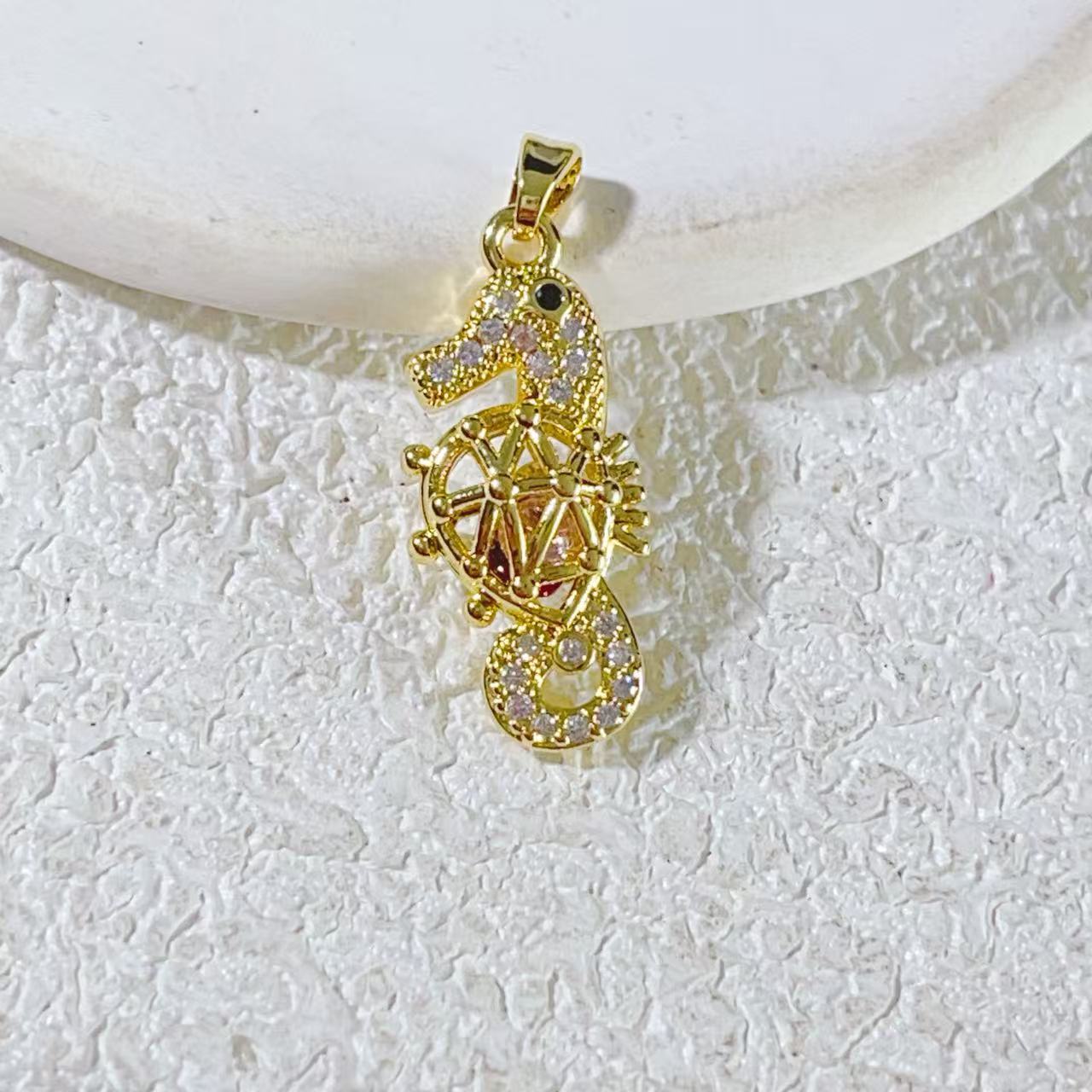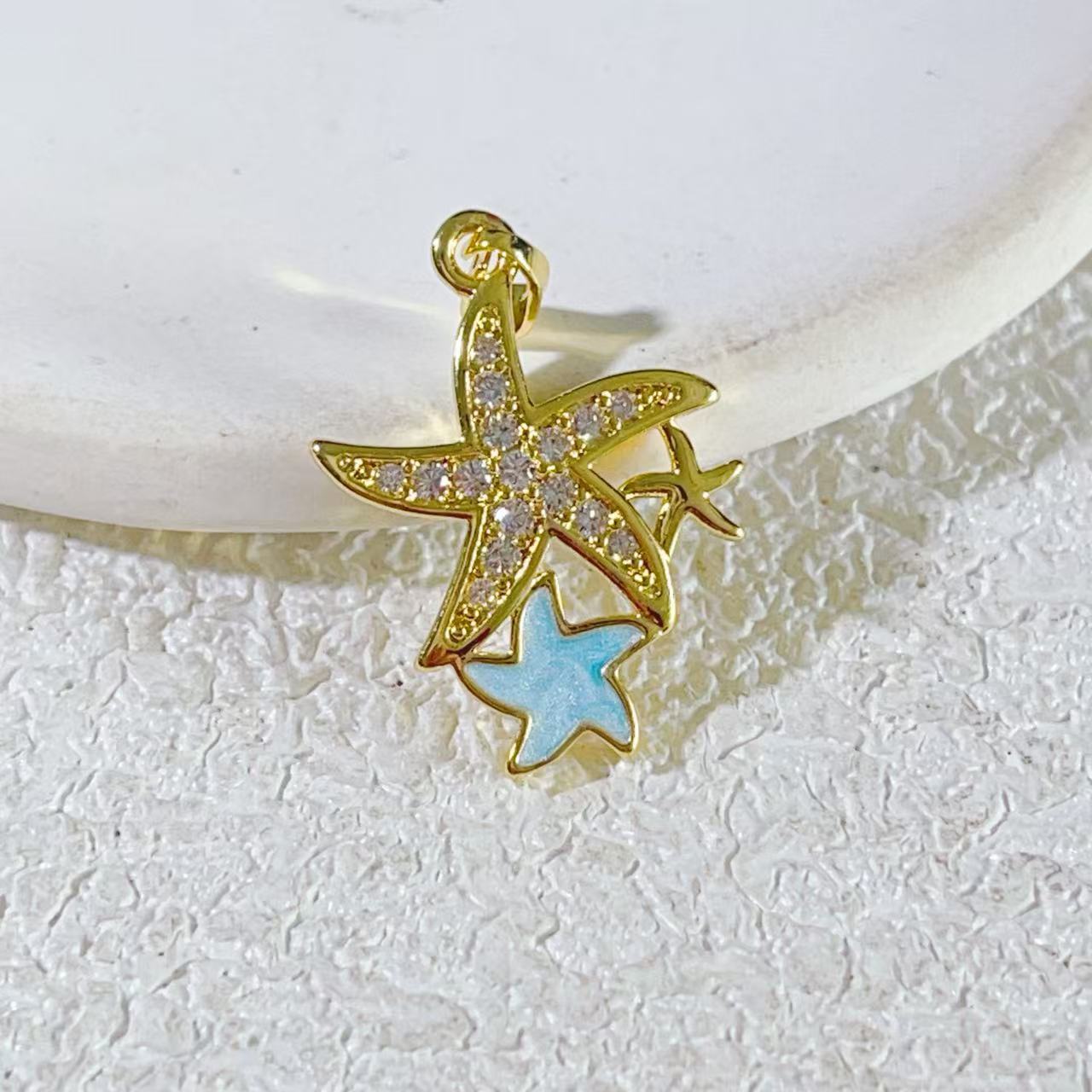 热销新款海洋系列海马鱼尾海星海螺铜镀真金保色精致时尚小众吊坠