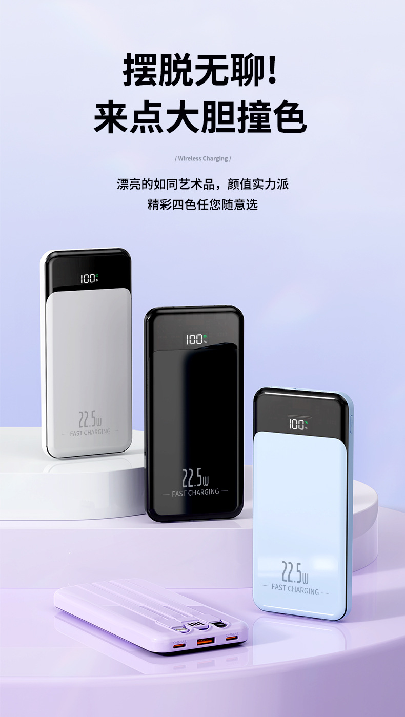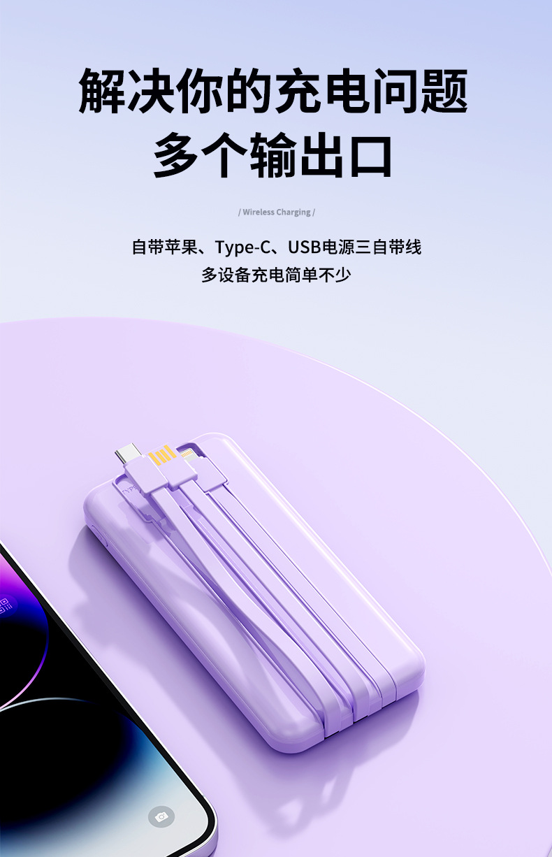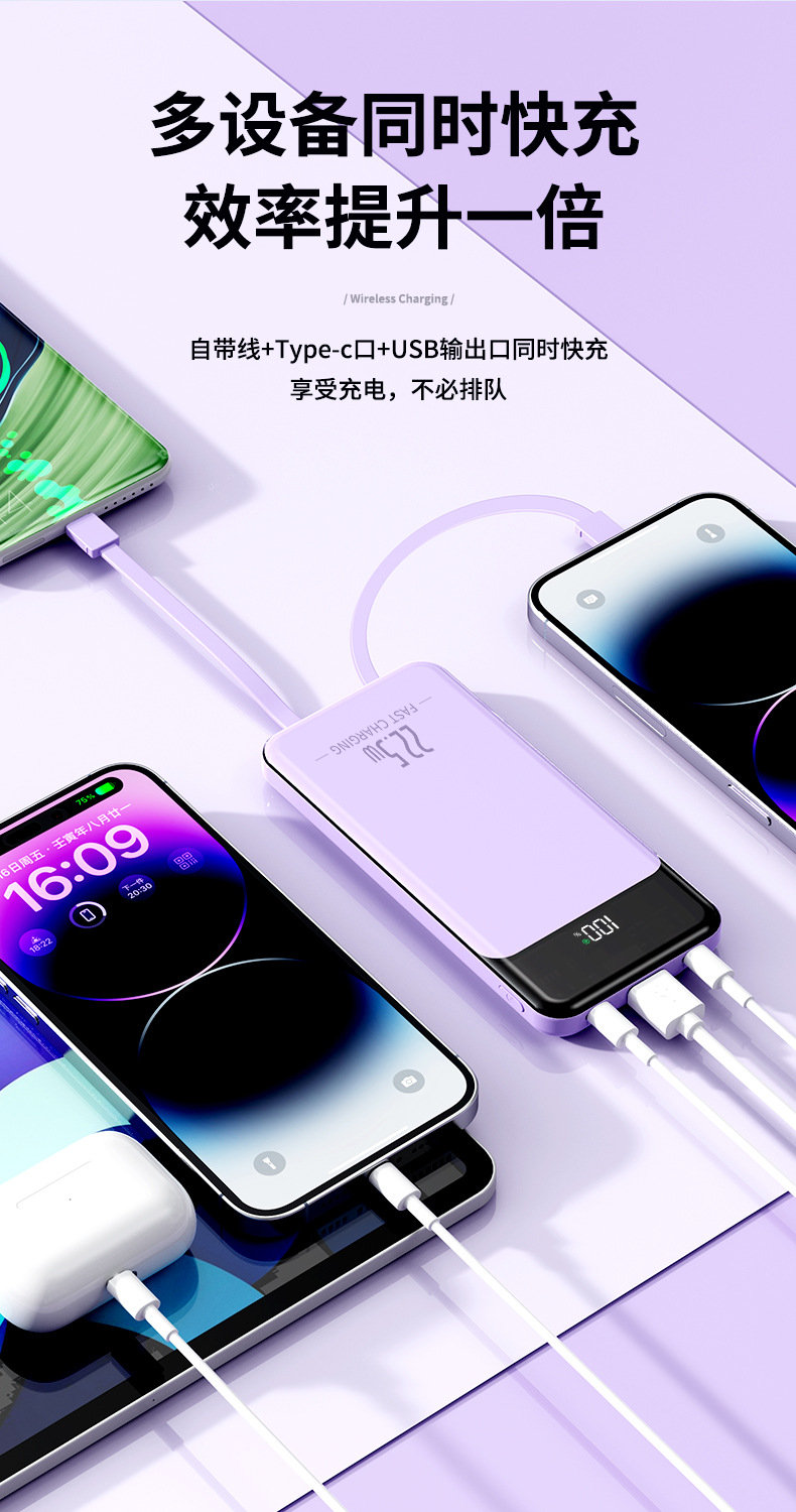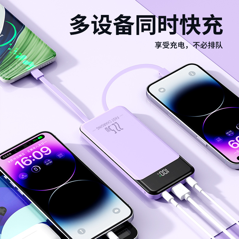 3C认证商务PD快充自带线充电宝10000毫安mah移动电源定l ogo图案