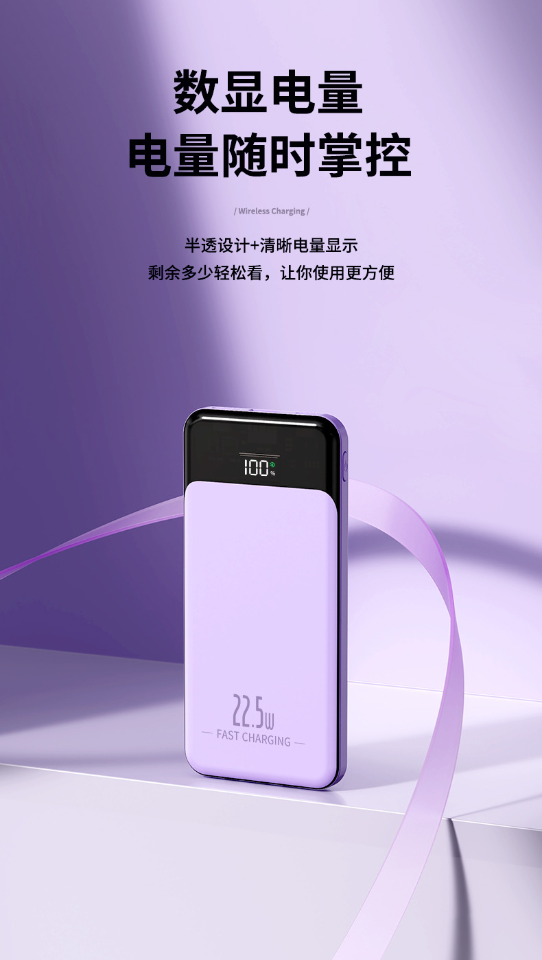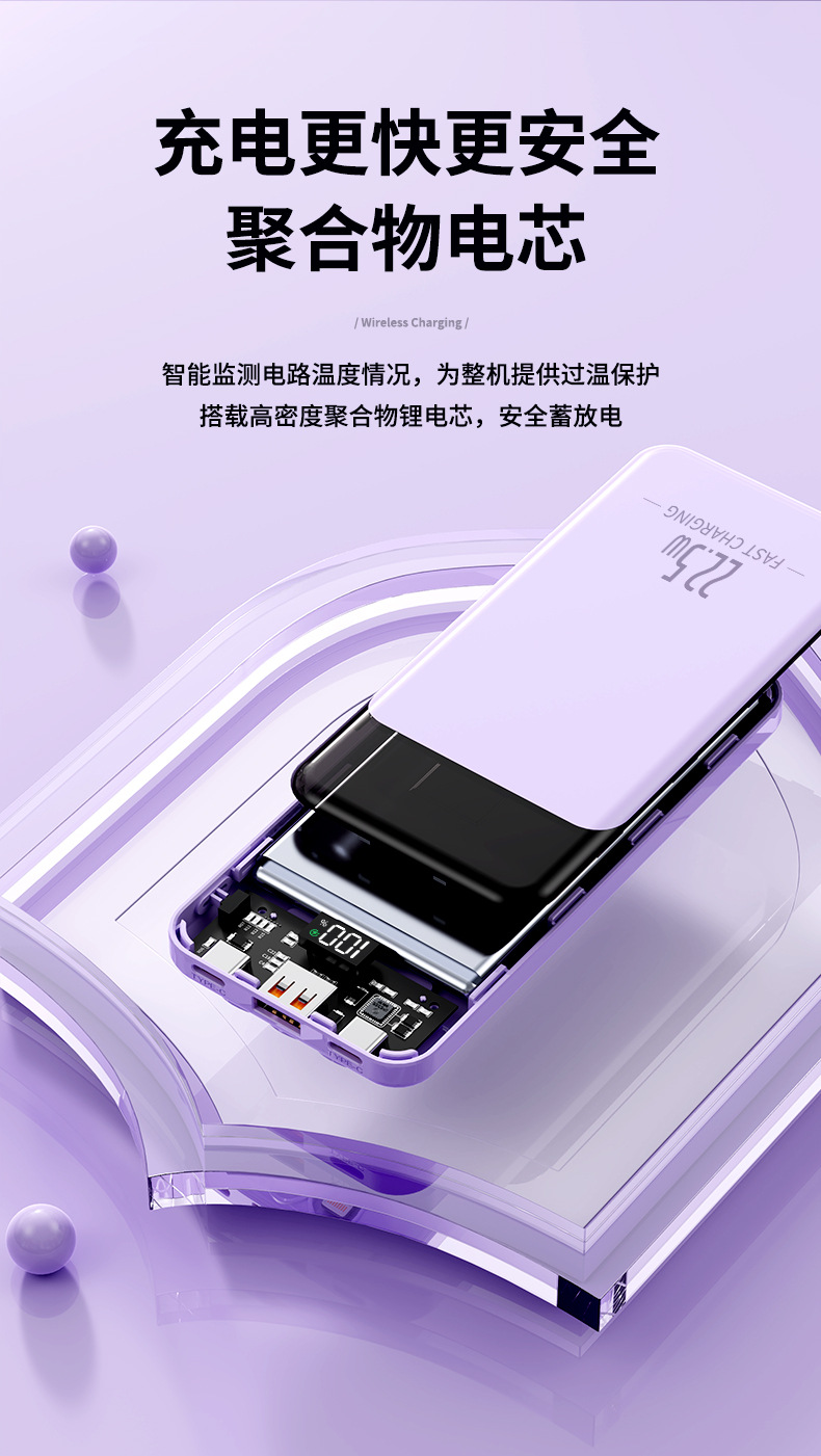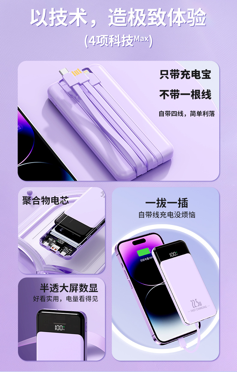 3C认证商务PD快充自带线充电宝10000毫安mah移动电源定l ogo图案