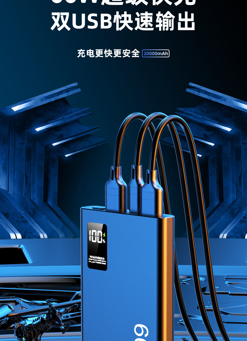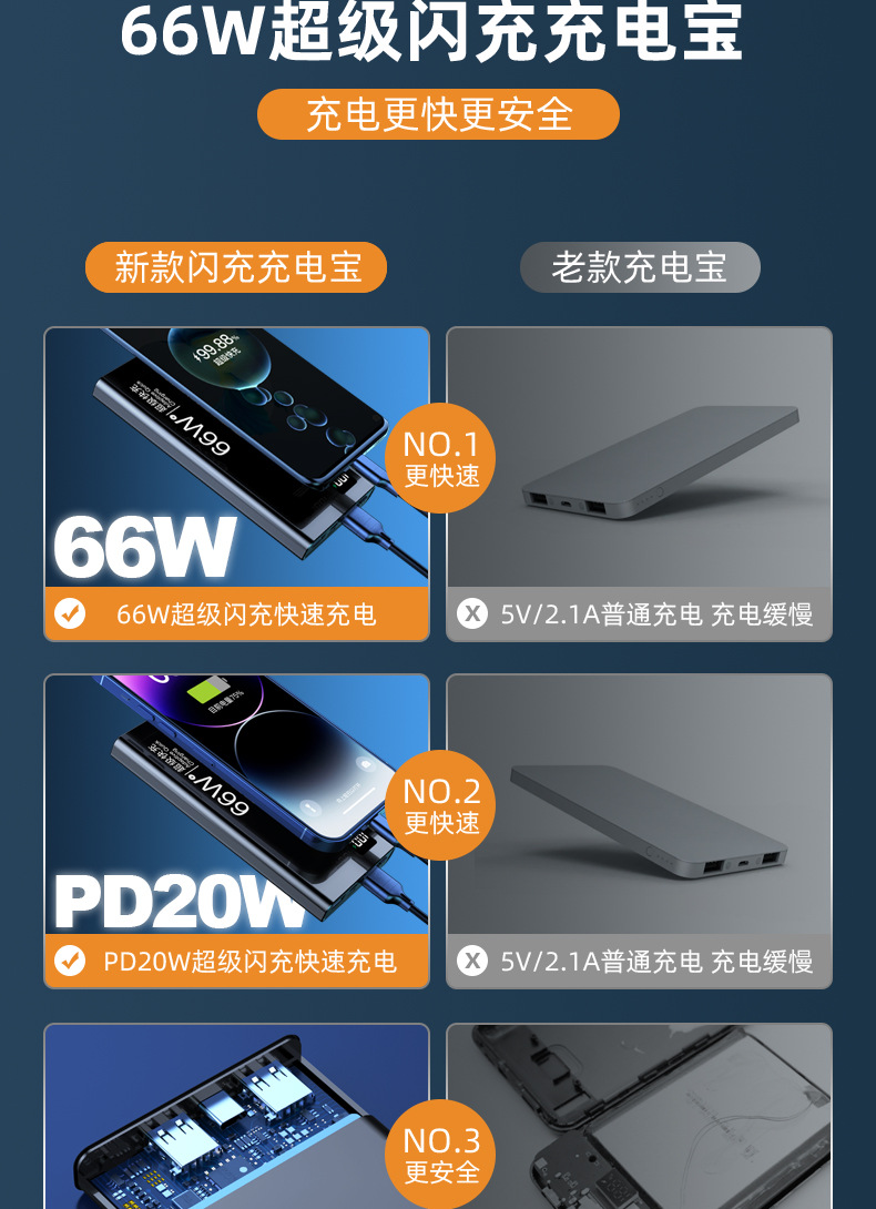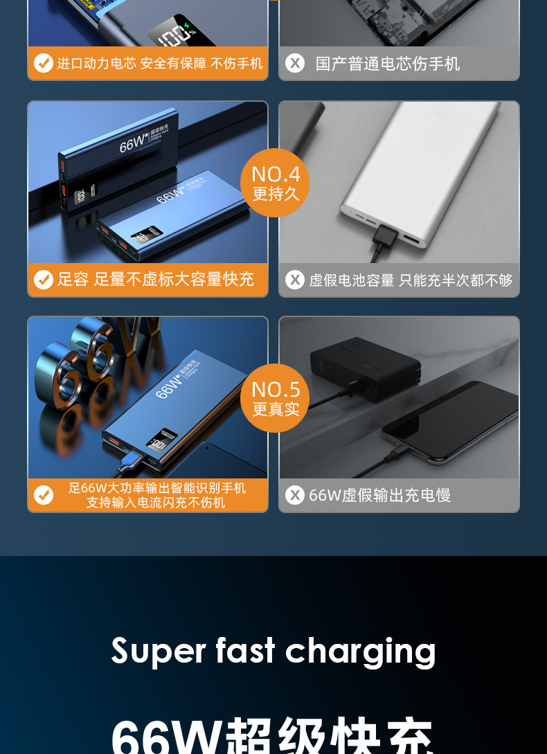 3C认证批发66W快充大容量50000毫安20000mAh充电宝10000定制logo
