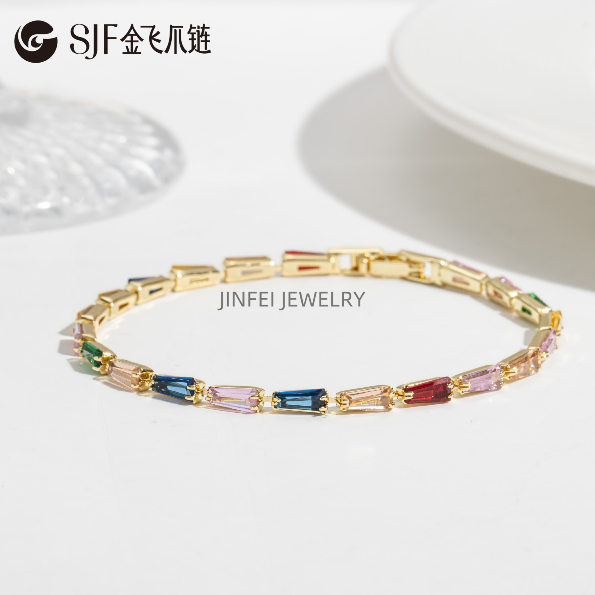 优雅时尚铜镀14K真金镶彩色锆石女士手链跨境亚马逊热销手链批发