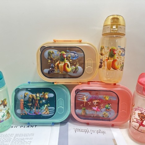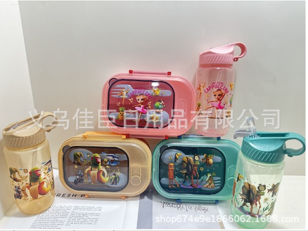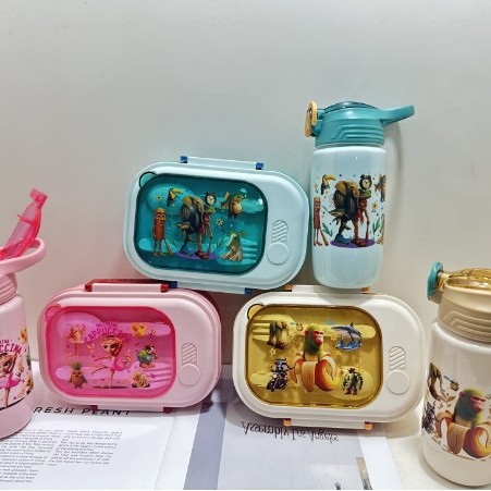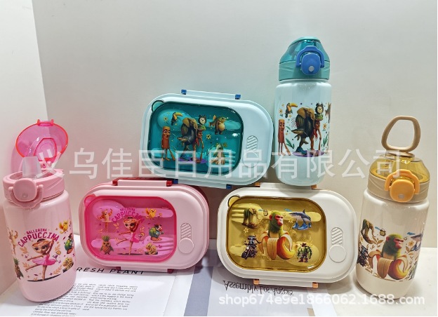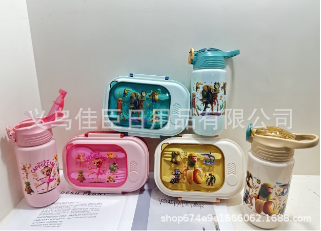 跨境儿童卡通便当盒水杯饭盒套装山海经系列电视机造型带餐具饭盒