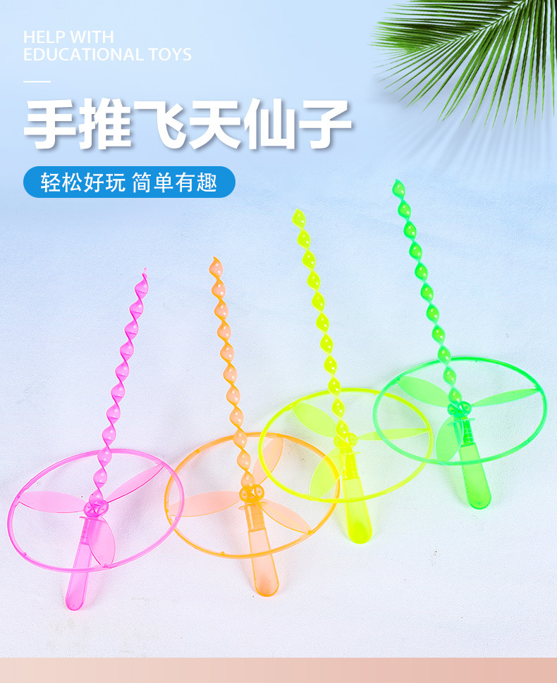 飞天仙子手推飞碟竹蜻蜓转转乐儿时经典怀旧地摊玩具地摊夜市