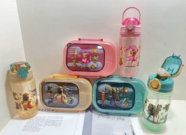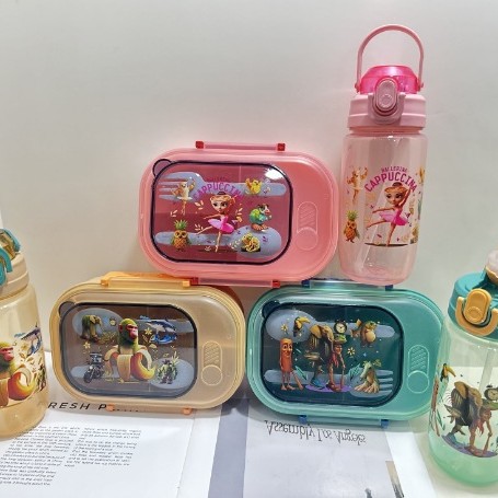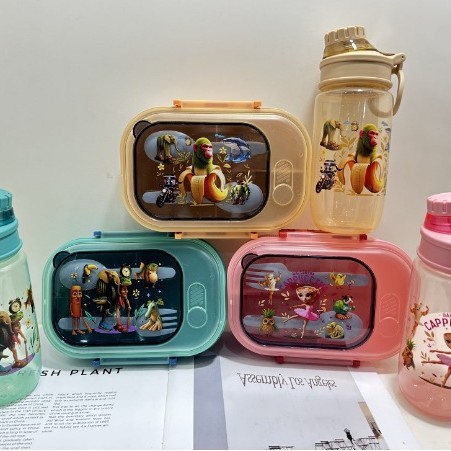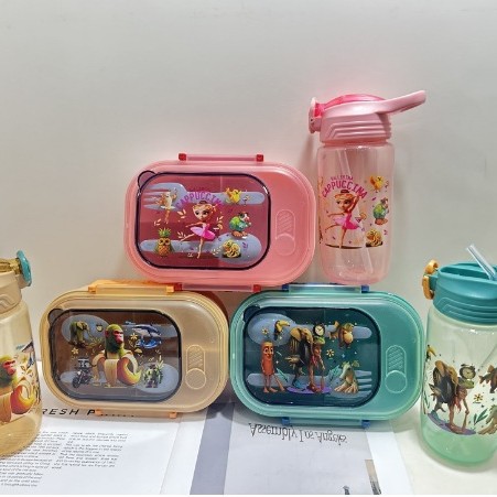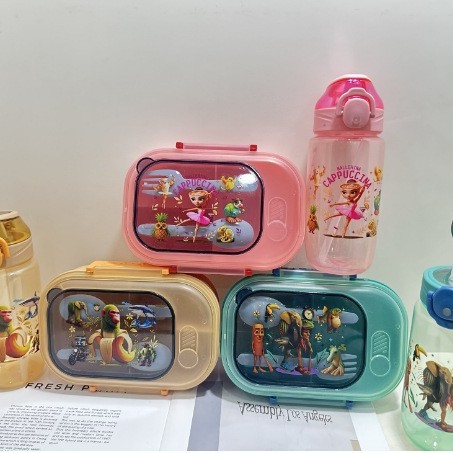 跨境学生卡通便当盒水壶饭盒套装山海经系列电视机造型带餐具饭盒