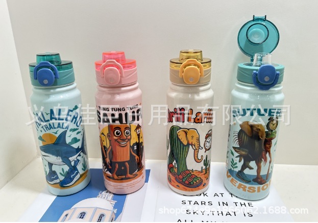 亚马逊热销款式山海经系列水杯儿童水杯弹跳盖学生便携太空杯跨境