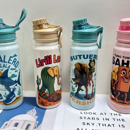 亚马逊热销款式山海经系列水杯儿童水杯弹跳盖学生便携太空杯批发