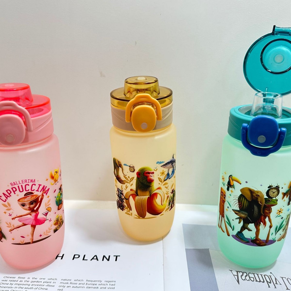 亚马逊热卖款式山海经图案水杯儿童水杯弹跳盖学生便携太空杯跨境