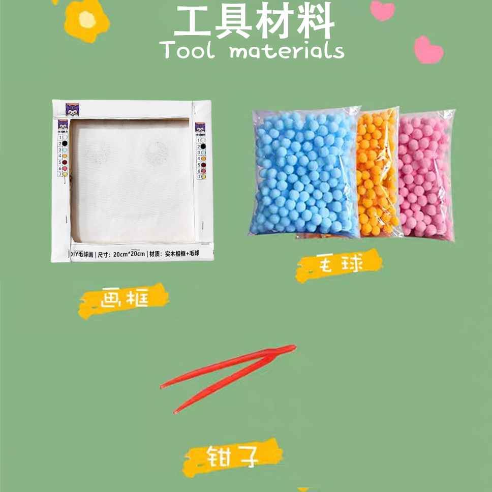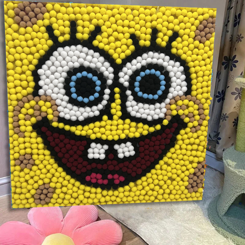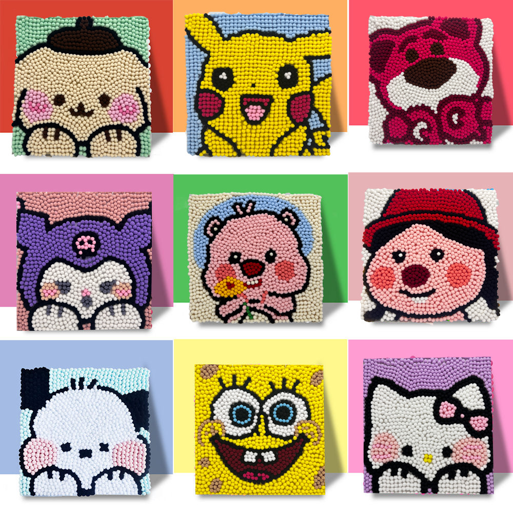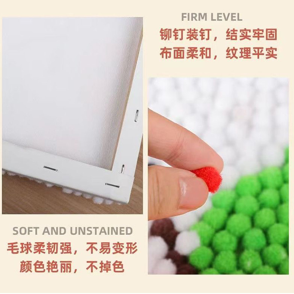 新款卡通diy手工毛球画带框小红书同款创意粘贴材料包批发钻石画