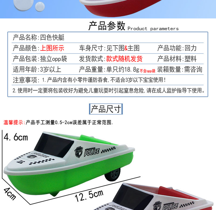 儿童回力船男孩宝宝玩具快艇益智玩具仿真玩具船地摊货源小玩具