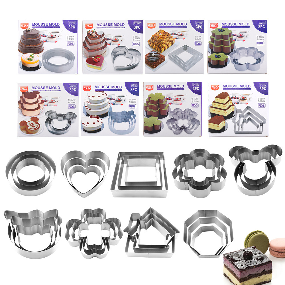 RYJ 不锈钢慕斯圈6寸8寸10寸心形花形圆形提拉米苏模烘焙蛋糕模具