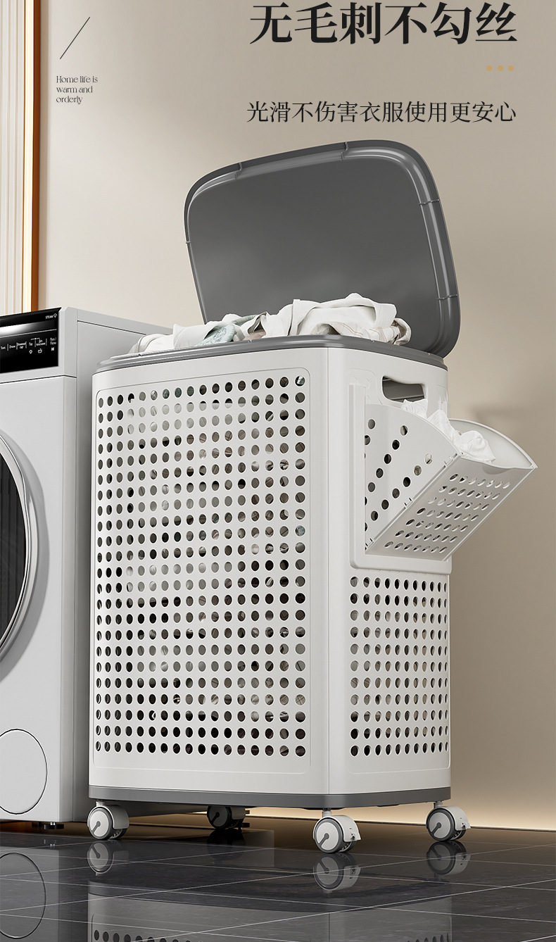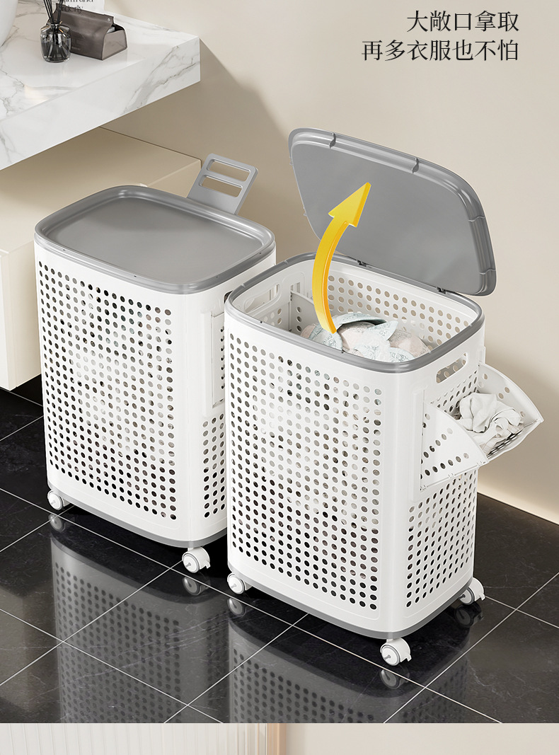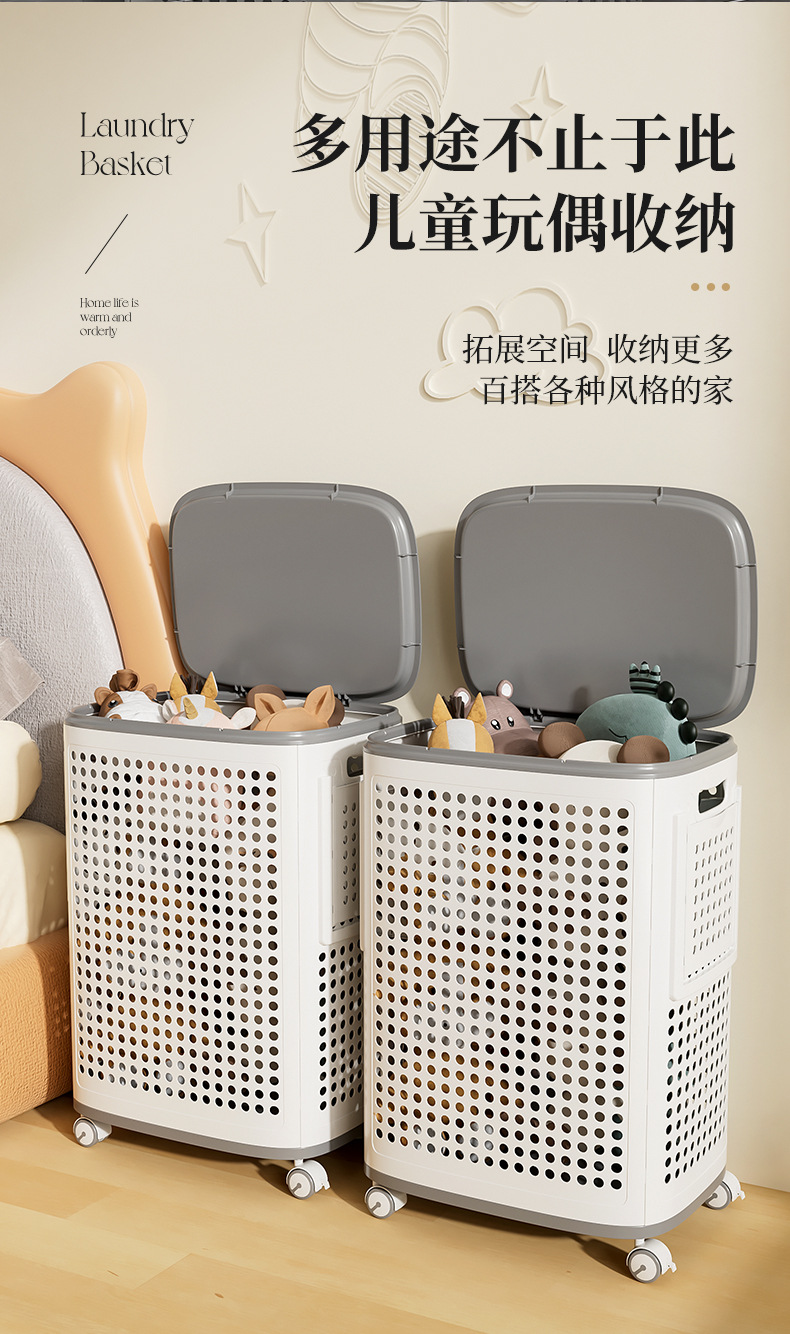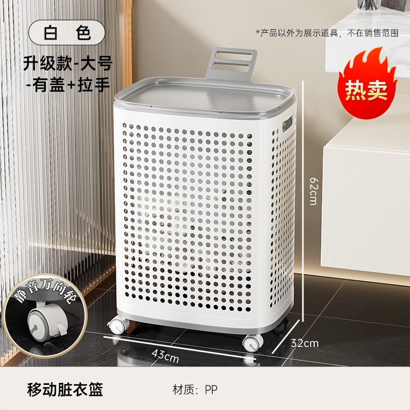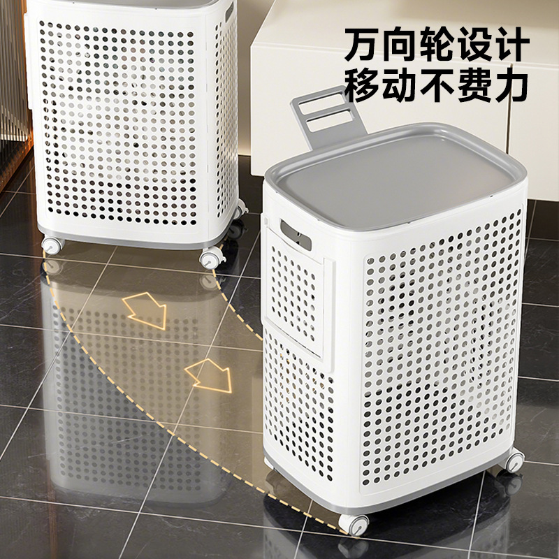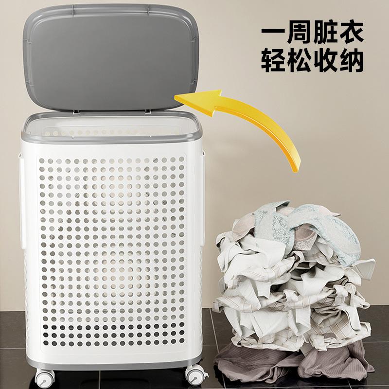 家用脏衣篮卫生间大号大容量衣物收纳篮手提夹缝塑料带滑轮脏衣篓