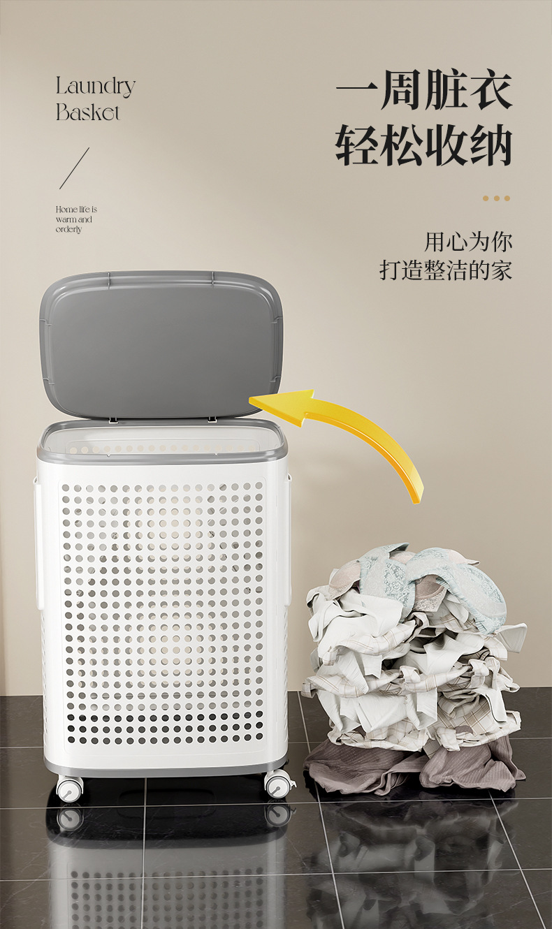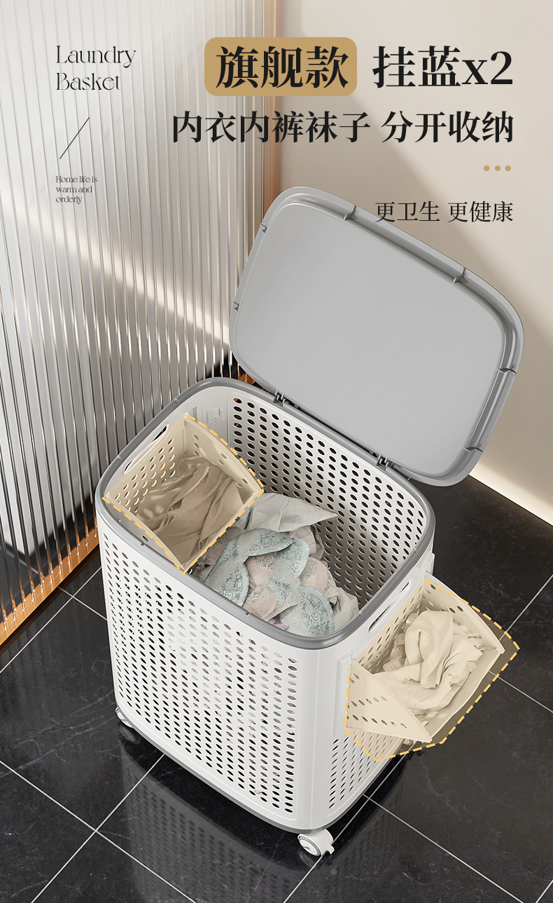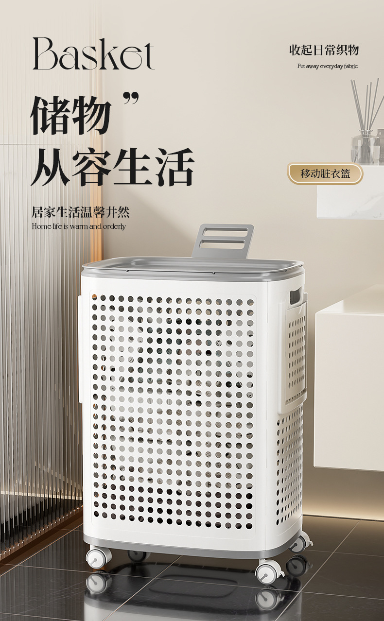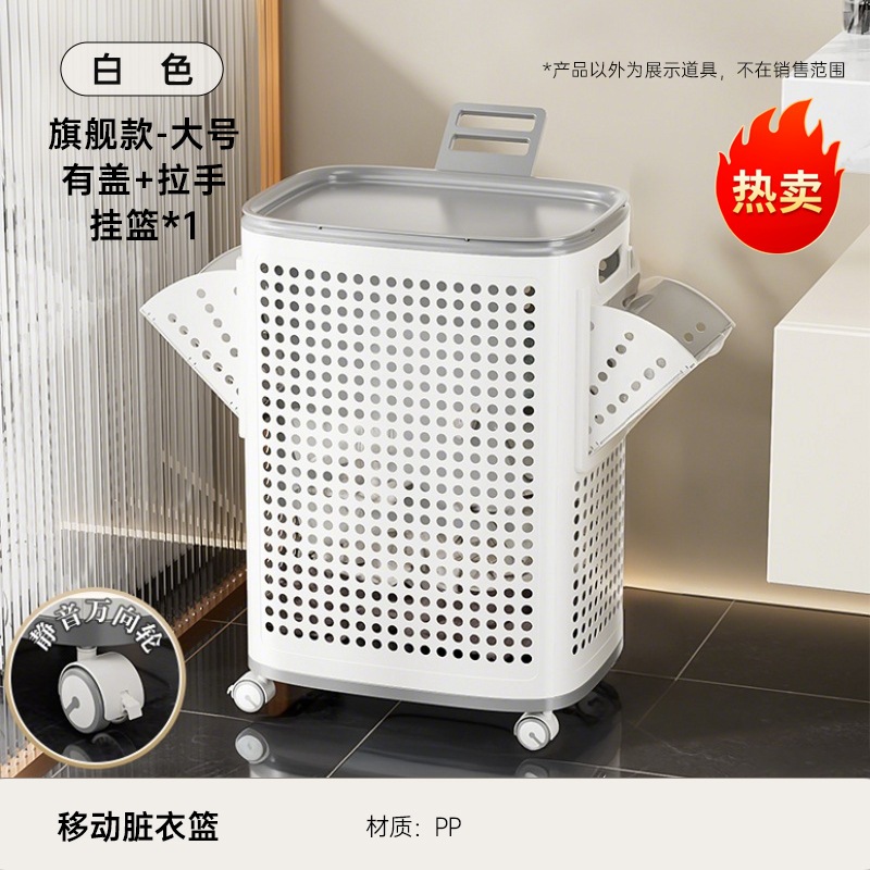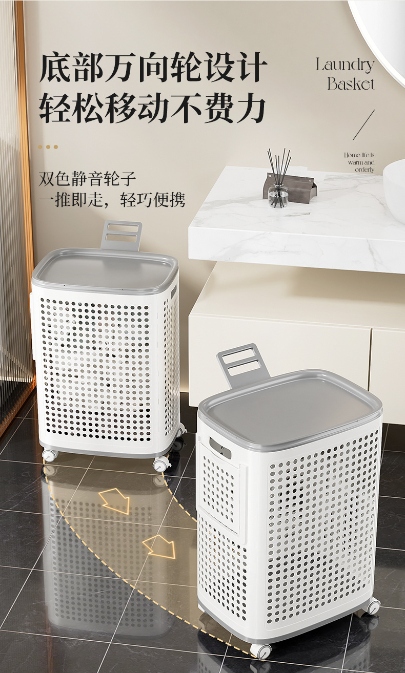 家用脏衣篮卫生间大号大容量衣物收纳篮手提夹缝塑料带滑轮脏衣篓
