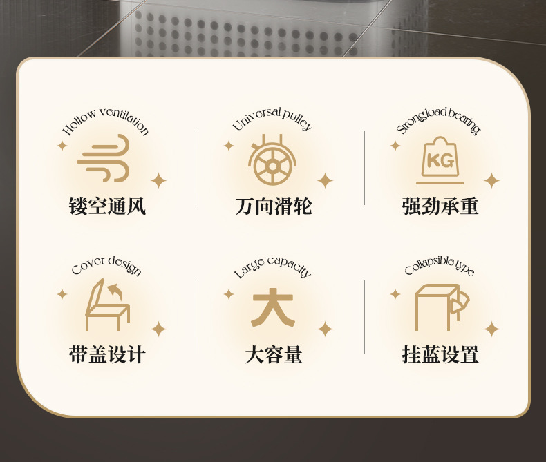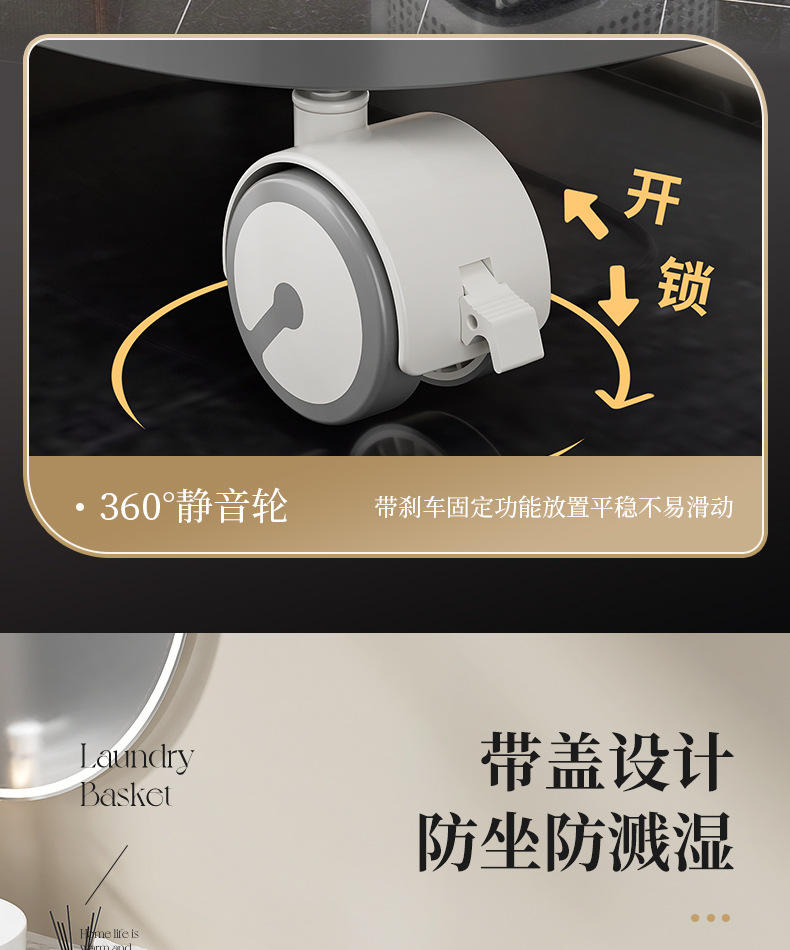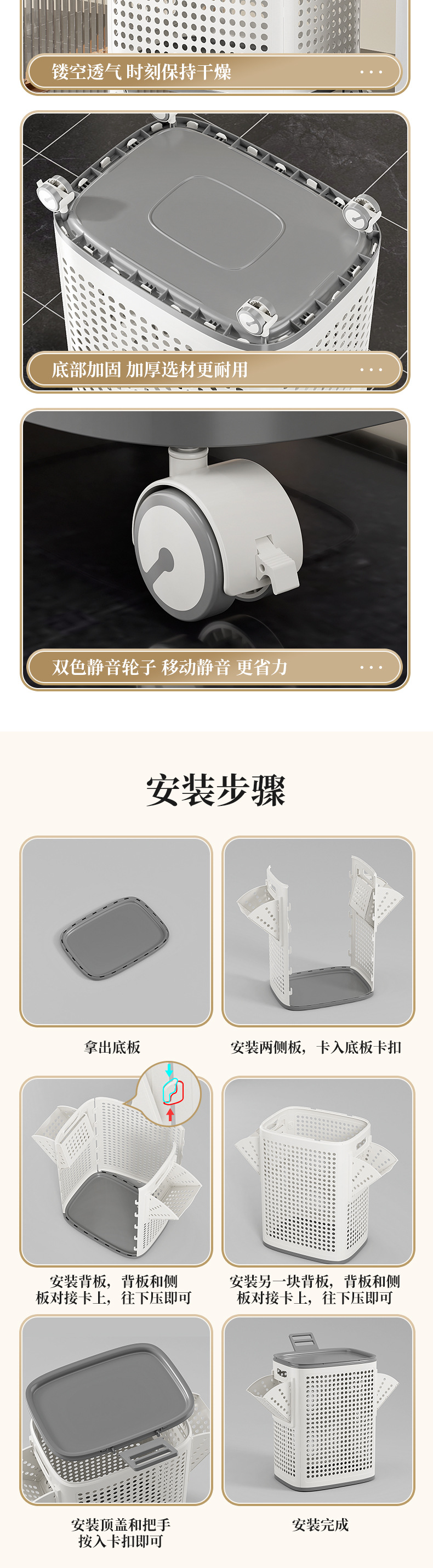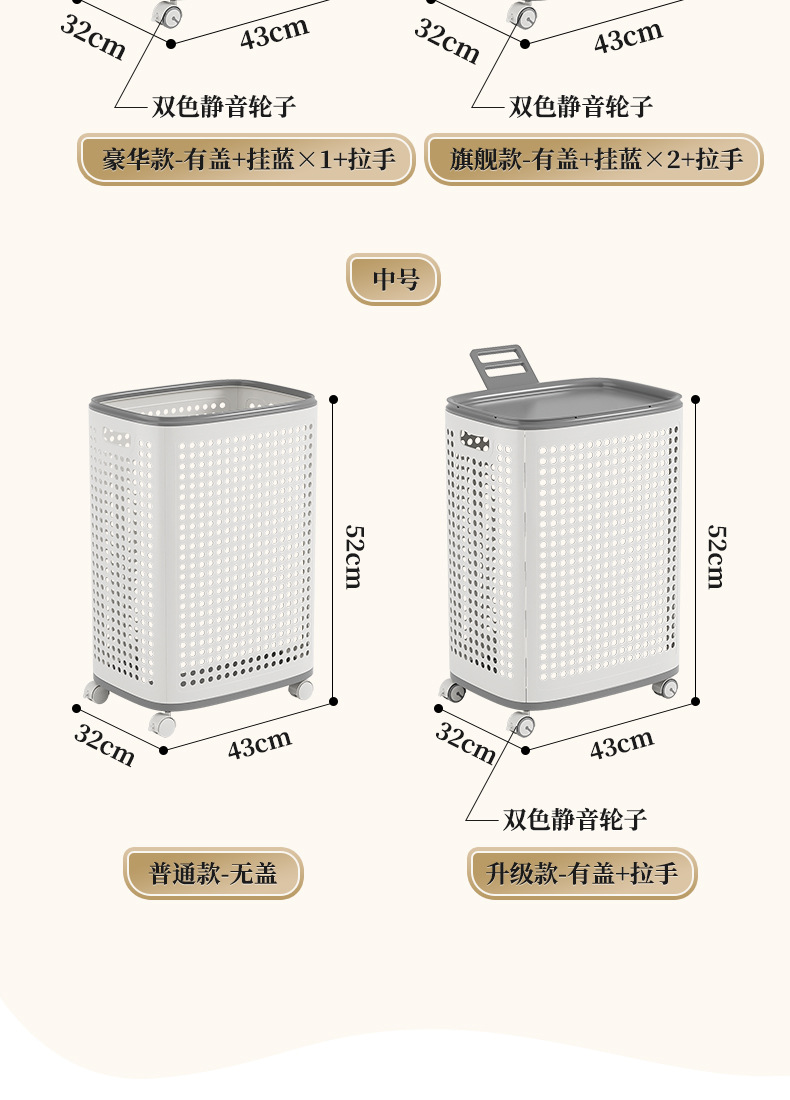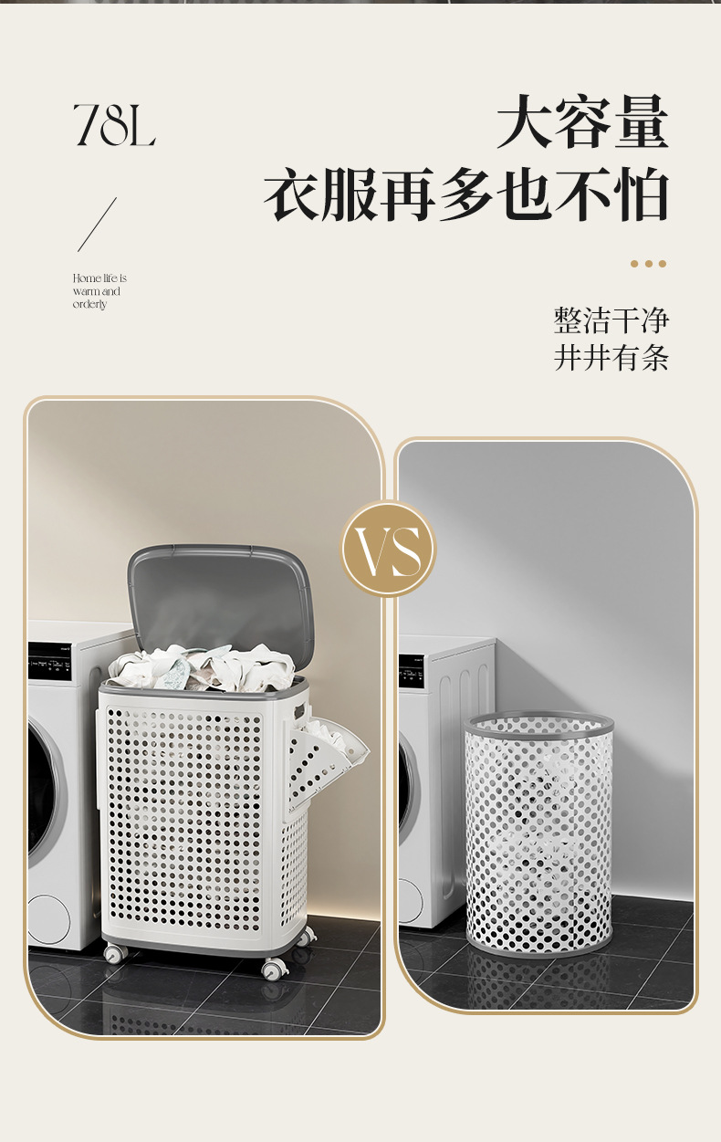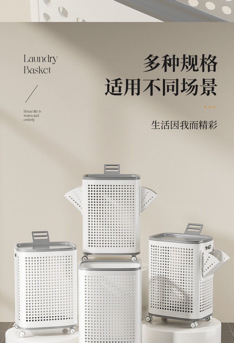 家用脏衣篮卫生间大号大容量衣物收纳篮手提夹缝塑料带滑轮脏衣篓