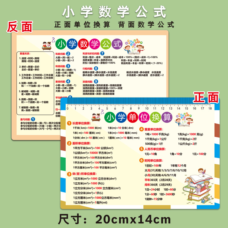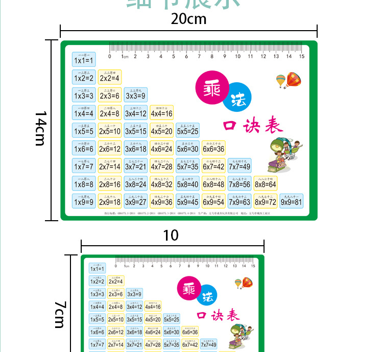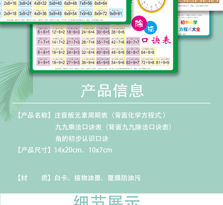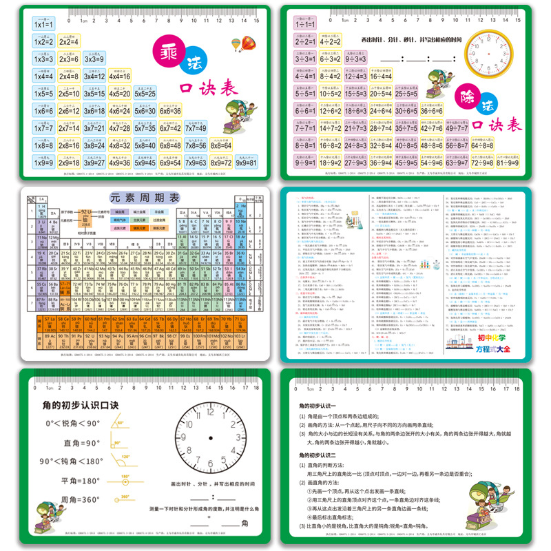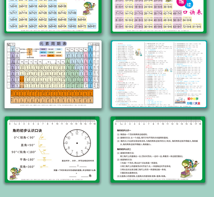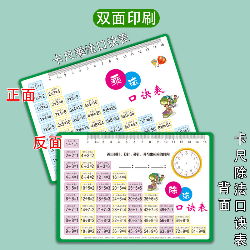 乘法口诀表卡片小学生九九乘除法口诀表一二年级数学公式学习大全