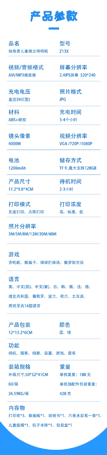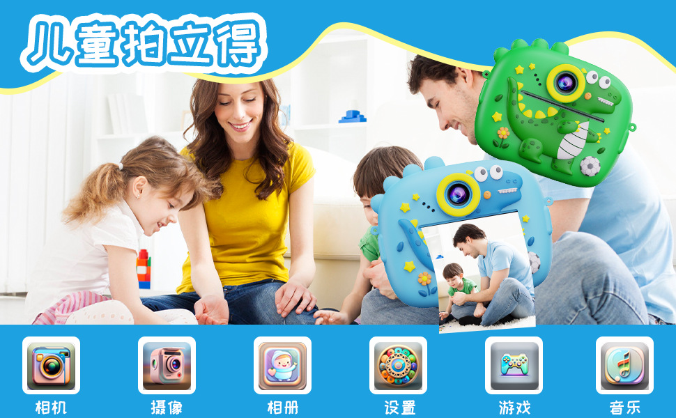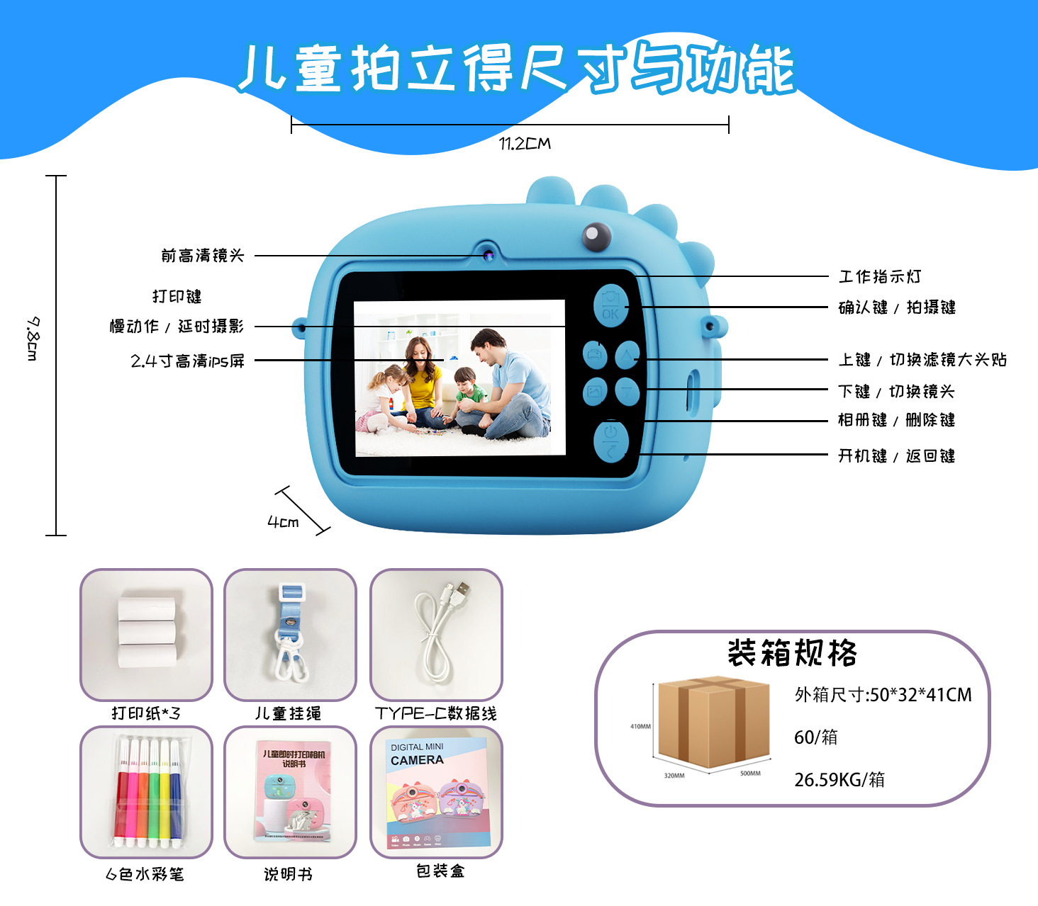 新款儿童打印相机高清卡通录像双摄像头迷你玩具儿童数码照相机