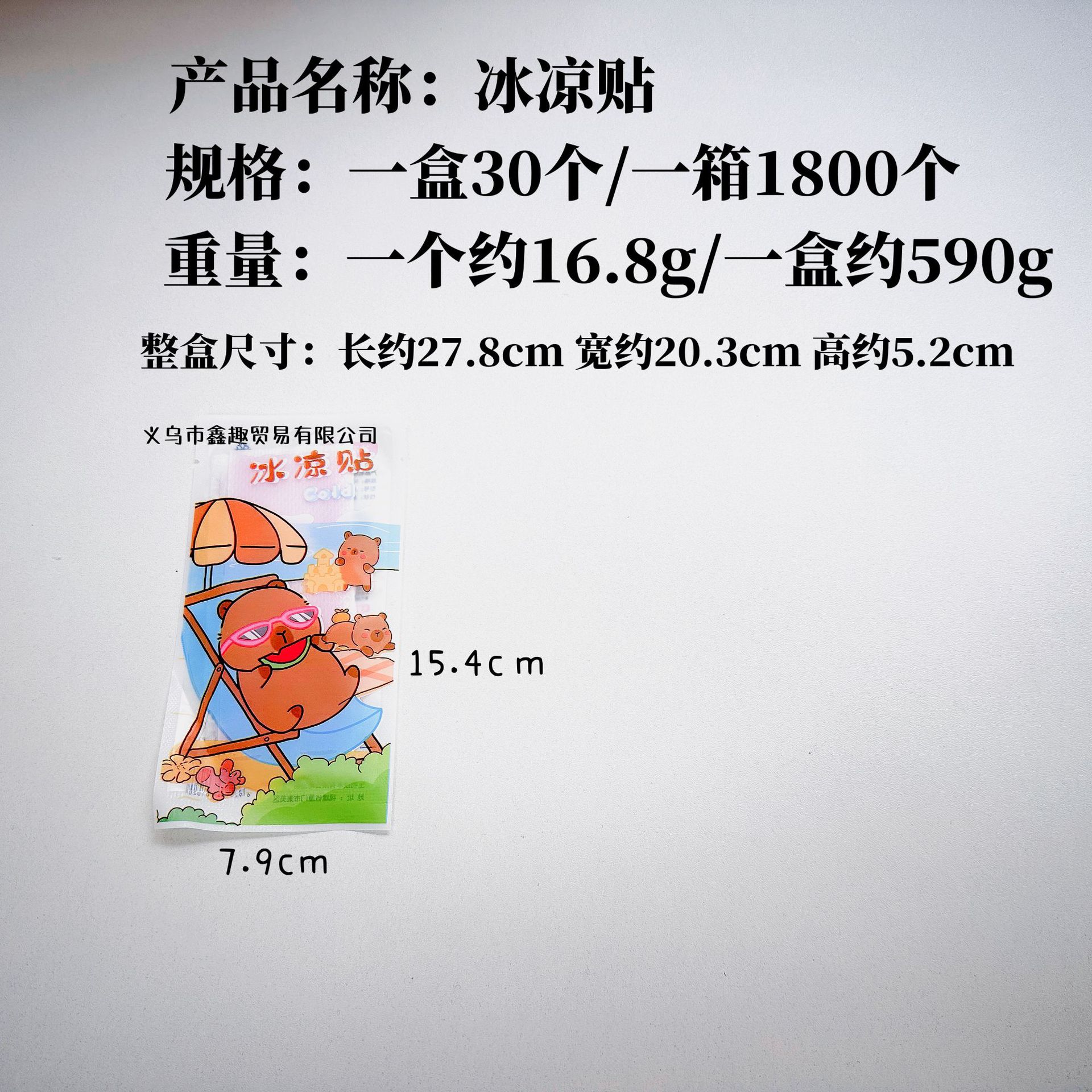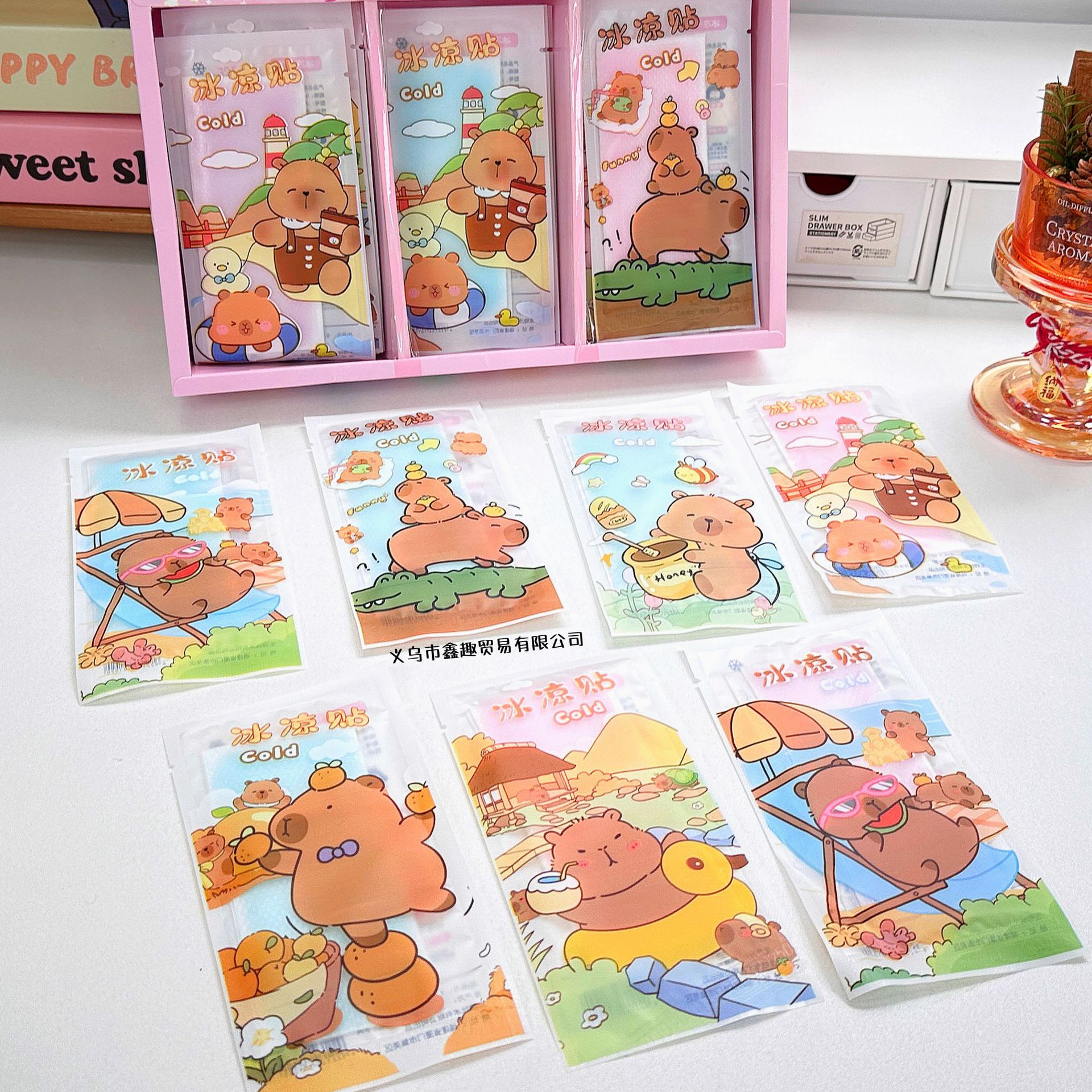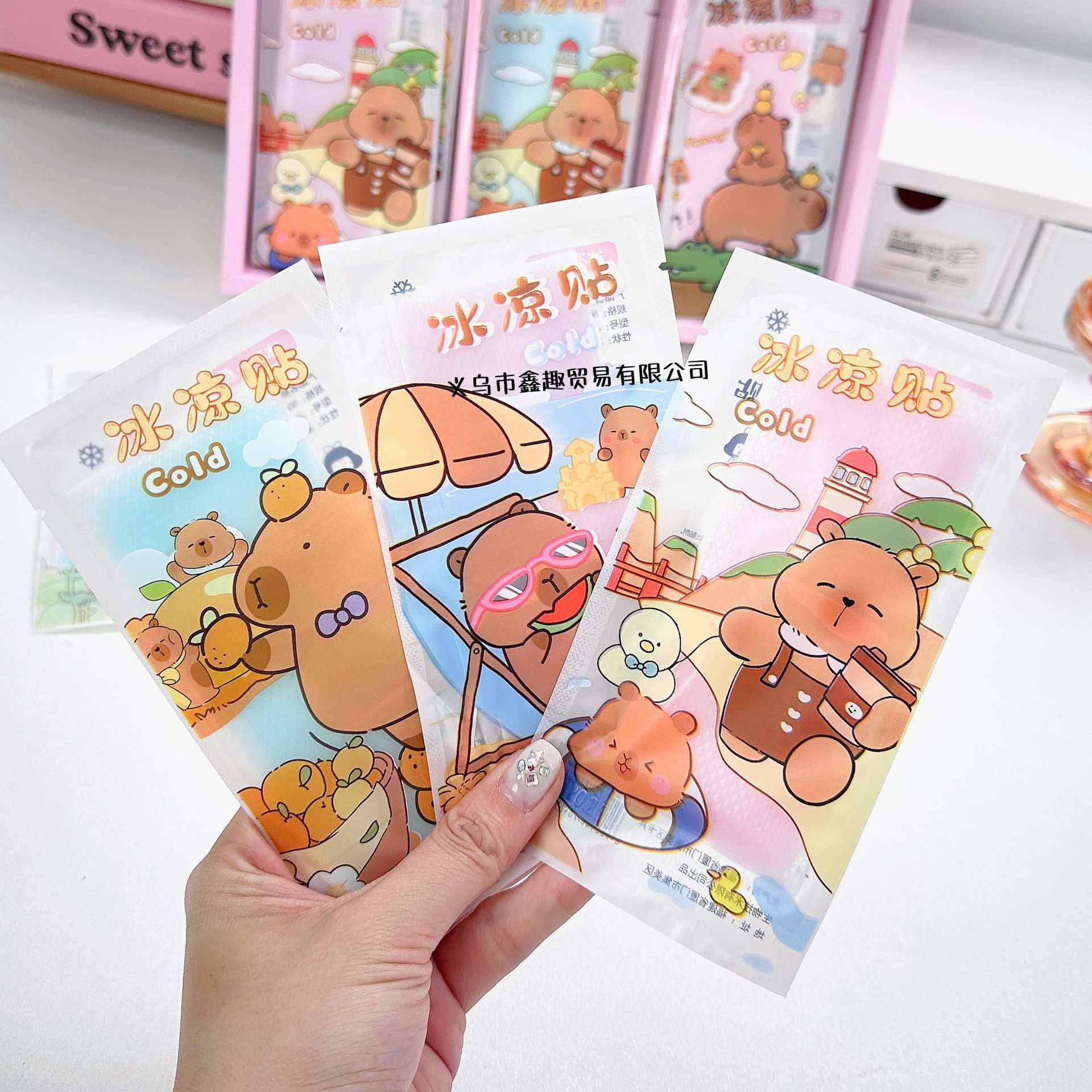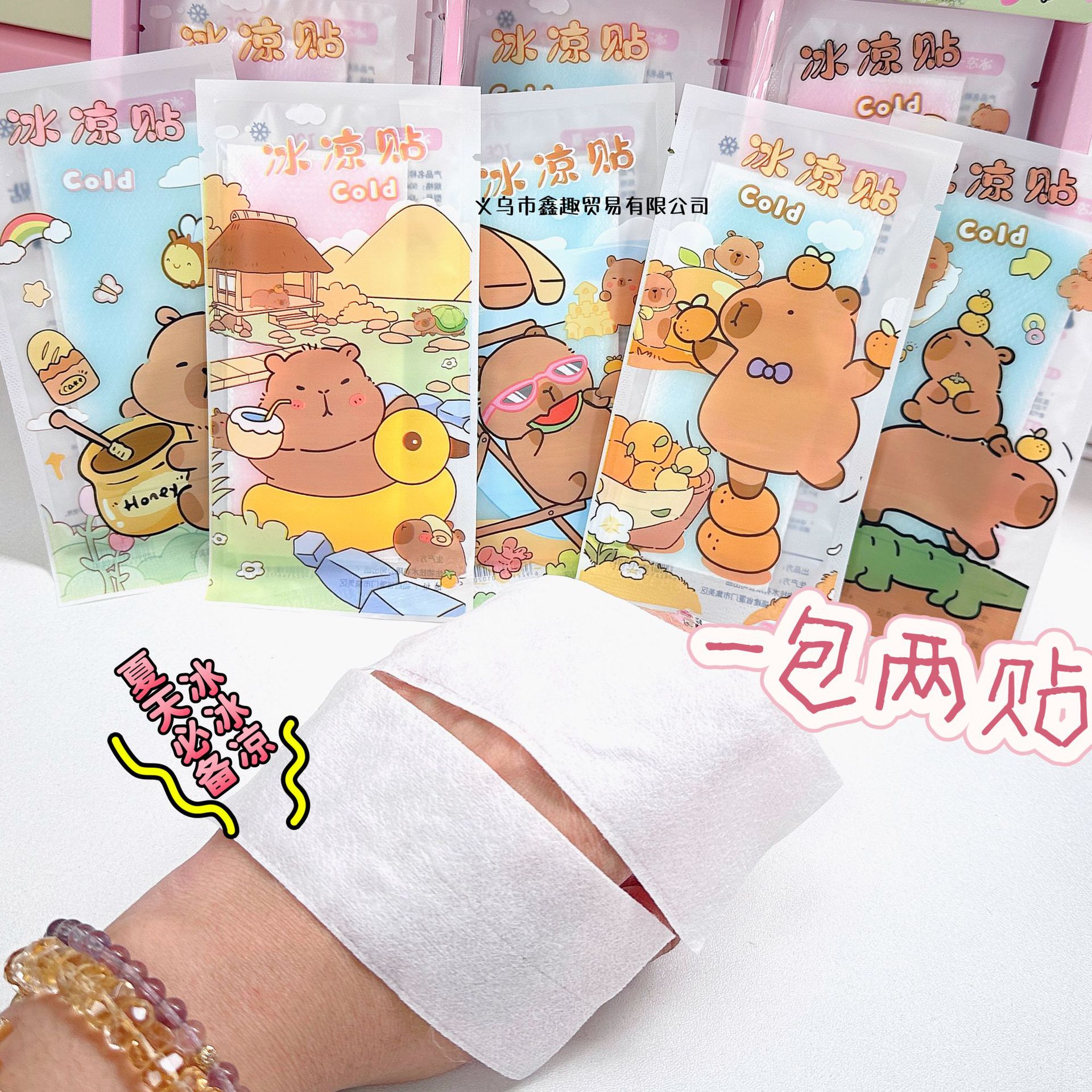 卡皮巴拉冰凉贴可爱卡通清凉贴夏季防暑消暑降温贴学生提神散热贴