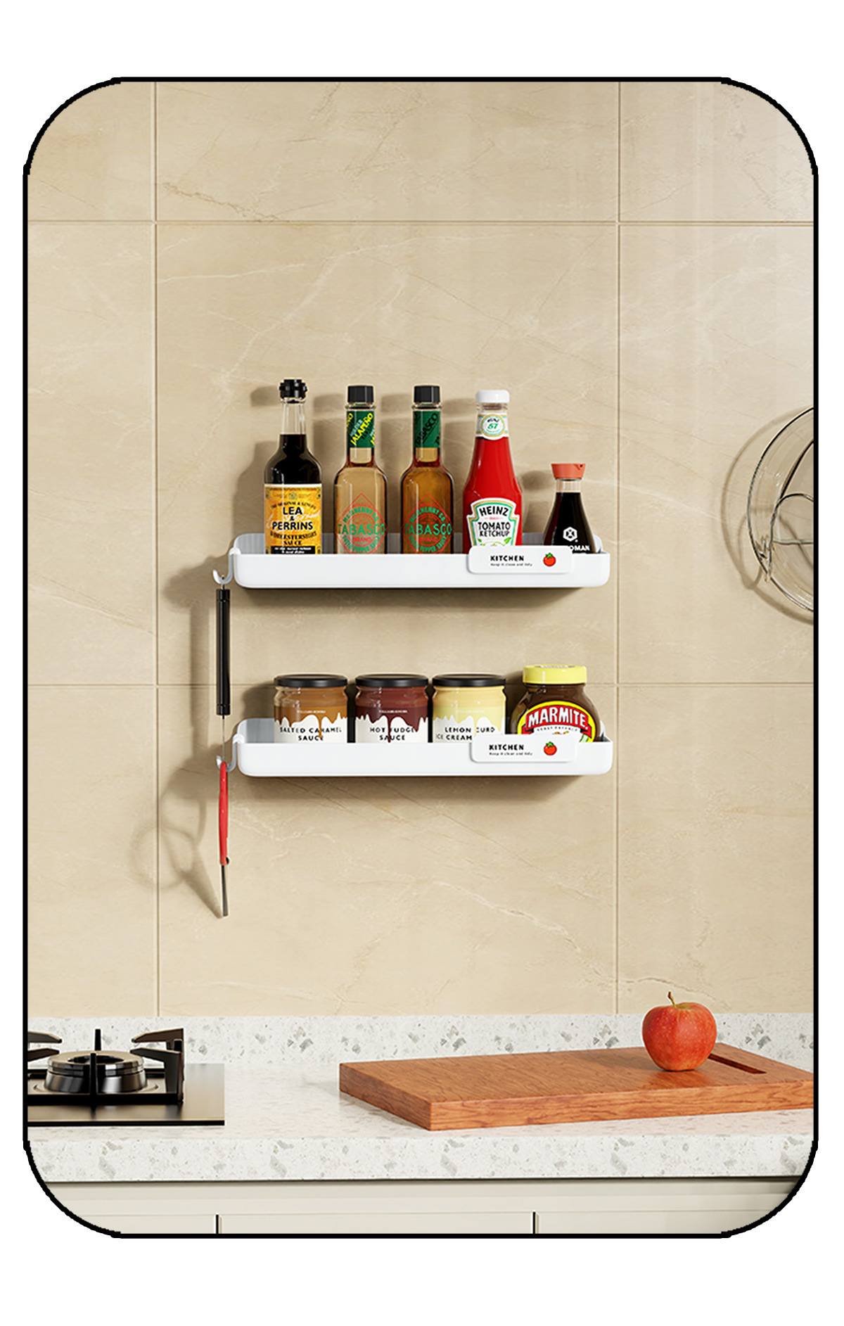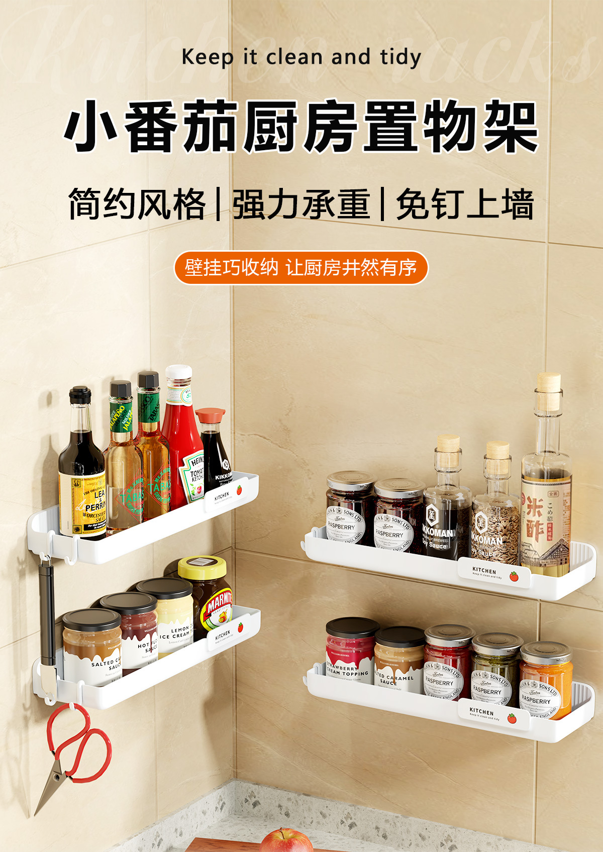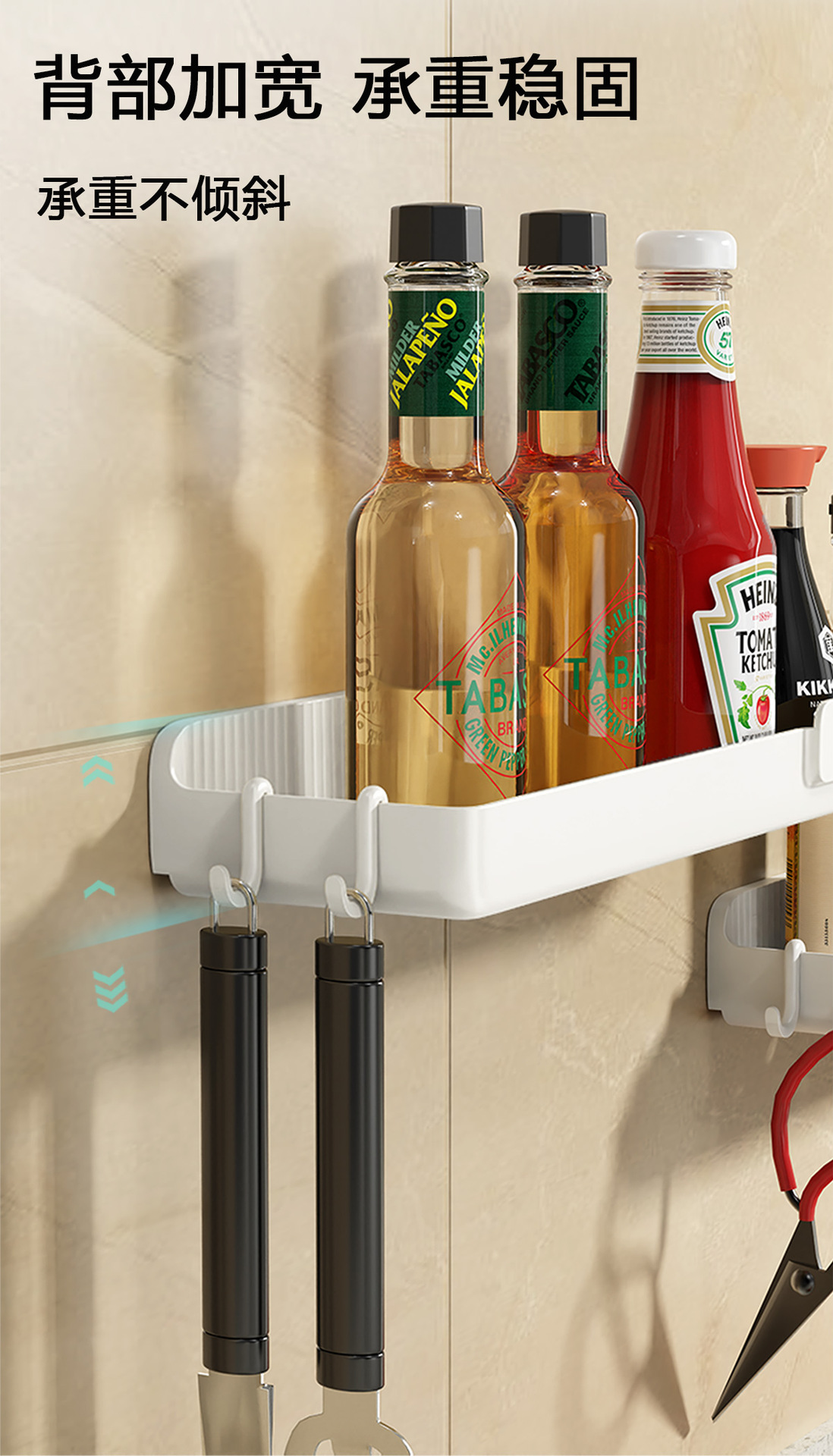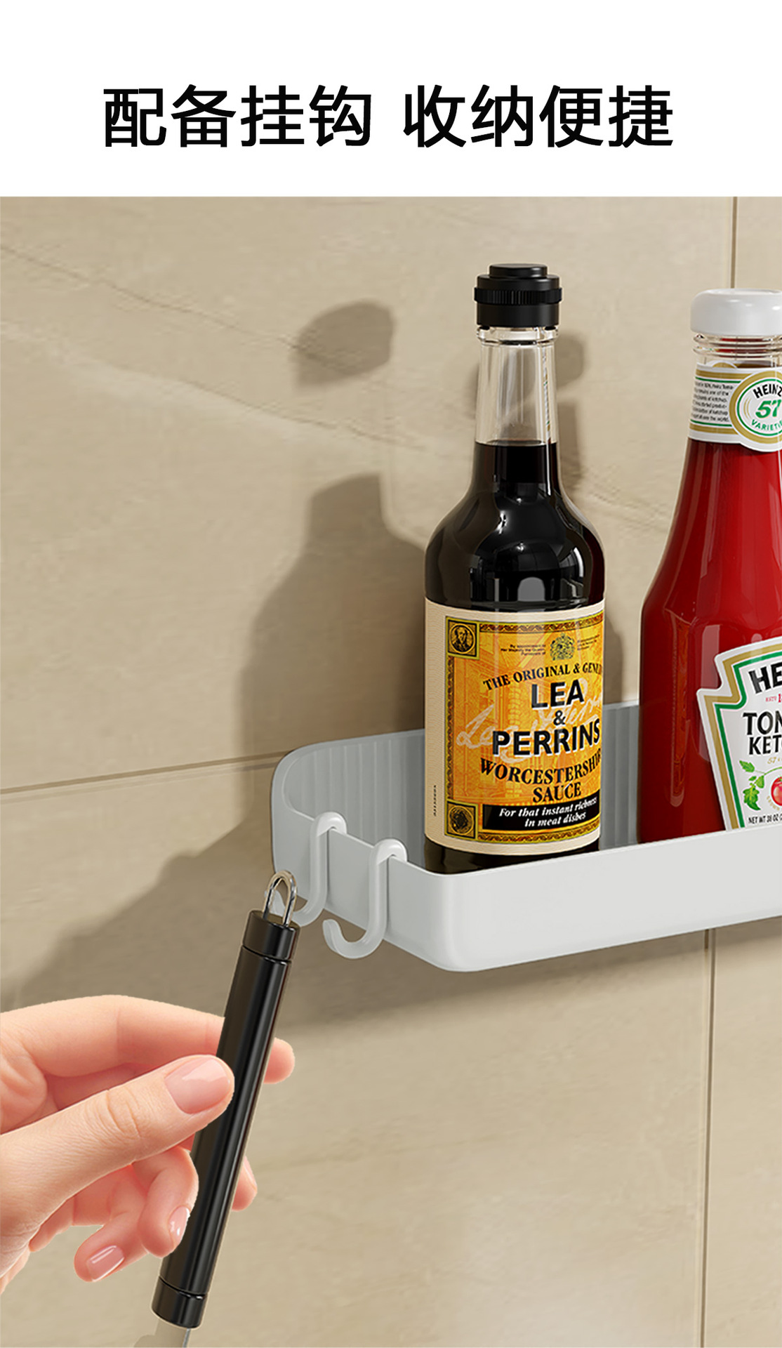 壁挂式酱油料酒收纳架调料架加厚厨房调味品置物架免打孔强力承重
