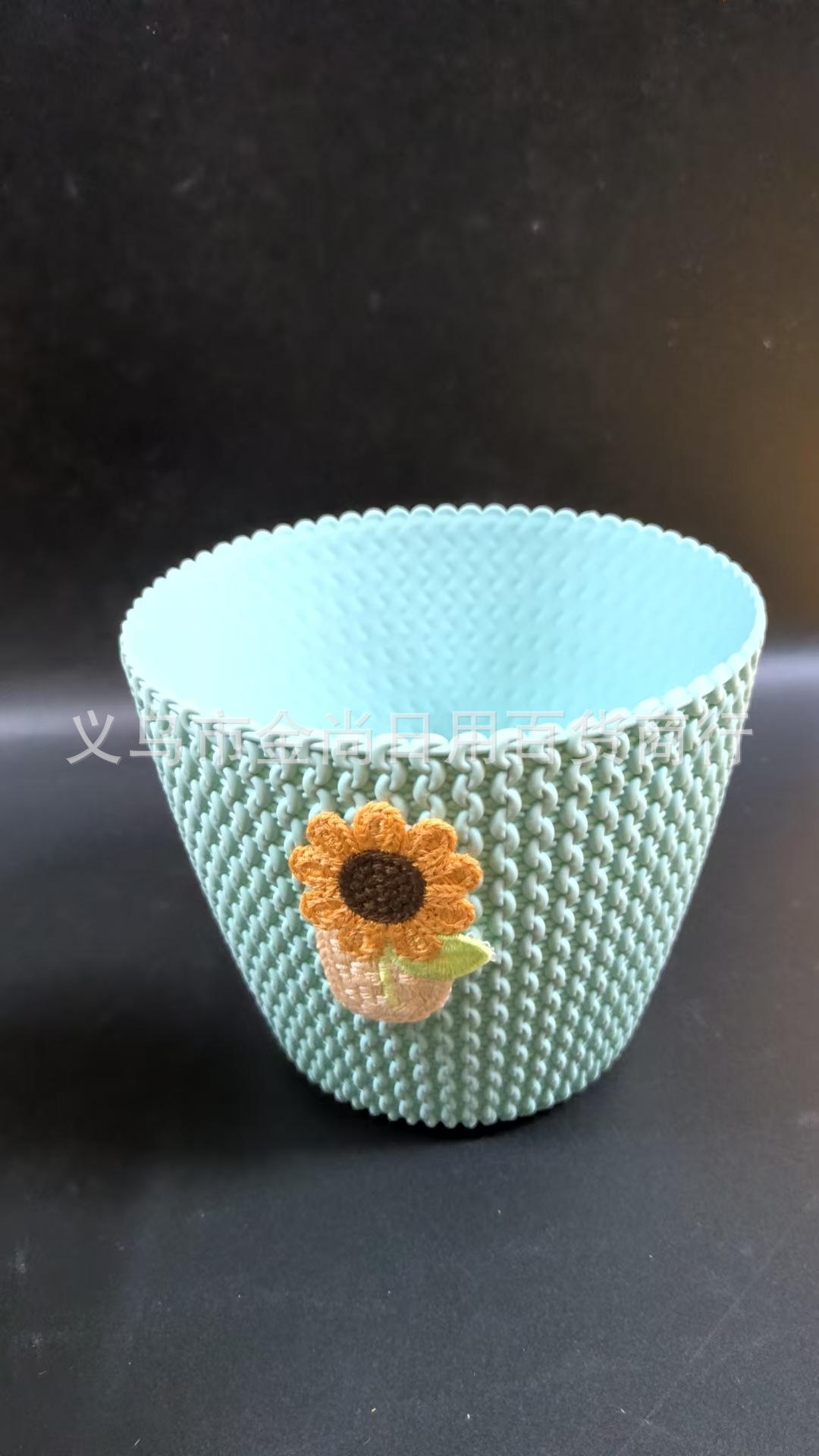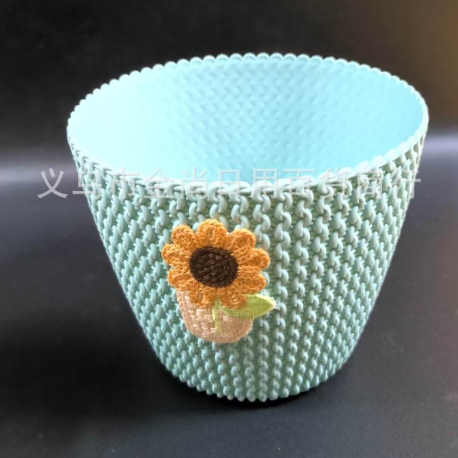 创意圆型编织收纳篮塑料袋向日葵花收纳盒桌面收纳盒