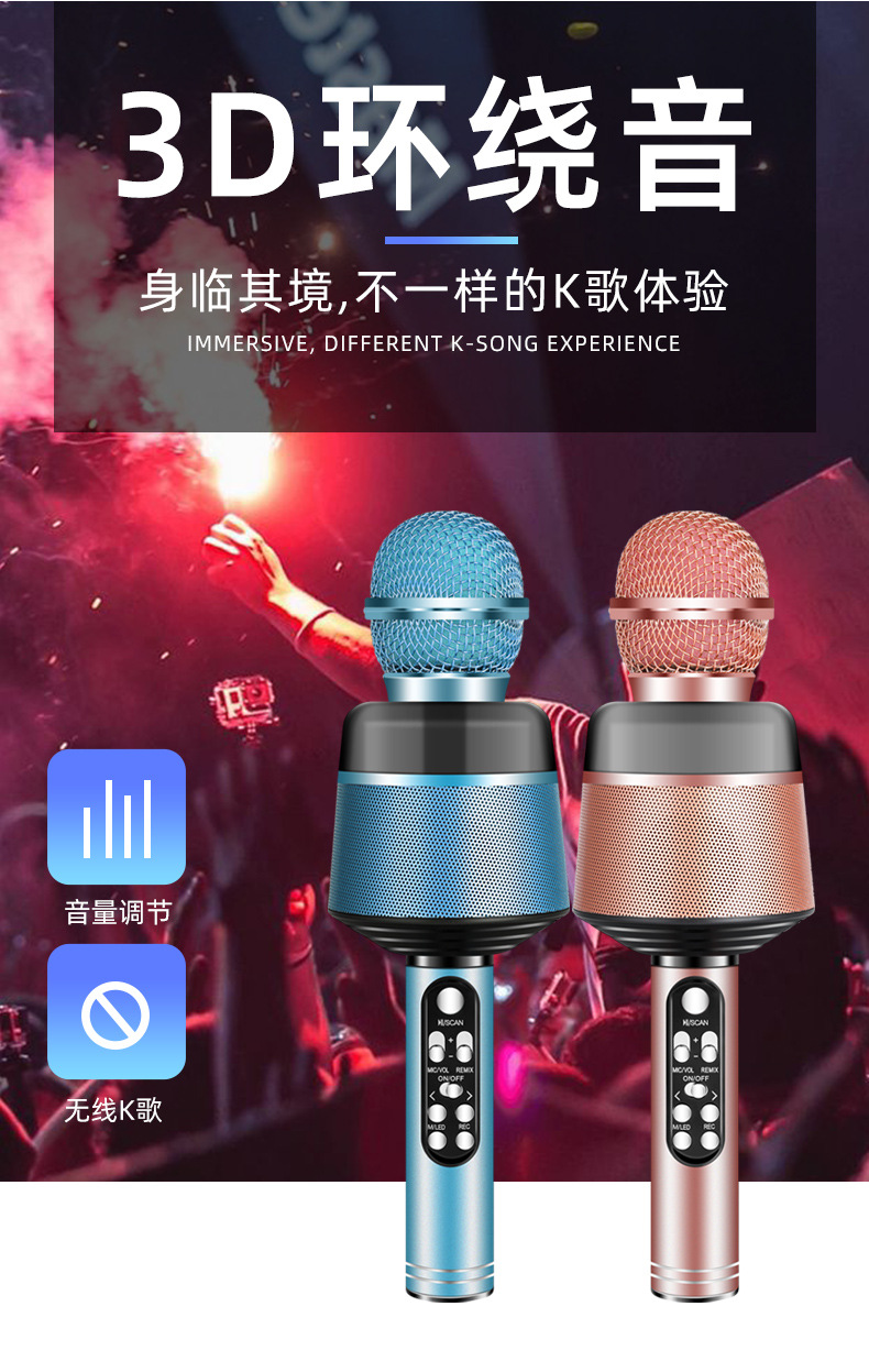 跨境无线蓝牙麦克风音箱音响一体蓝牙K歌神器直播麦克风话筒音响
