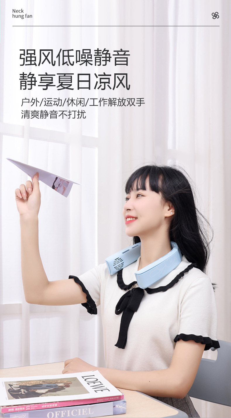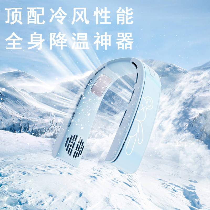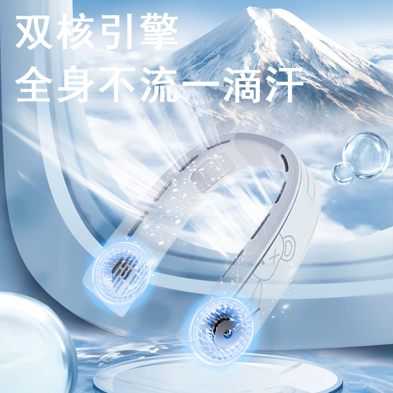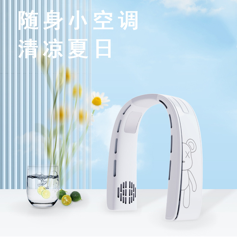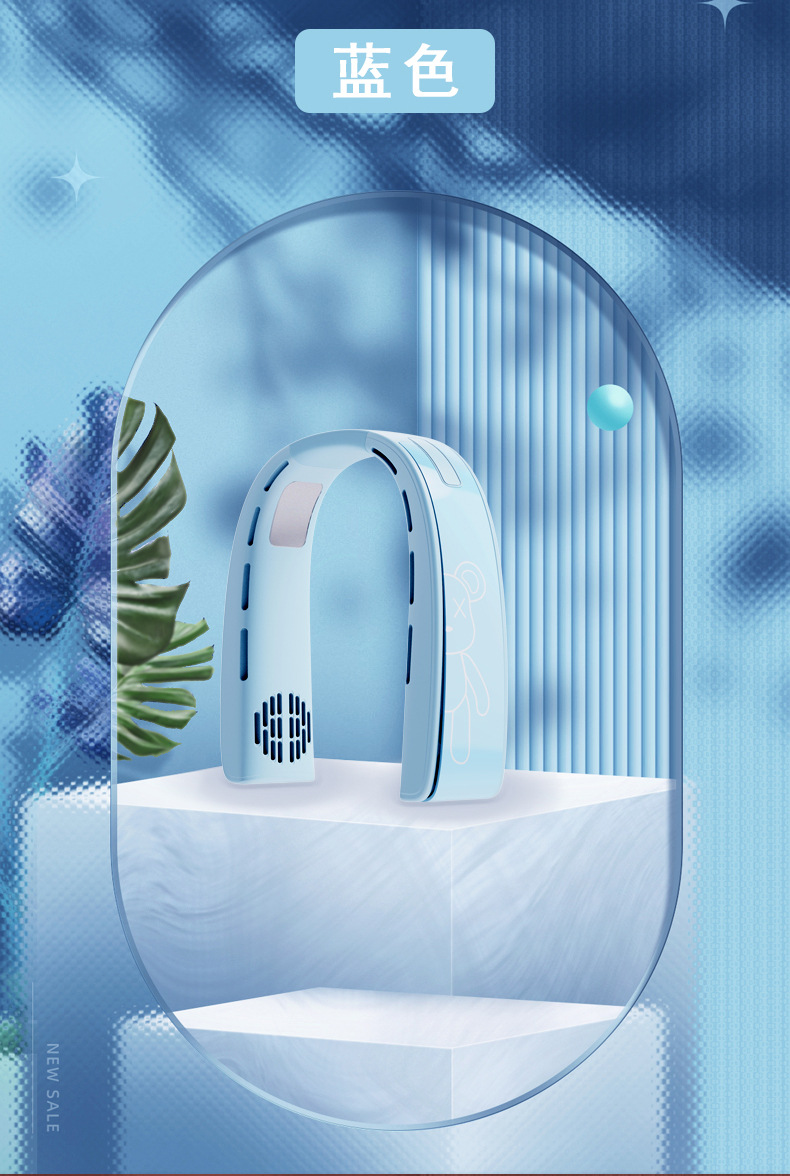 跨境出口挂脖小风扇便携式户外静音制冷充电usb涡轮无叶挂脖风扇